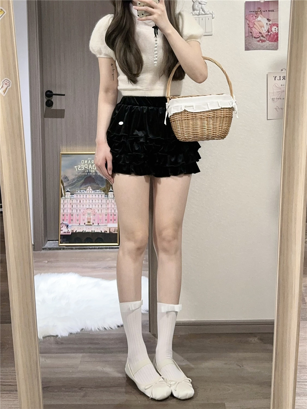 AY To films春夏薄棉miu系中筒襪子芭蕾少女一字蝴蝶結白色堆堆襪
