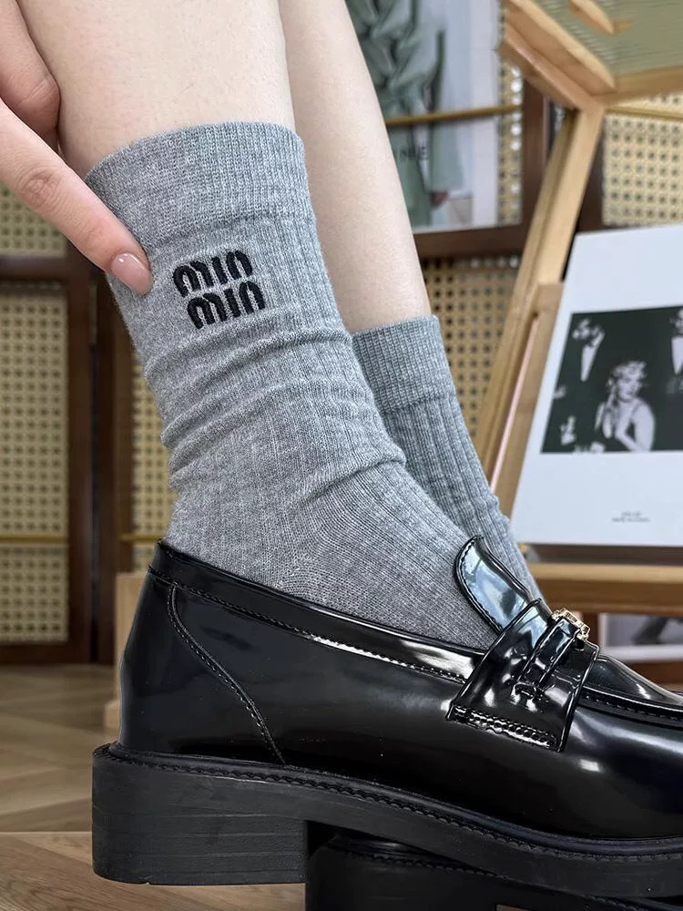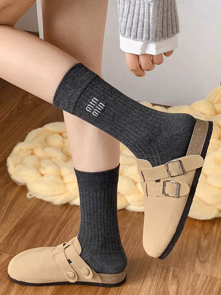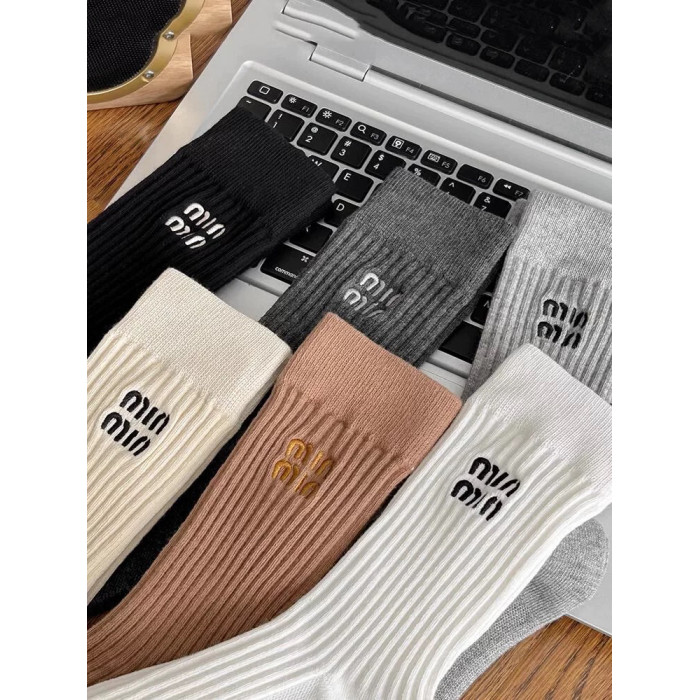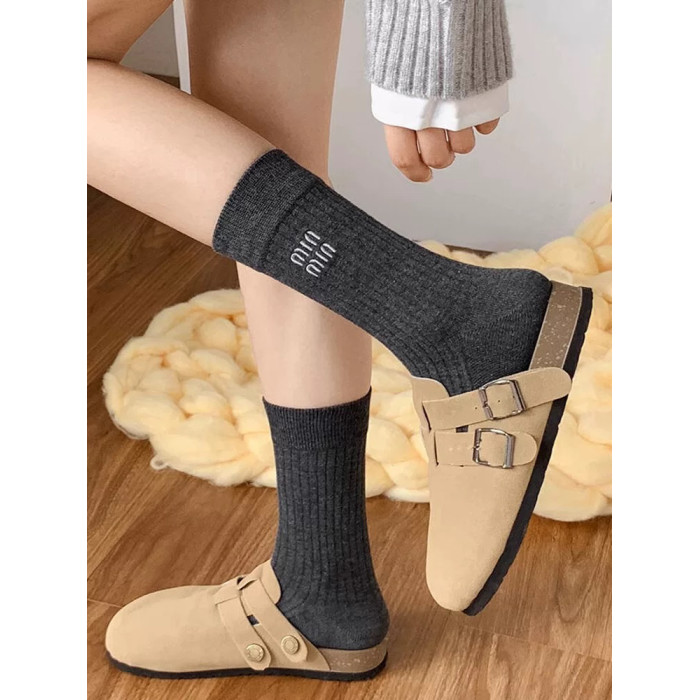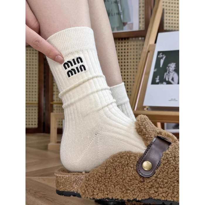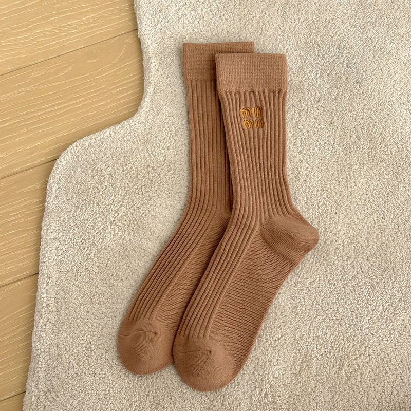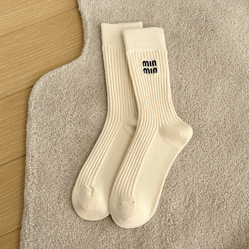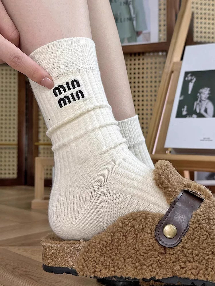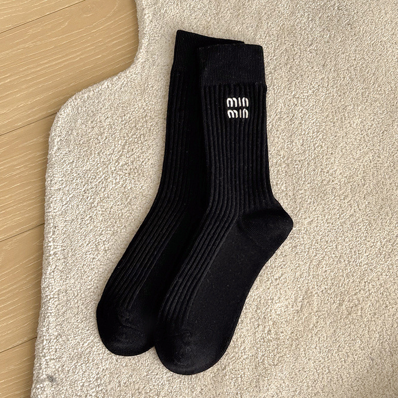 新款秋冬刺綉襪子女miu風中筒襪ins潮襪純棉字母運動長襪堆堆襪