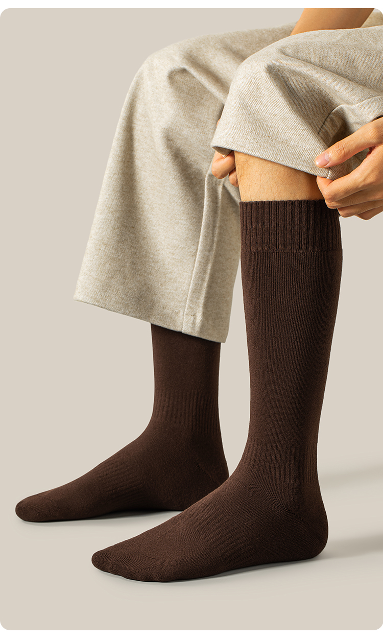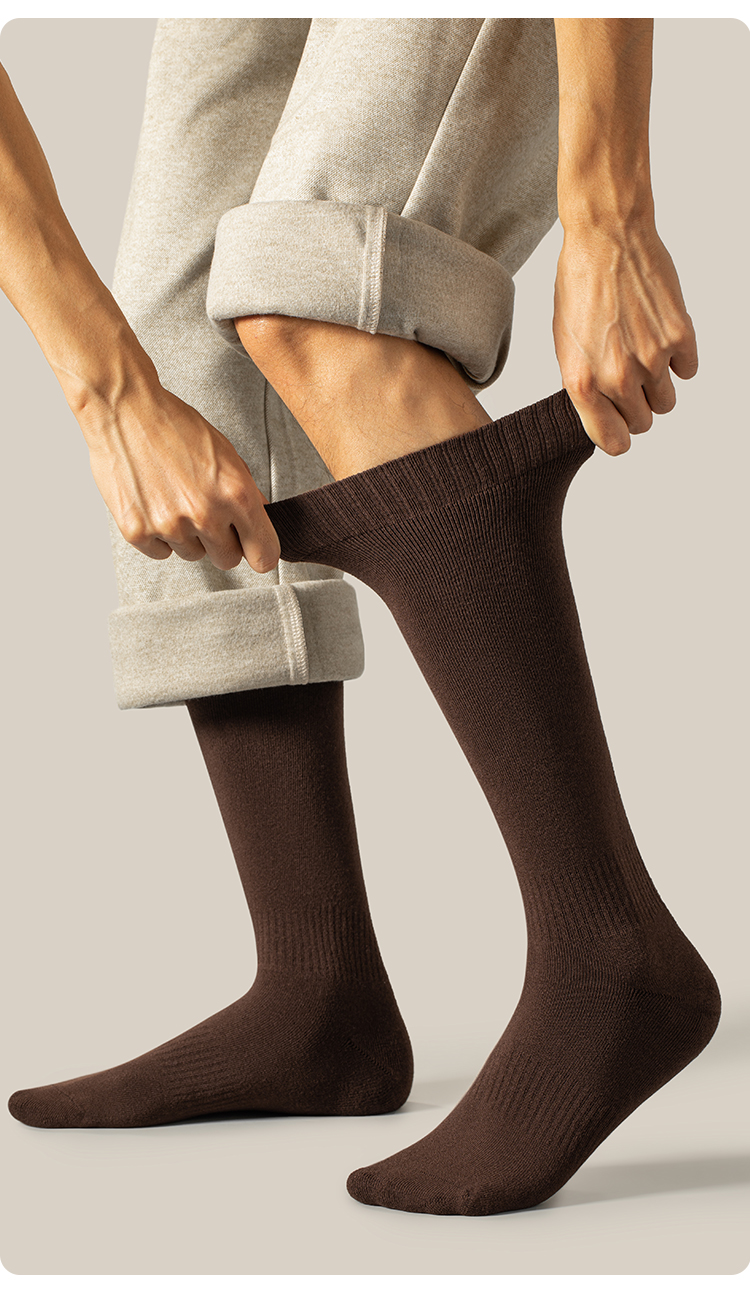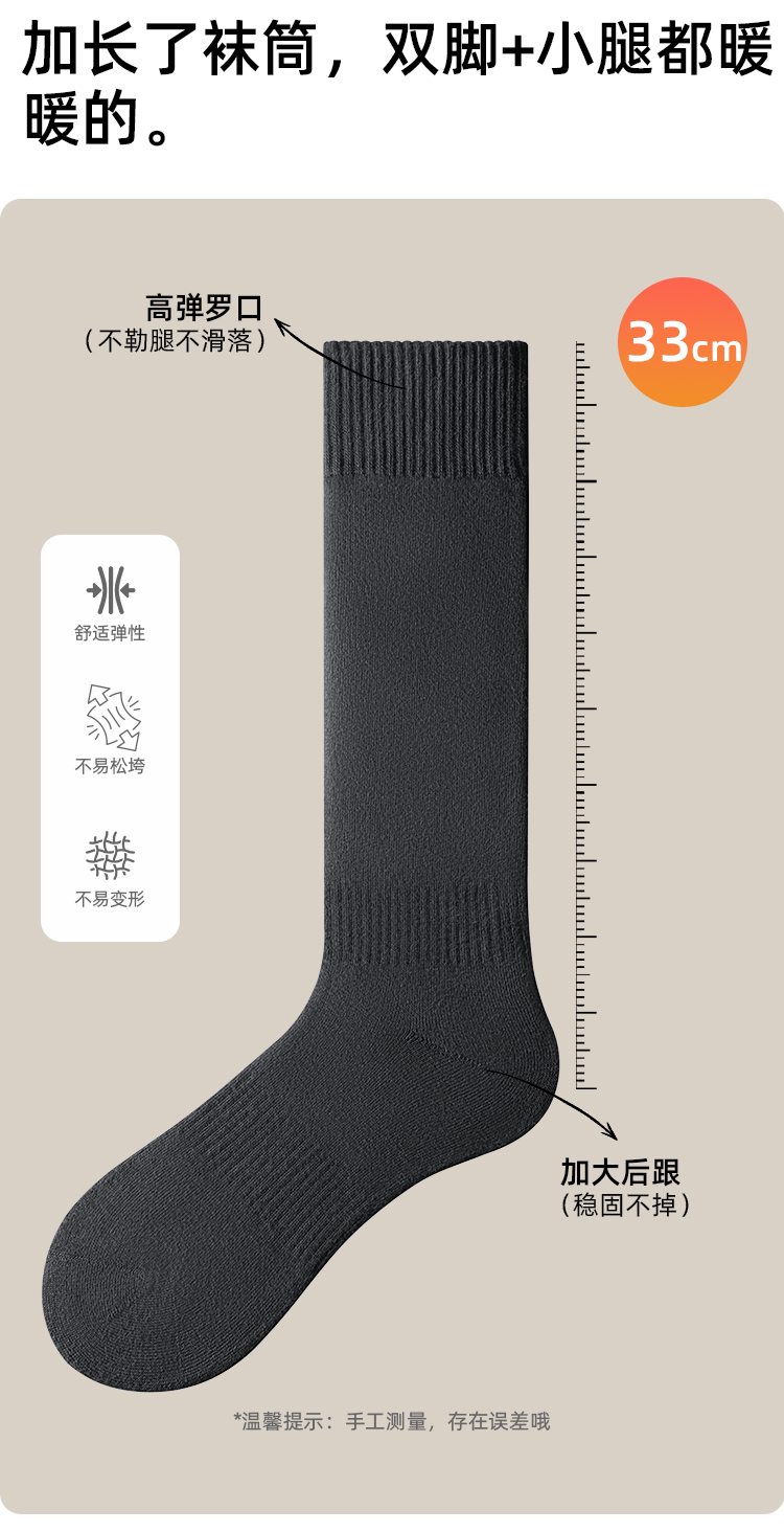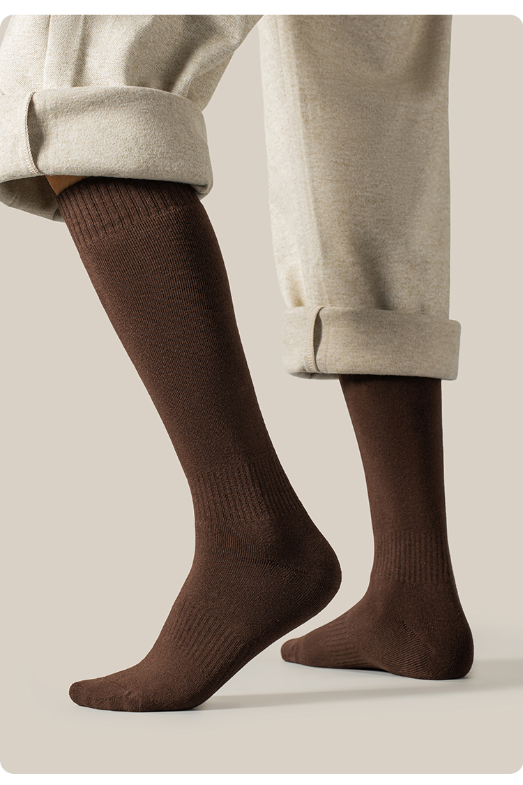 子墨長筒襪子男款秋冬純棉紗線男加絨加厚小腿襪毛圈高筒黑色長襪