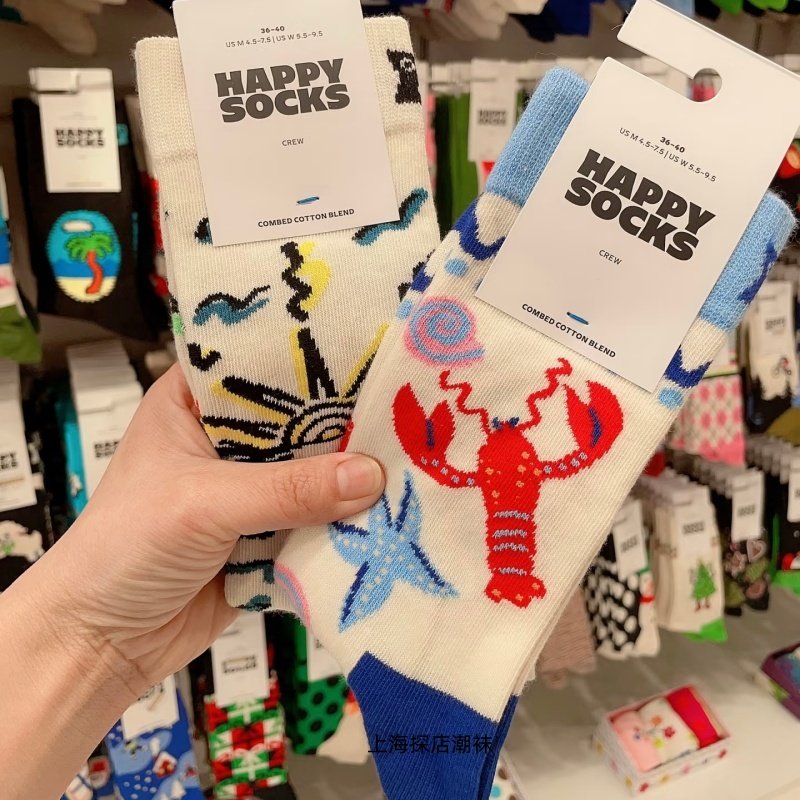 happysocks旗艦店新款爆款女中筒襪瑞典潮牌HS純棉百搭四季款襪子