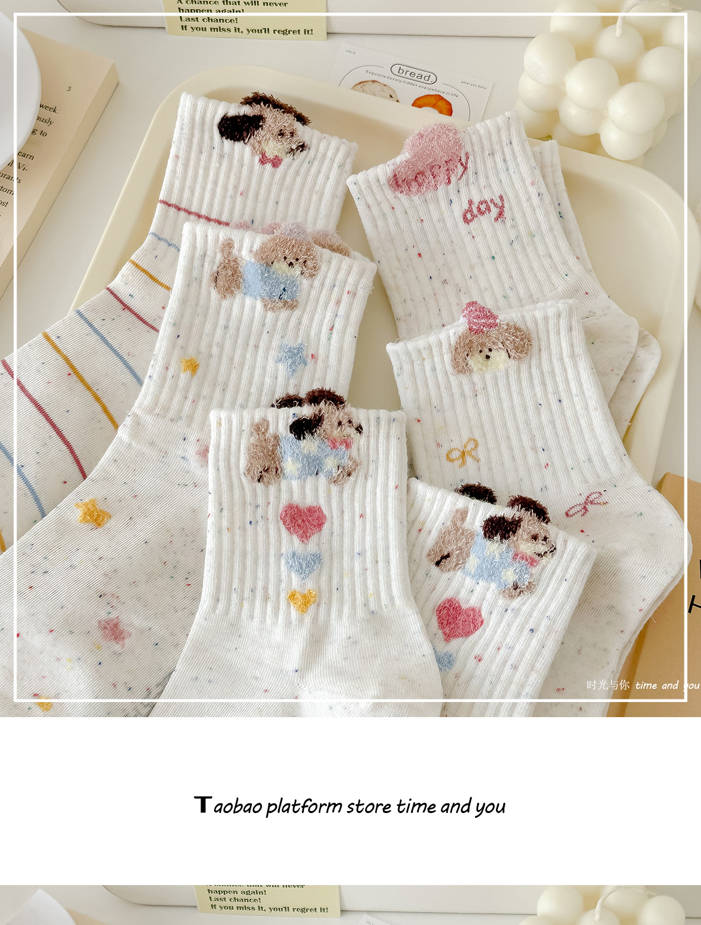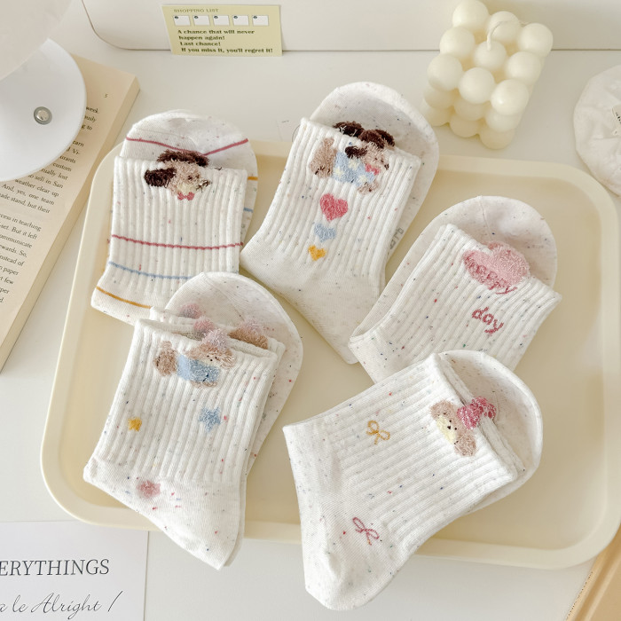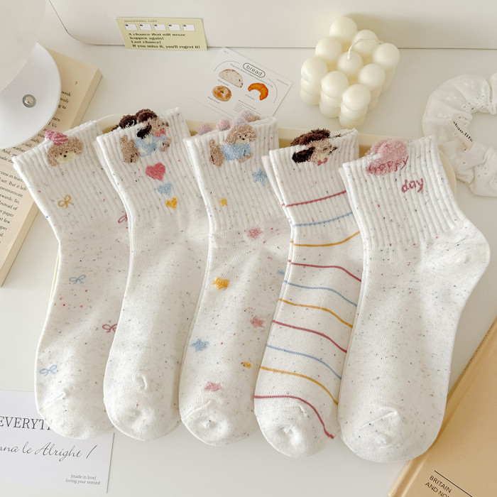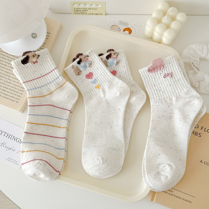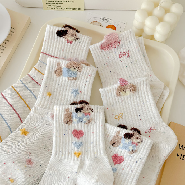 秋冬新款點子紗襪子女中筒襪毛絨狗運動風透氣韓版ins潮可愛卡通