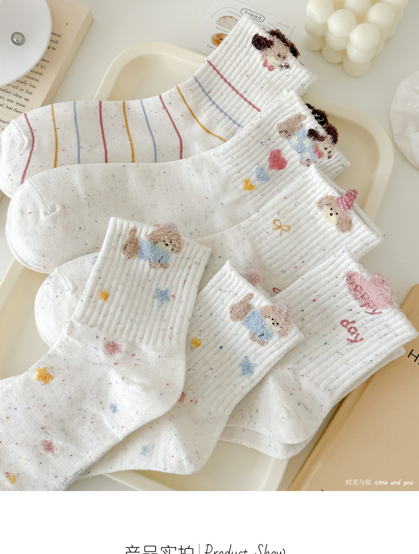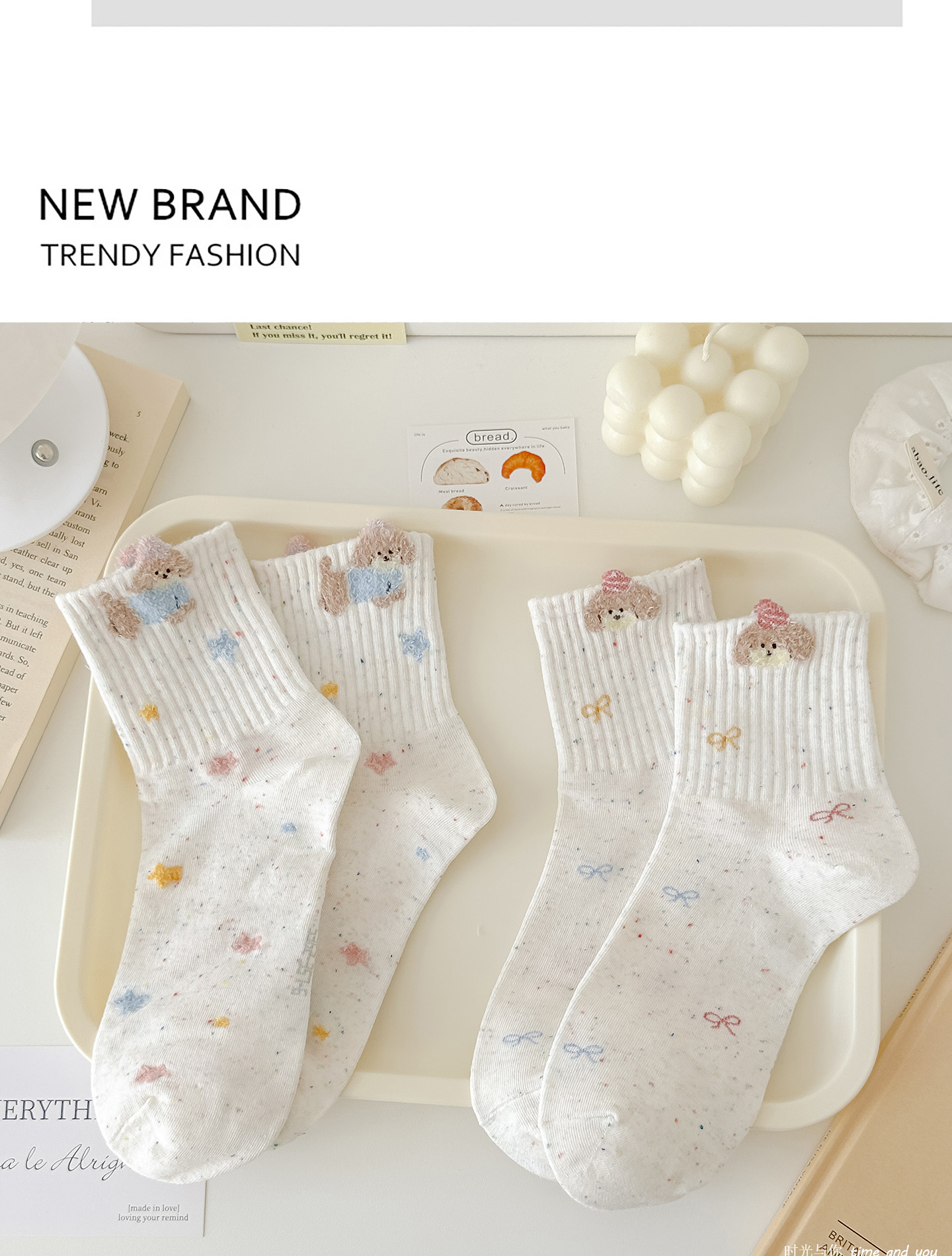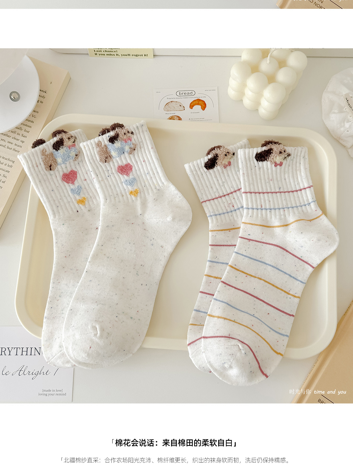 秋冬新款點子紗襪子女中筒襪毛絨狗運動風透氣韓版ins潮可愛卡通