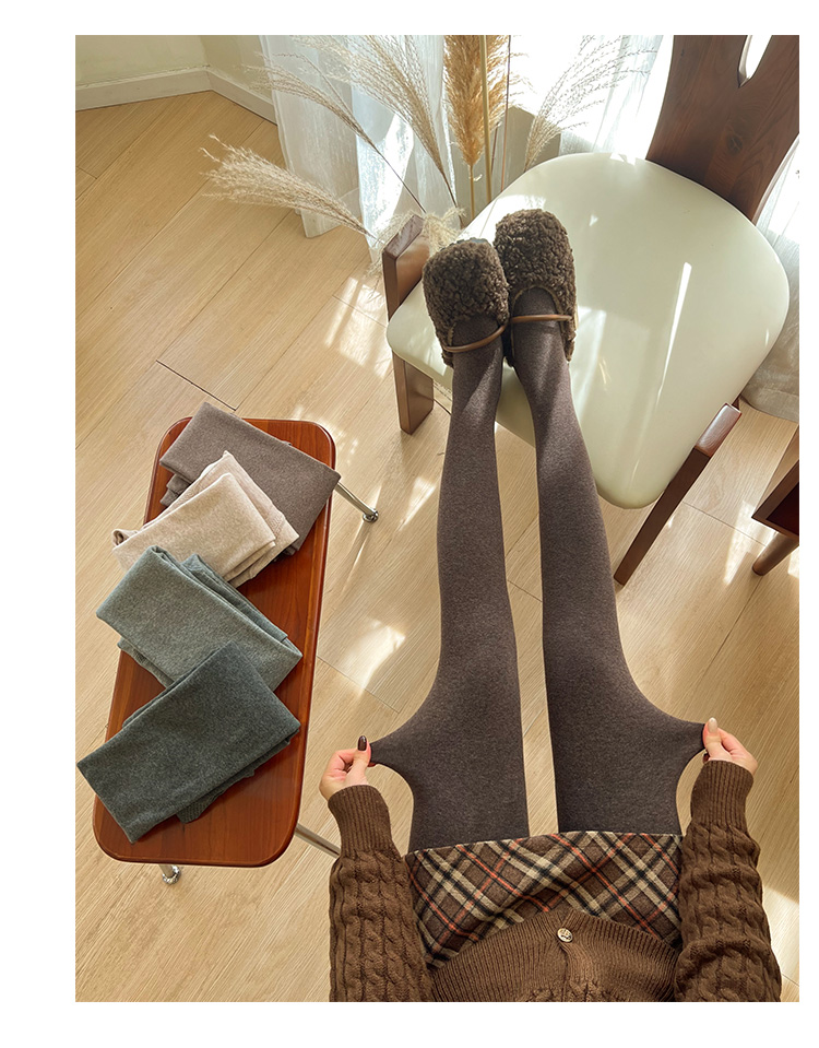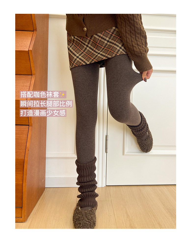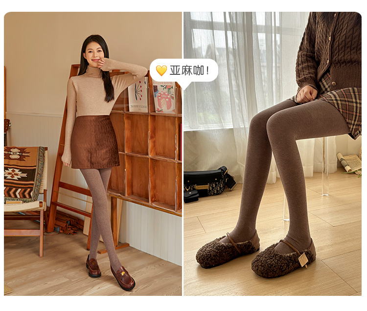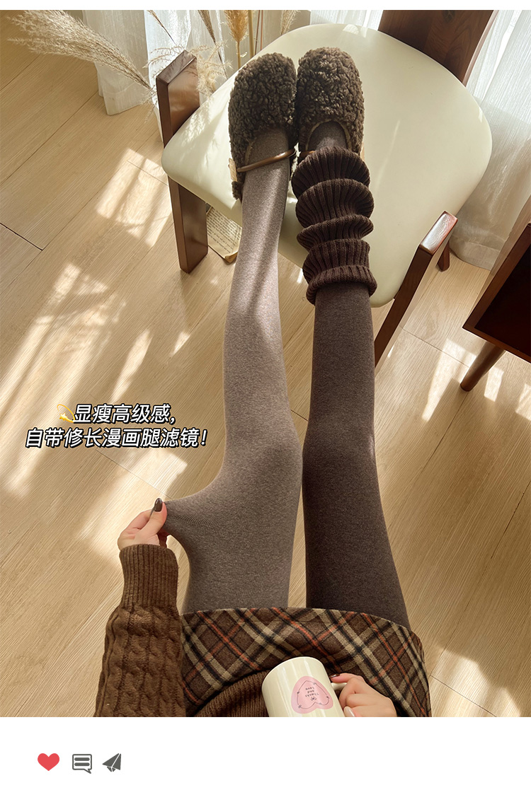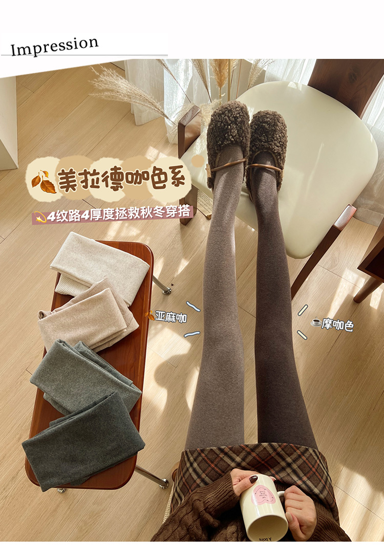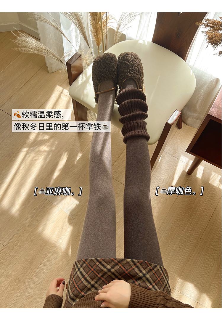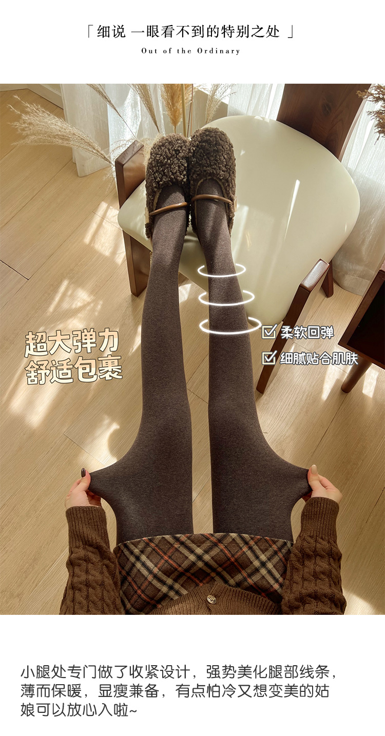 淡時光咖啡色連褲襪女秋冬加絨加厚保暖顯瘦美拉德風踩腳打底褲襪