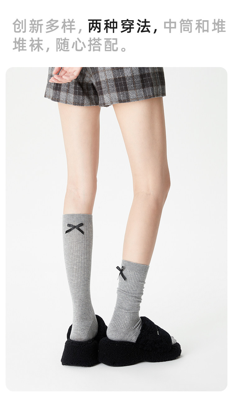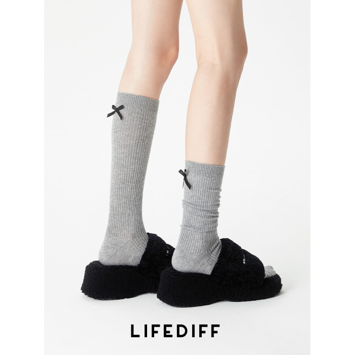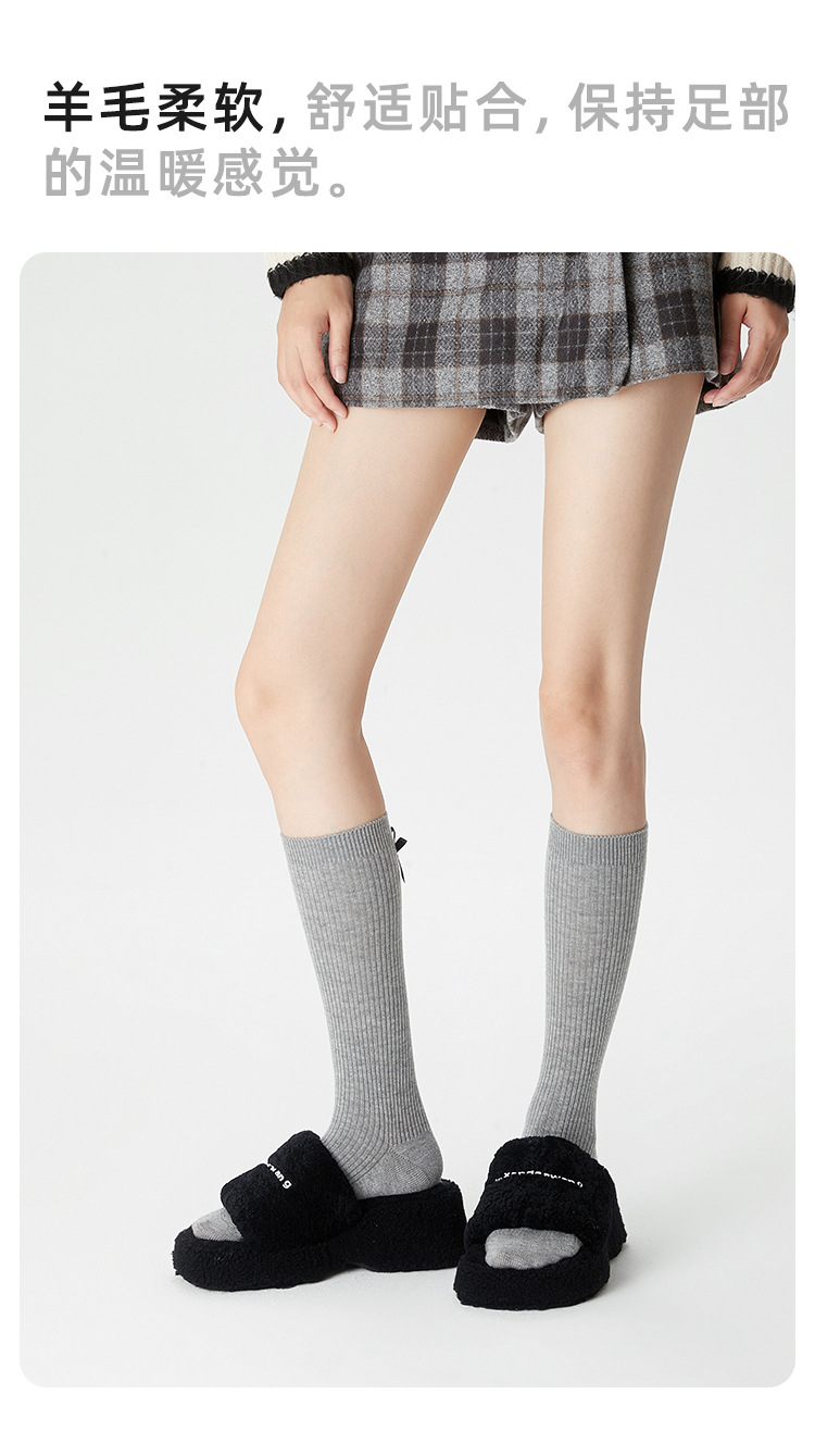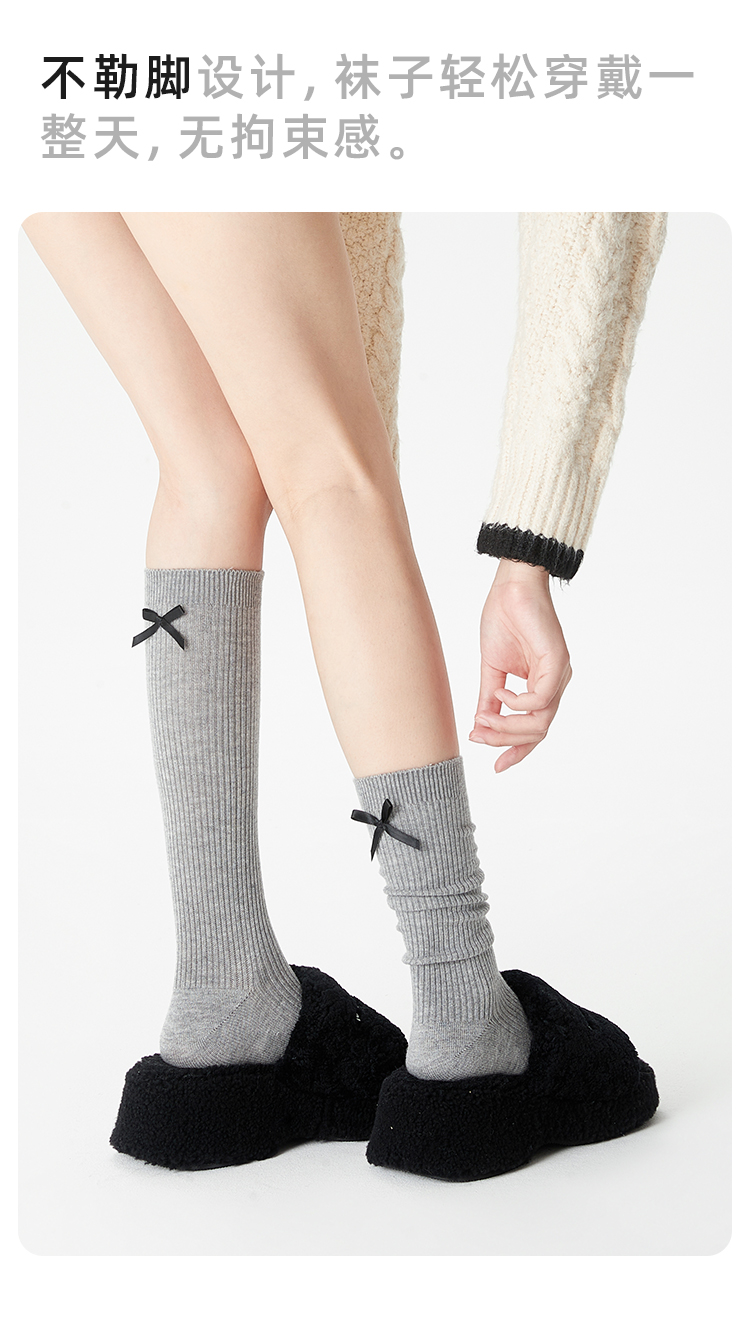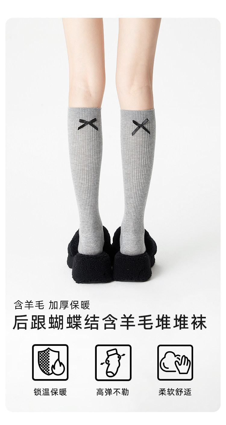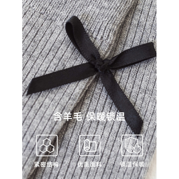 灰色小腿襪保暖羊毛襪秋冬季長襪堆堆襪女配小皮鞋竪紋蝴蝶結襪子