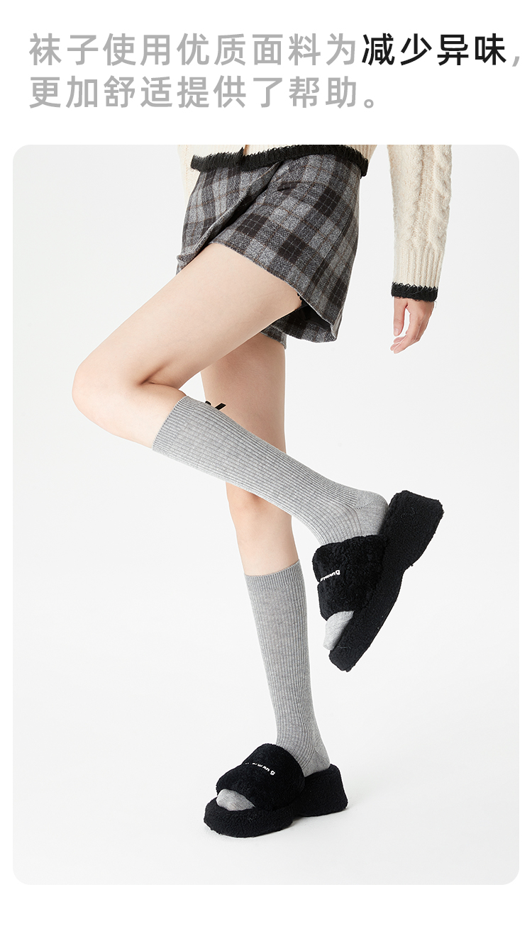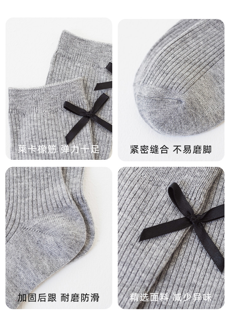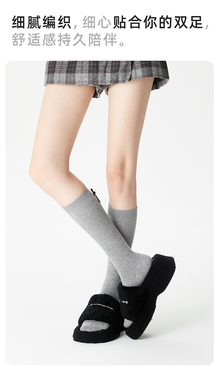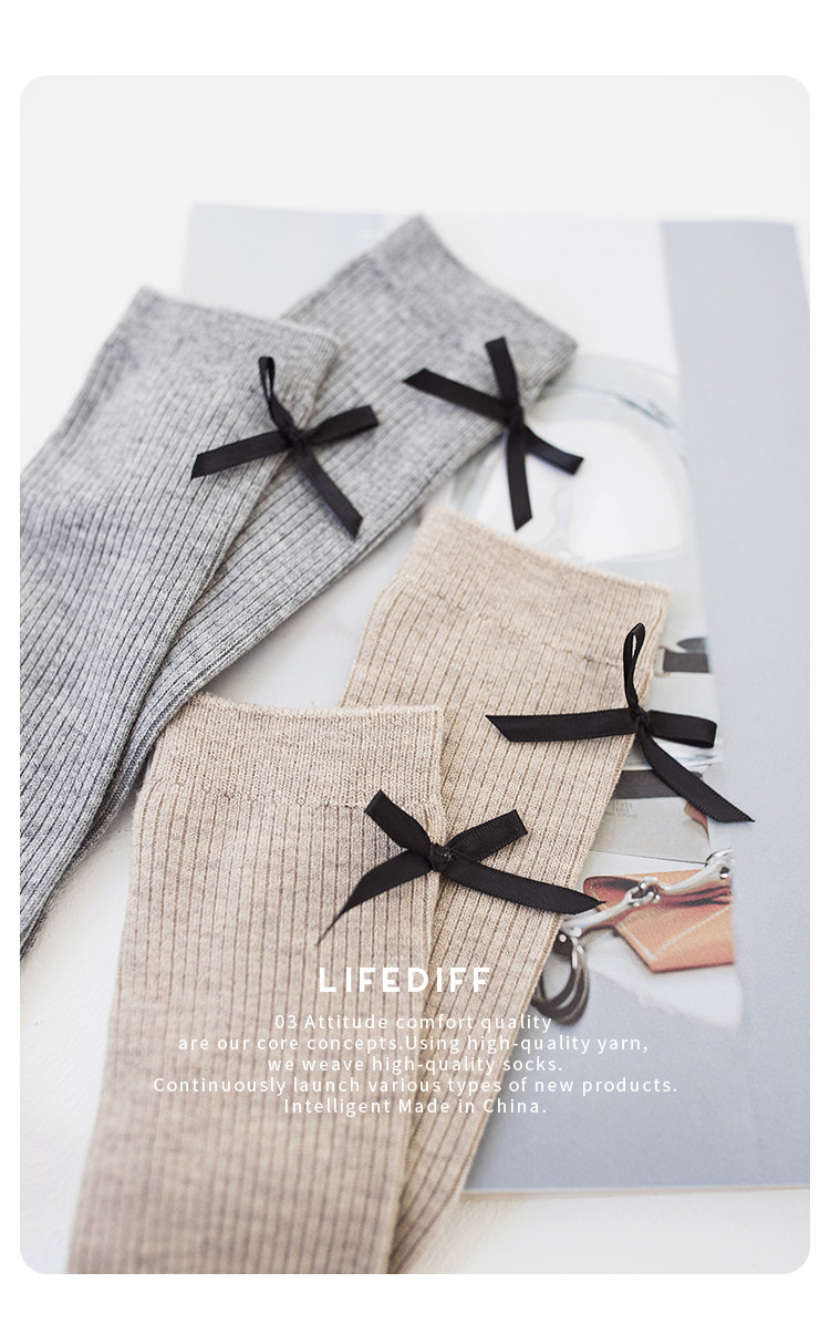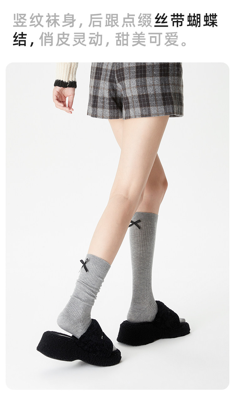 灰色小腿襪保暖羊毛襪秋冬季長襪堆堆襪女配小皮鞋竪紋蝴蝶結襪子