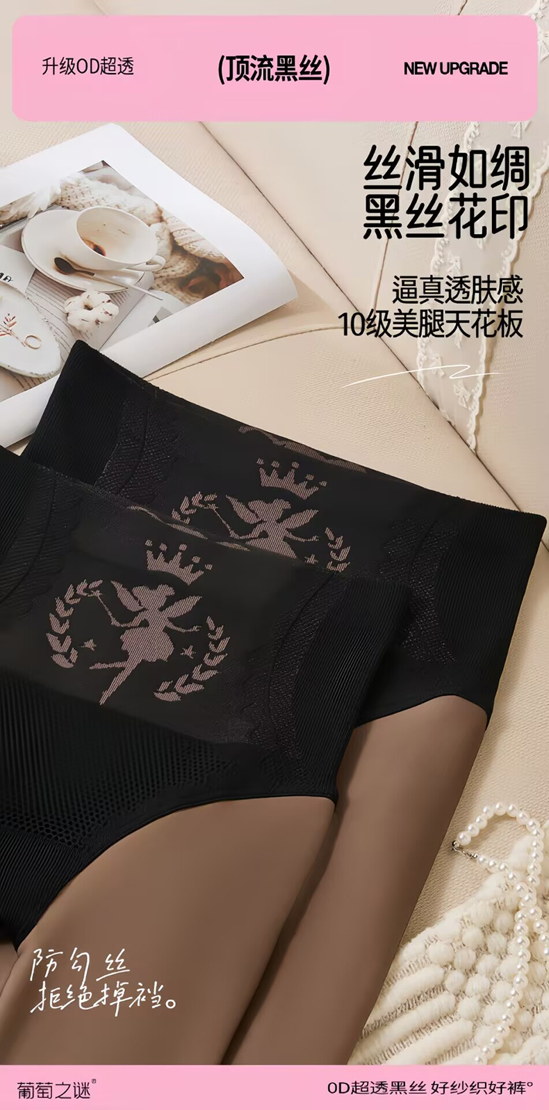 水光襪單層一體光腿神器春秋女秋冬裸感打底褲黑透膚高腰收腹提臀
