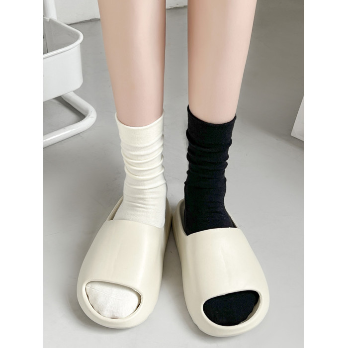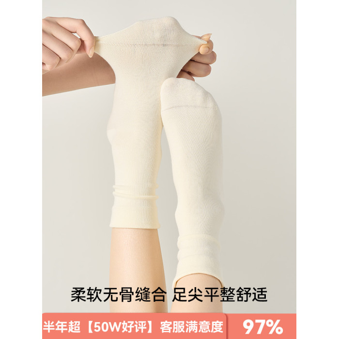 無骨襪子女春秋黑色中筒純棉月子長襪配小皮鞋白色堆堆襪女款秋冬