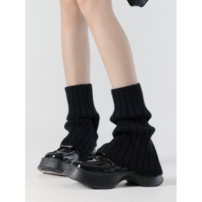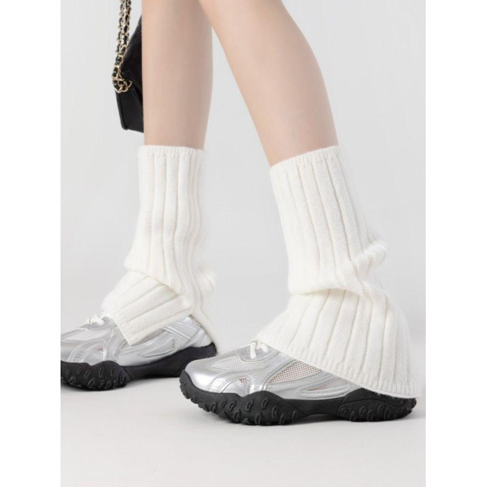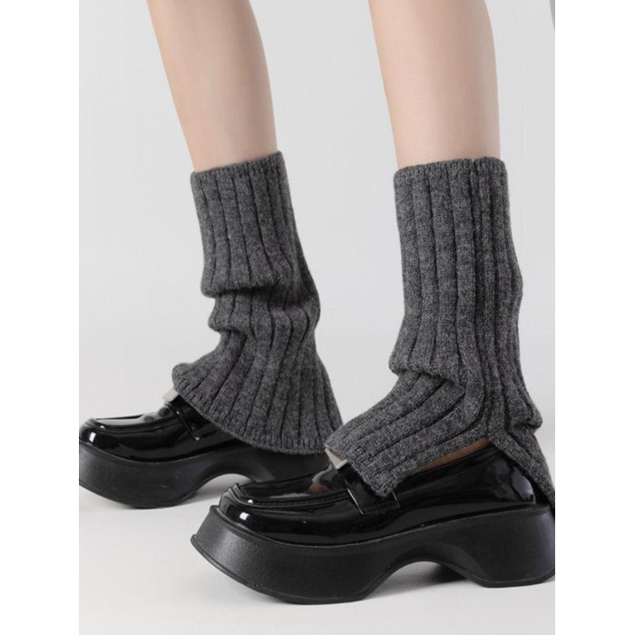 灰色襪套堆堆襪秋冬防滑微喇叭型開叉腿套配鯊魚褲加厚保暖遮小腿