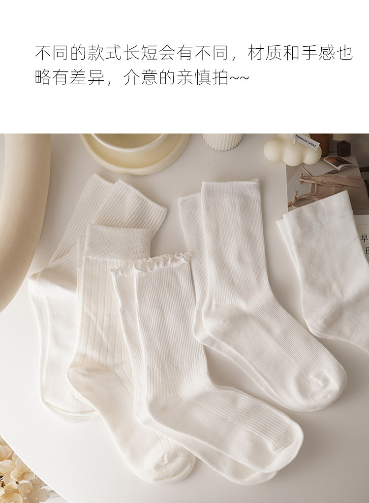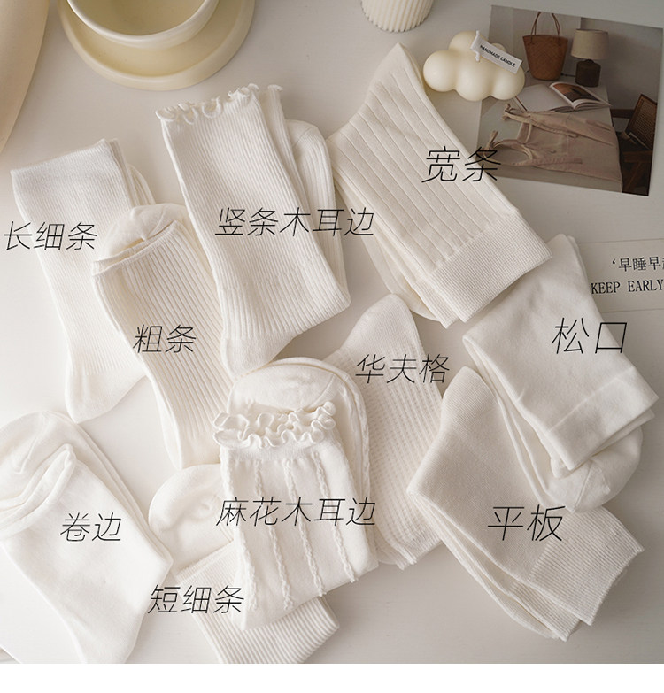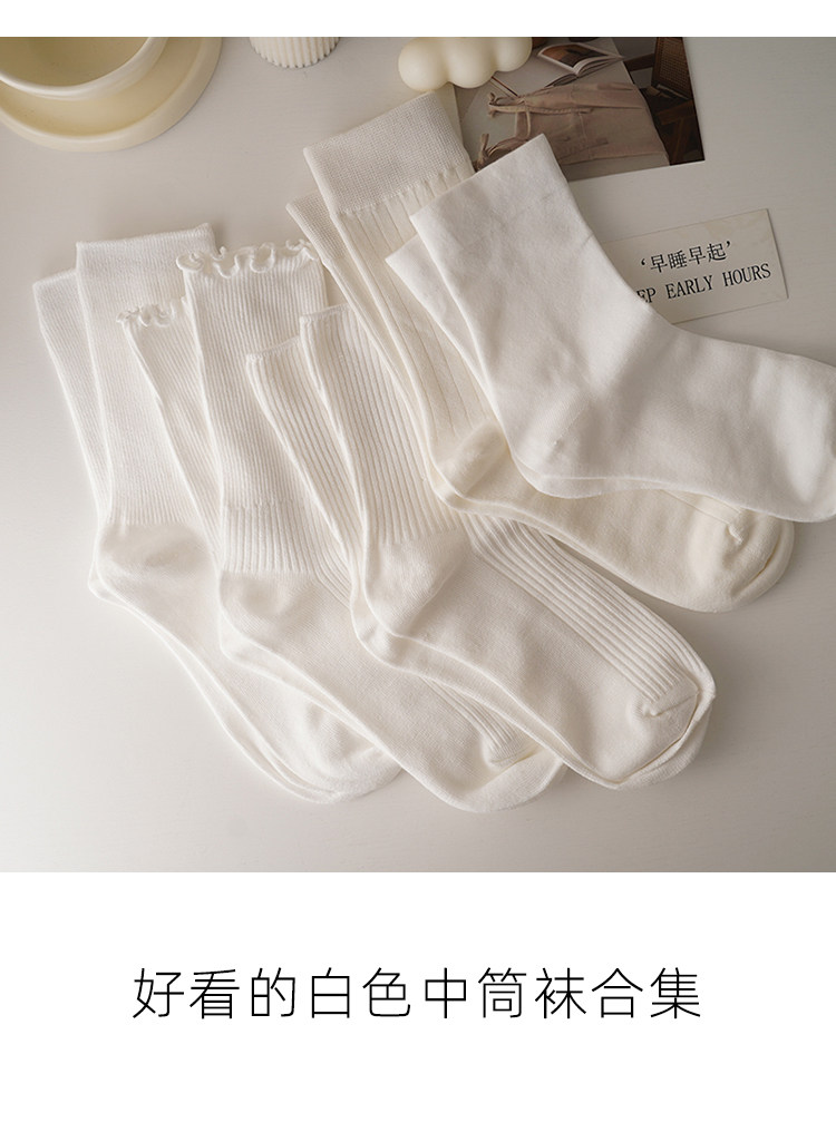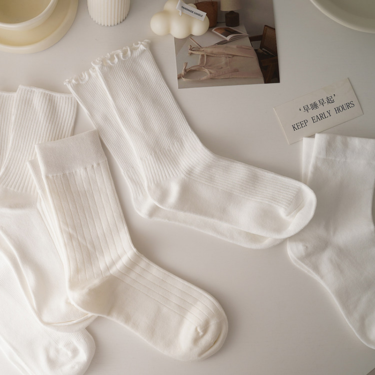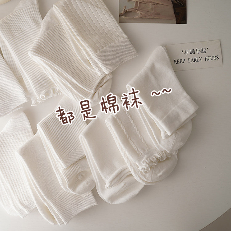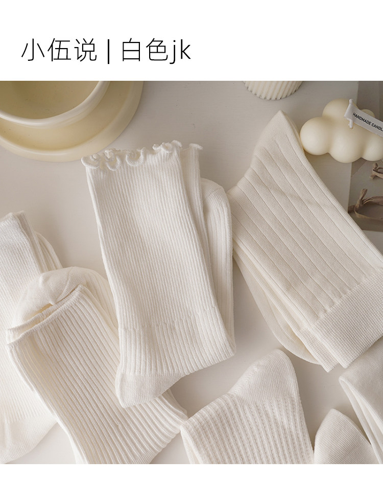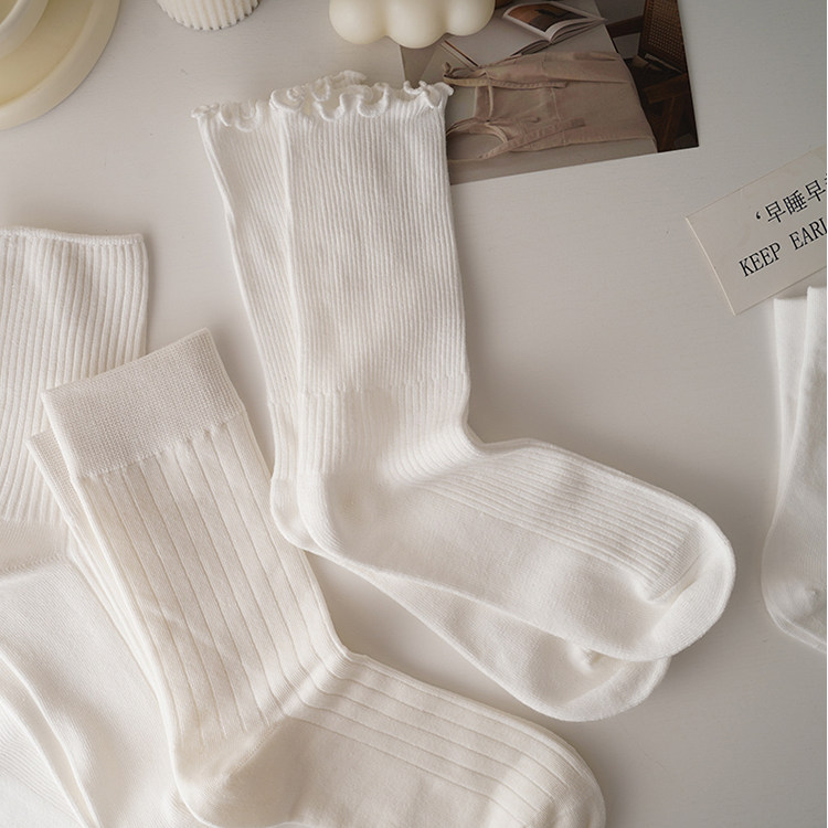 "都是白襪子~白色棉質中筒襪子女四季可穿日系木耳邊可愛jk花邊襪
