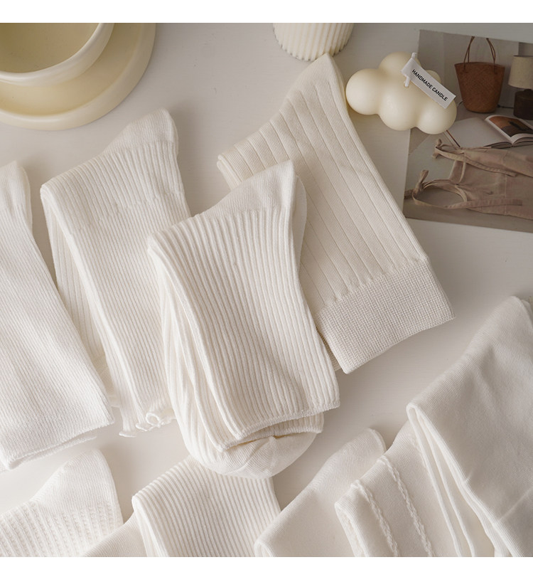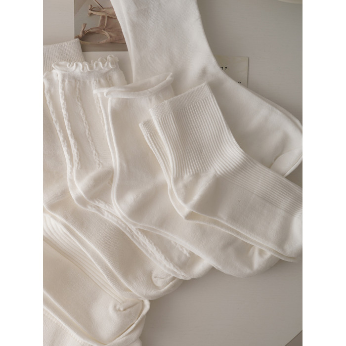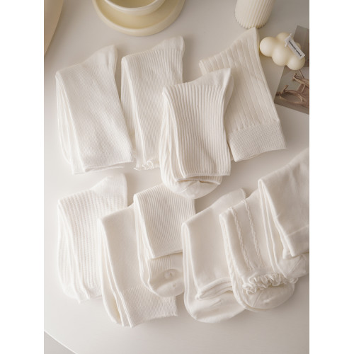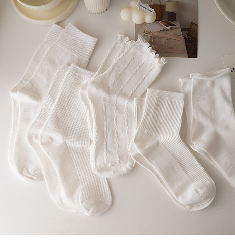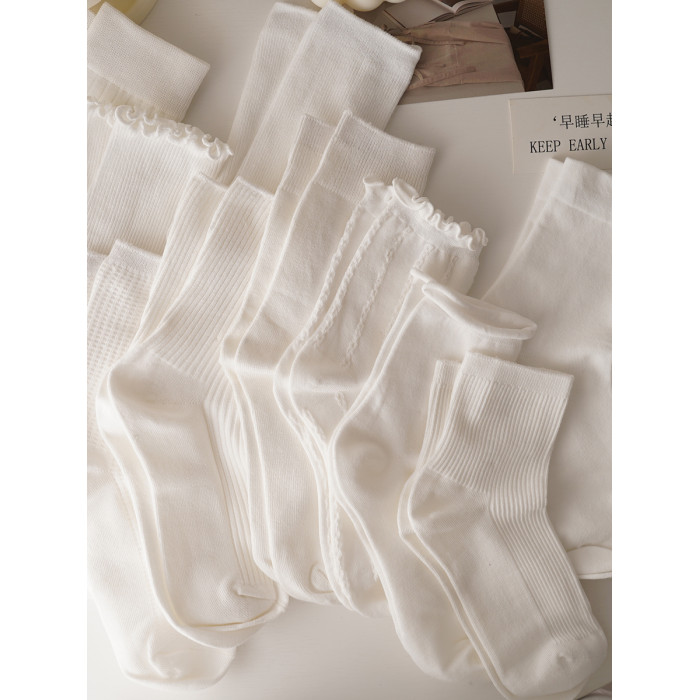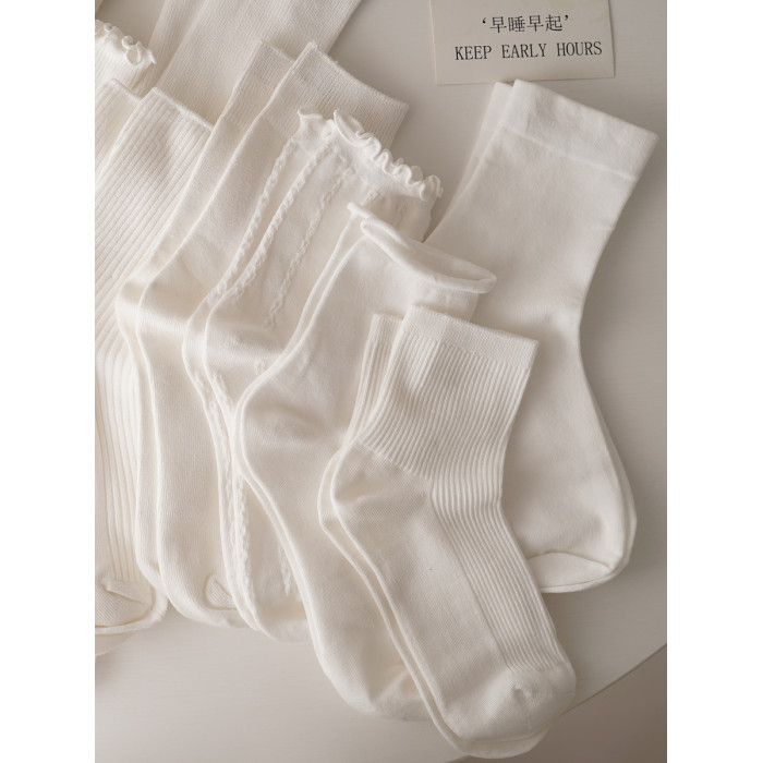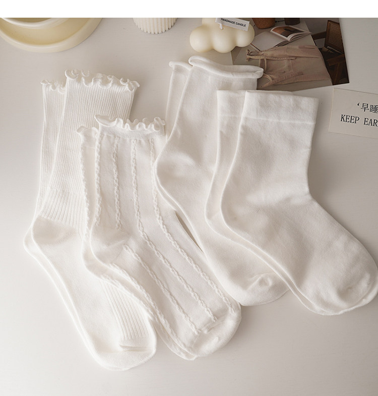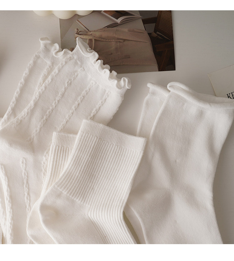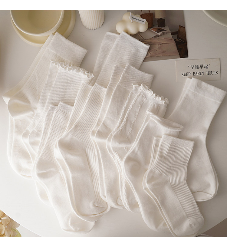 "都是白襪子~白色棉質中筒襪子女四季可穿日系木耳邊可愛jk花邊襪