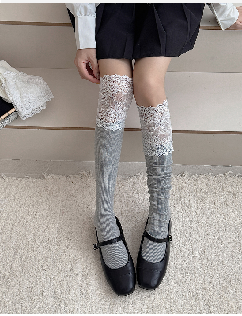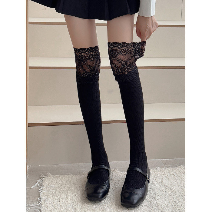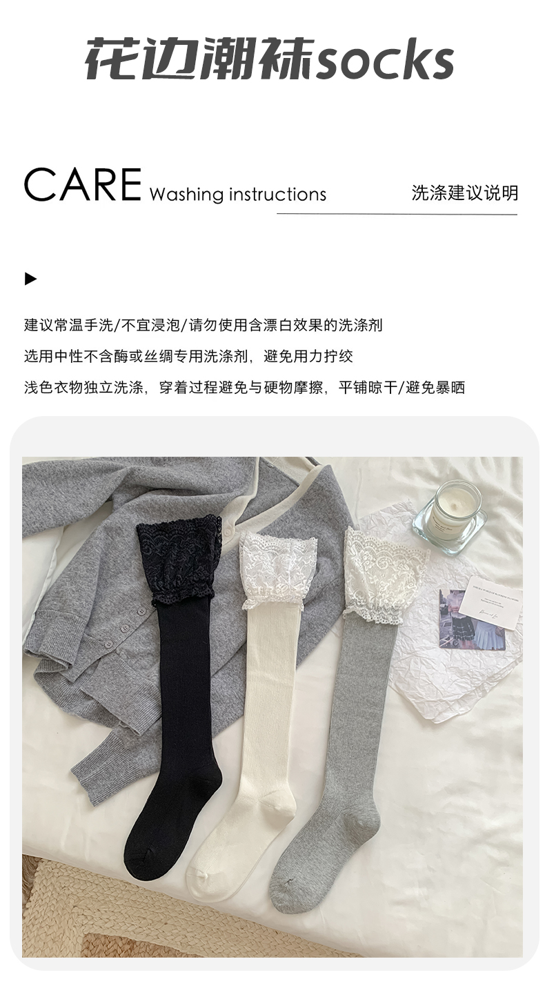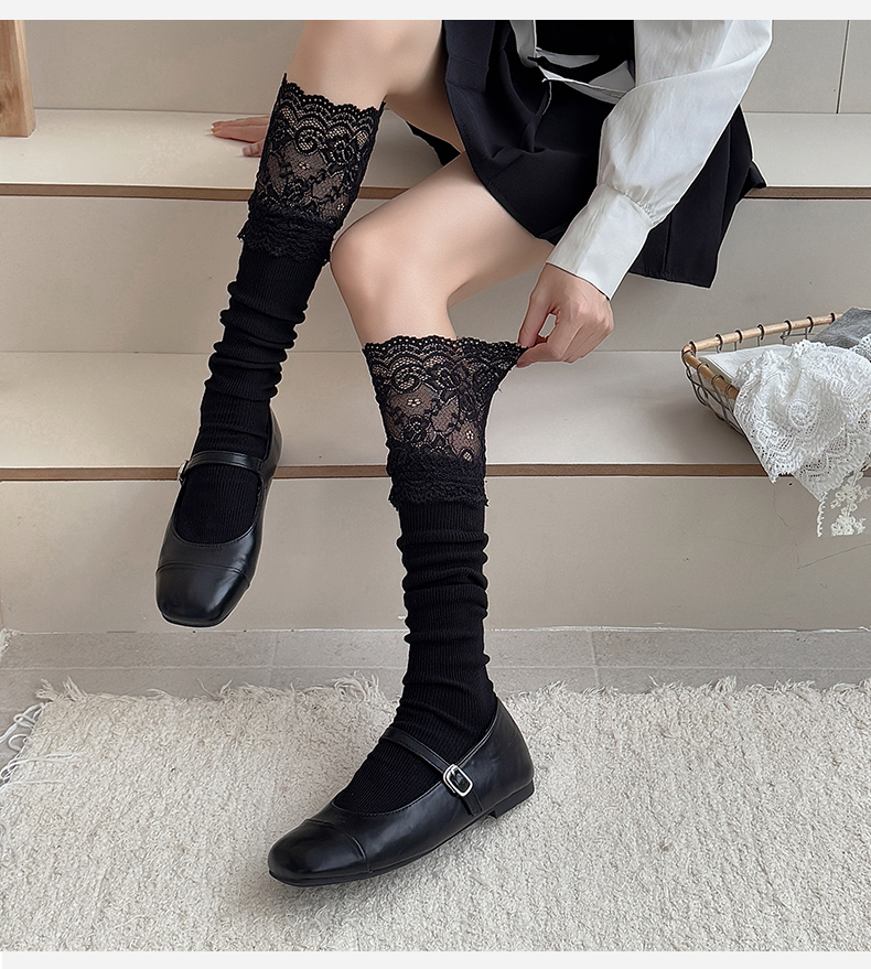 蕾絲小腿襪子女過膝襪春秋性感JK少女長筒靴襪拼接花邊中筒堆堆襪