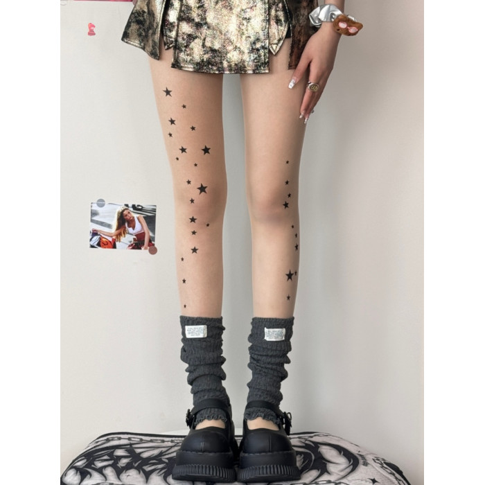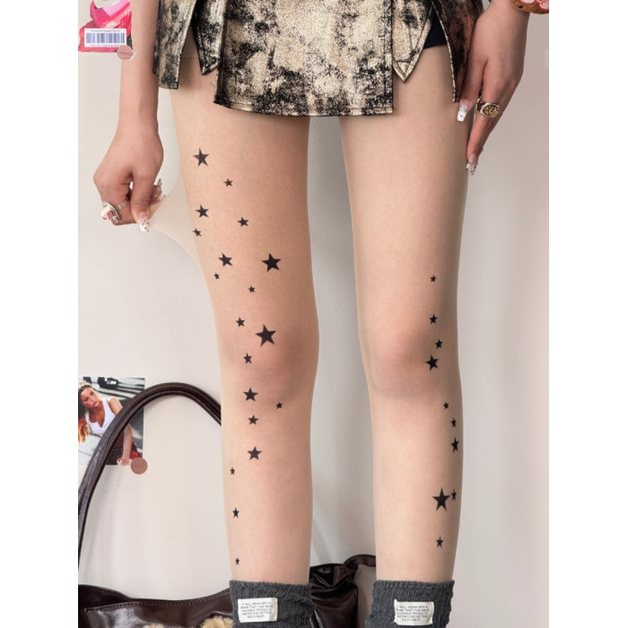 BON 繁星印花絲襪甜酷少女可愛Lolita百搭膚色透肉辣妹紋身連褲襪