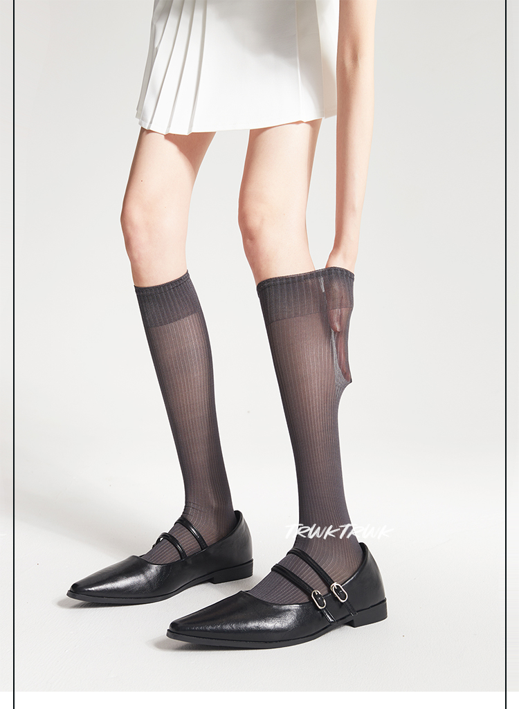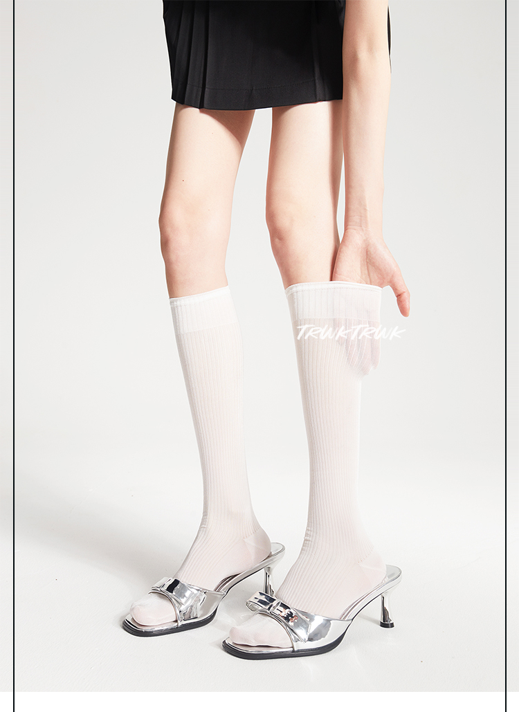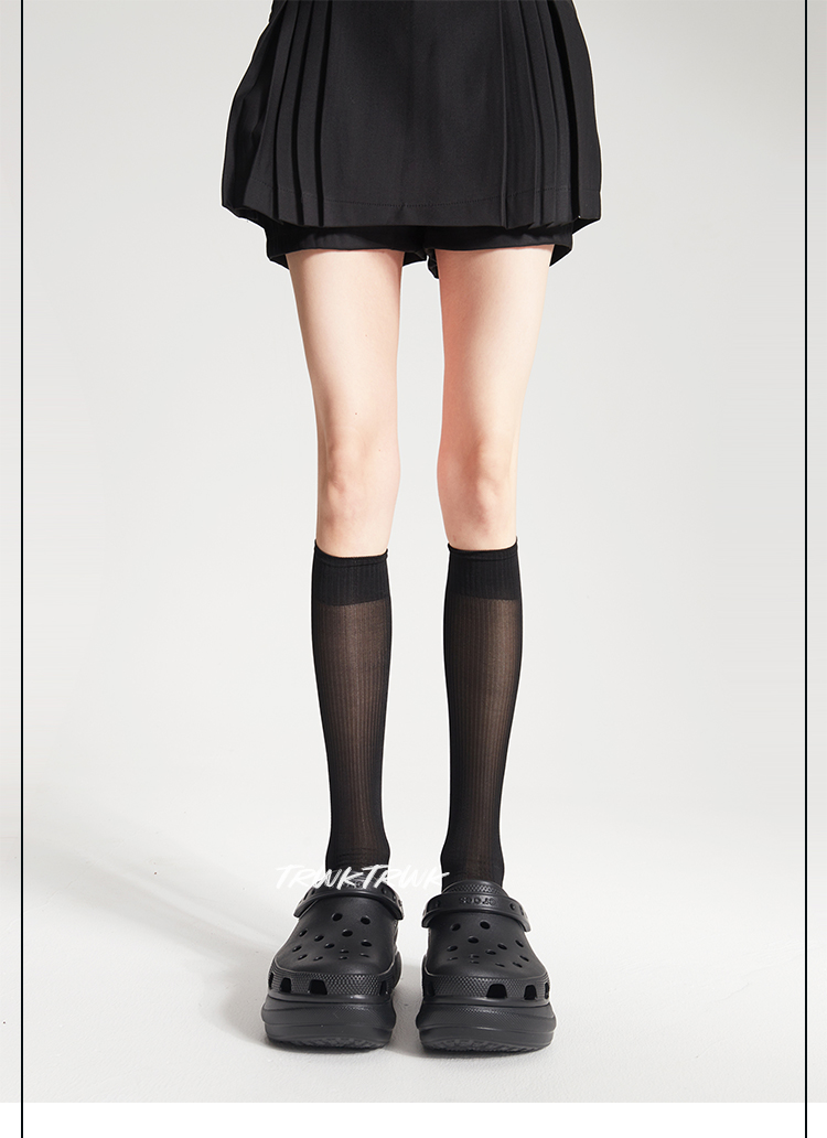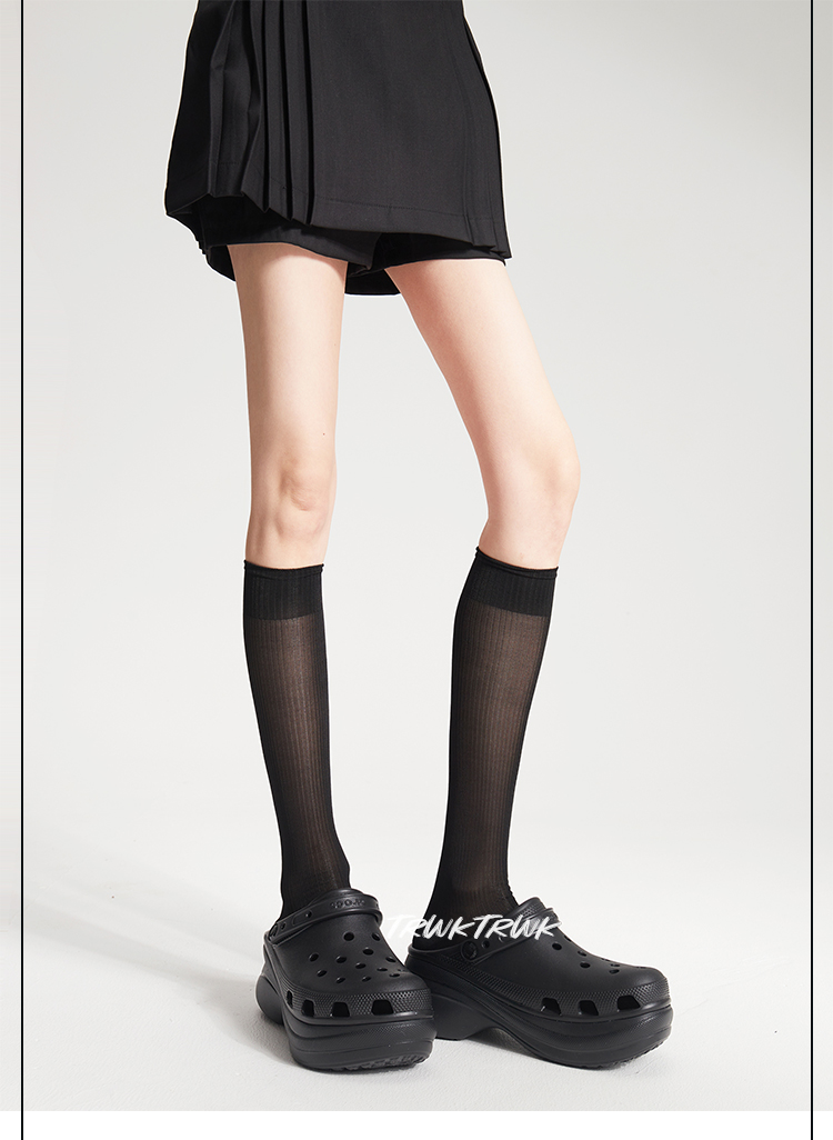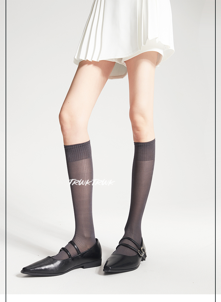 夏季薄款純色無骨細坑條長筒襪女光澤感灰色顯瘦日系jk小腿襪堆堆