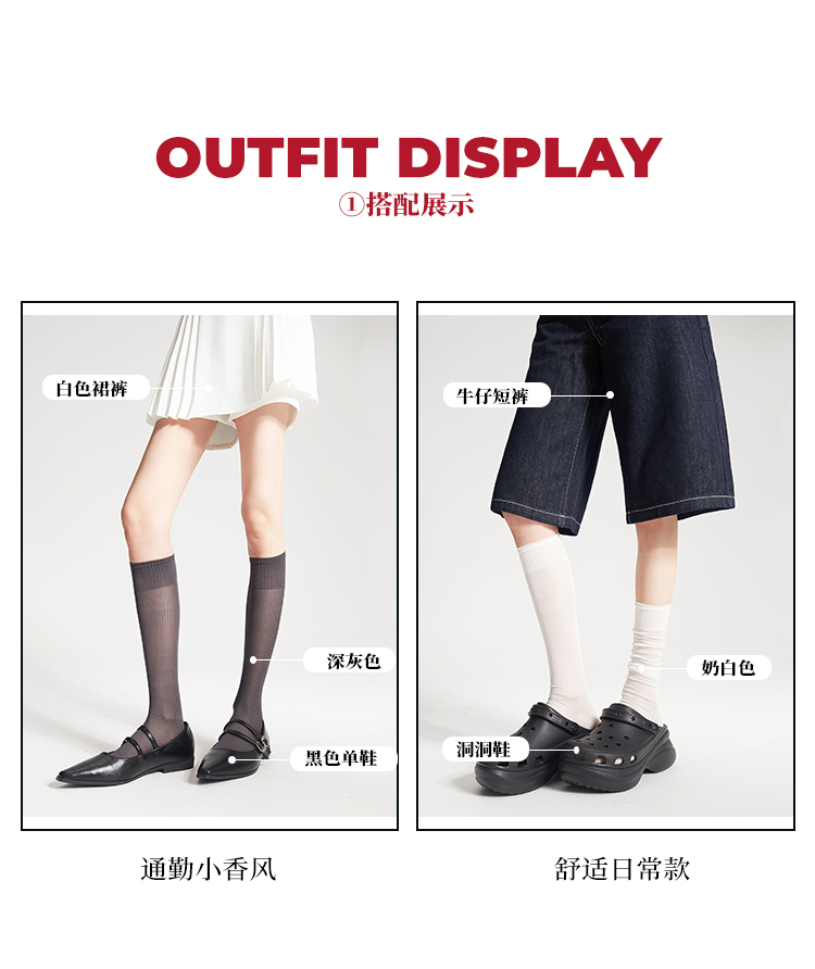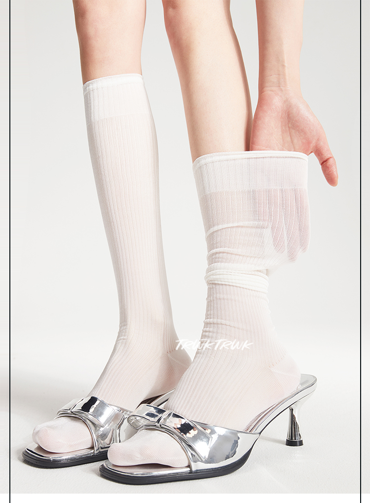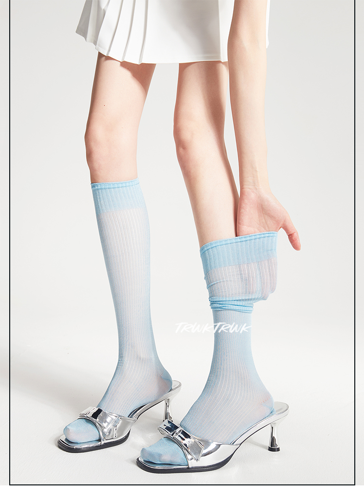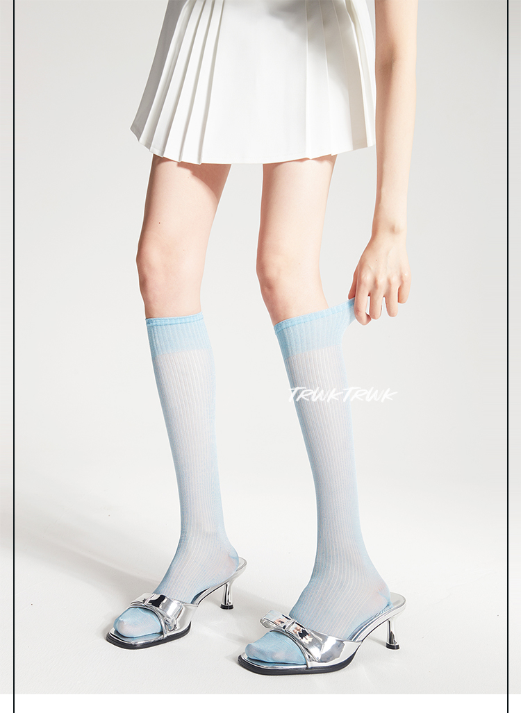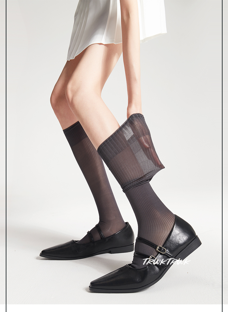 夏季薄款純色無骨細坑條長筒襪女光澤感灰色顯瘦日系jk小腿襪堆堆
