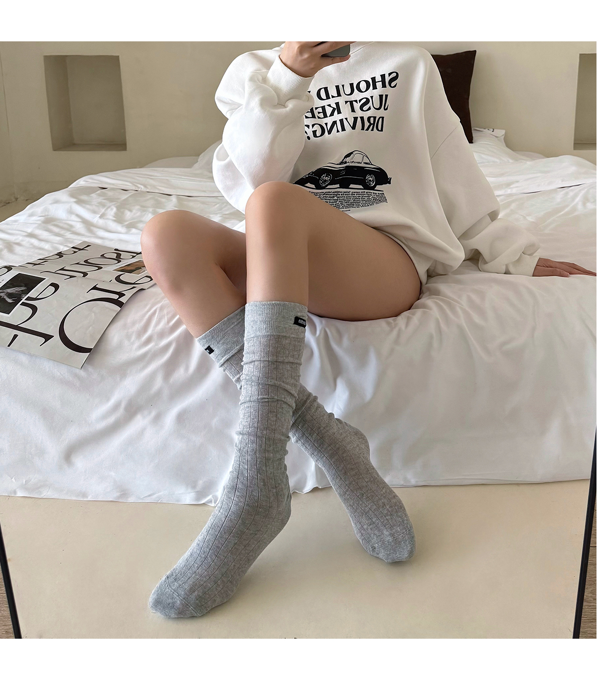 miu白色及膝襪子女秋薄款長筒字母堆堆襪配小皮鞋竪條中筒小腿襪