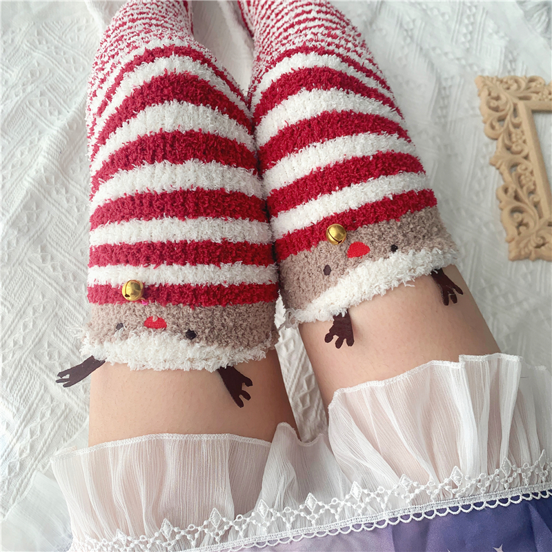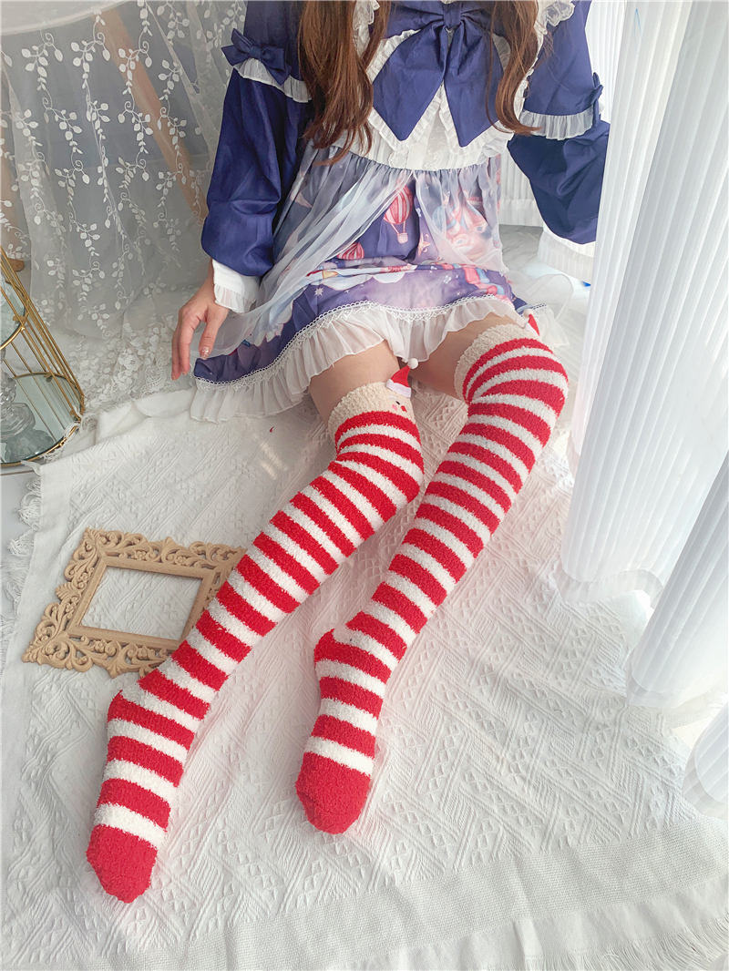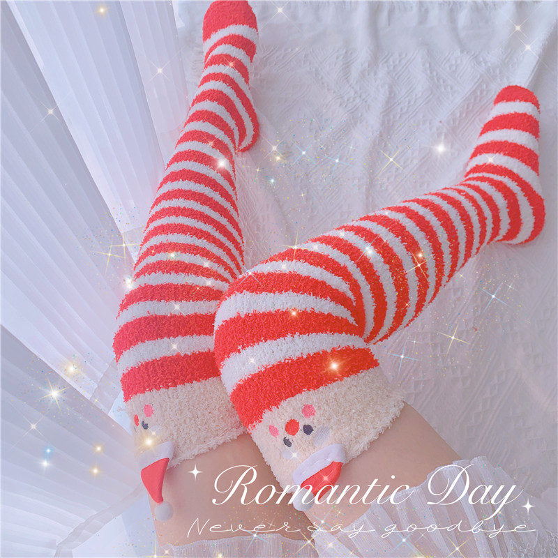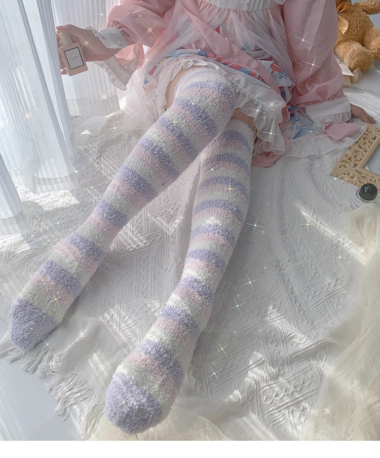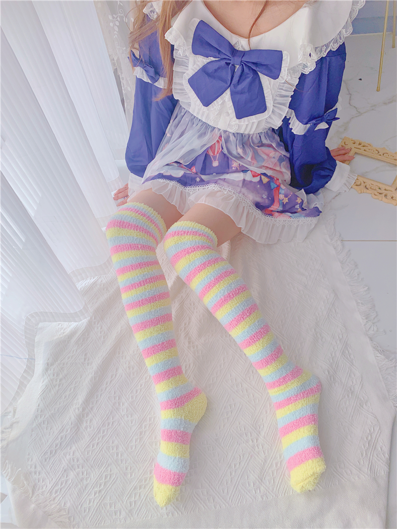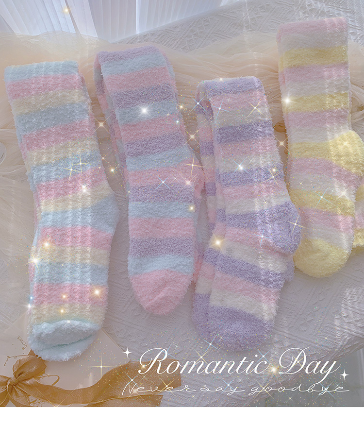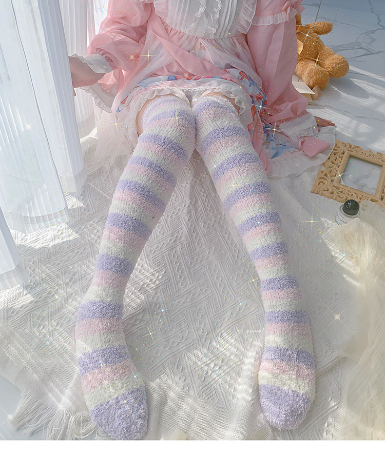冰淇淋色珊瑚絨女過膝高筒襪地板襪軟綿綿毛絨保暖長筒襪睡眠襪子