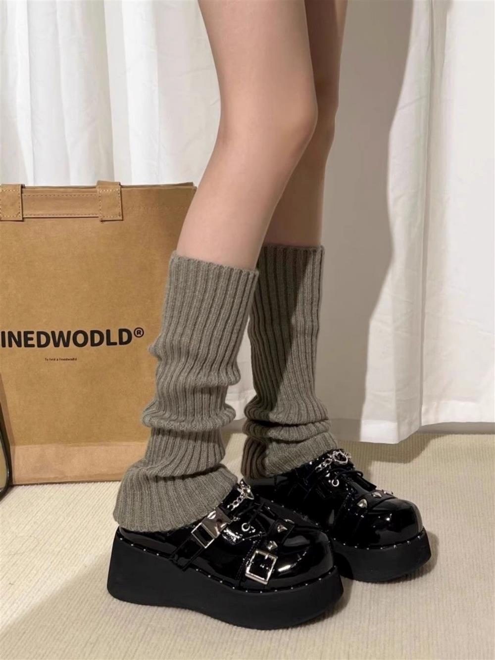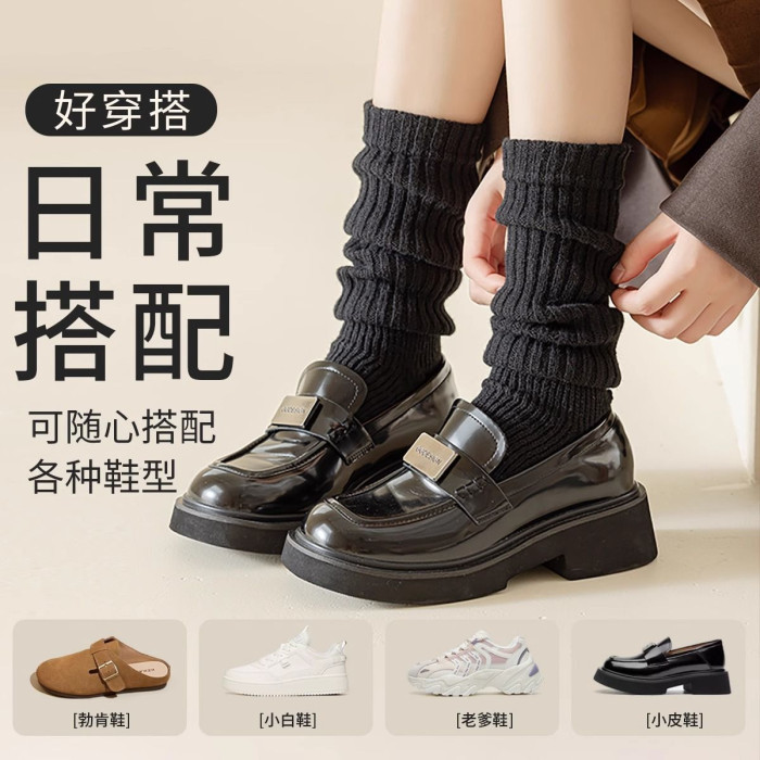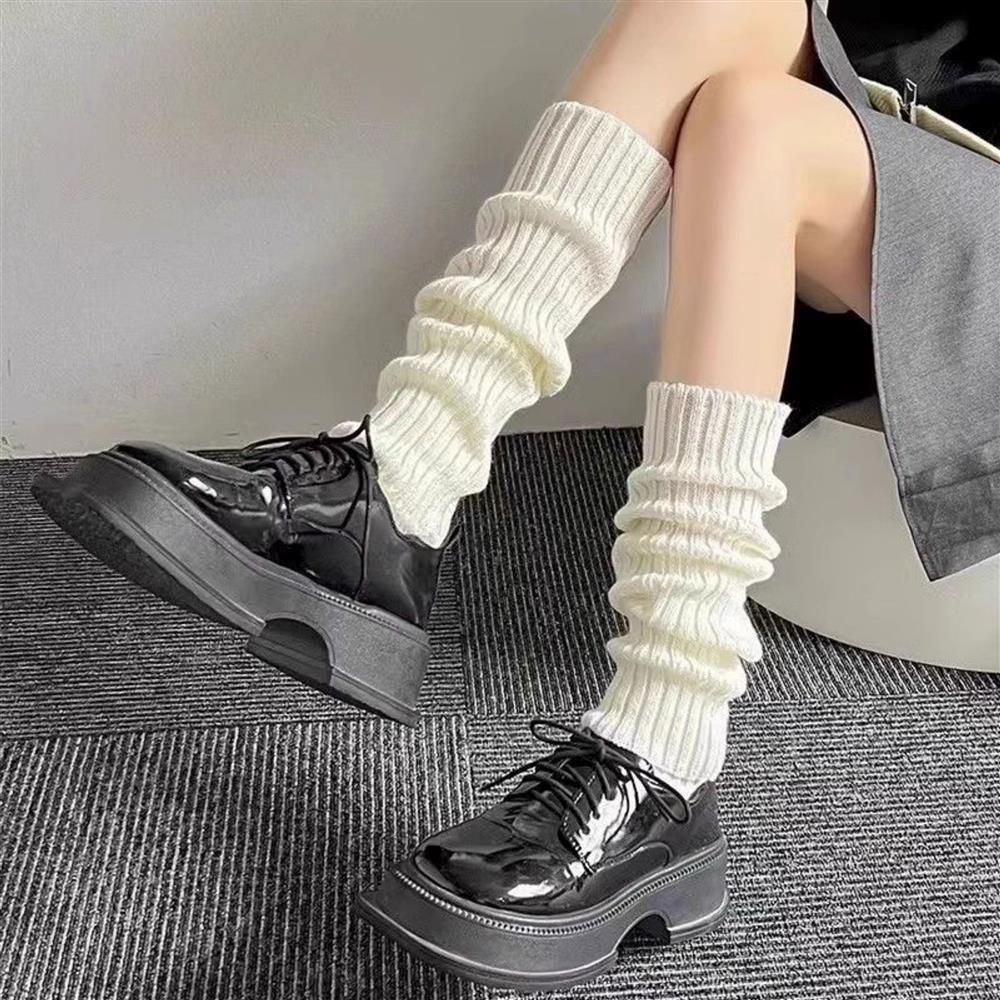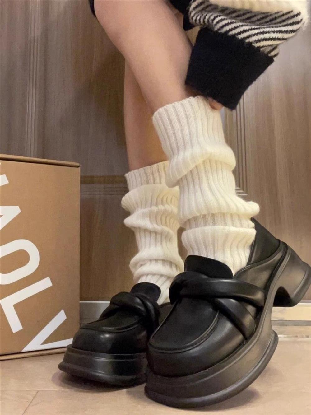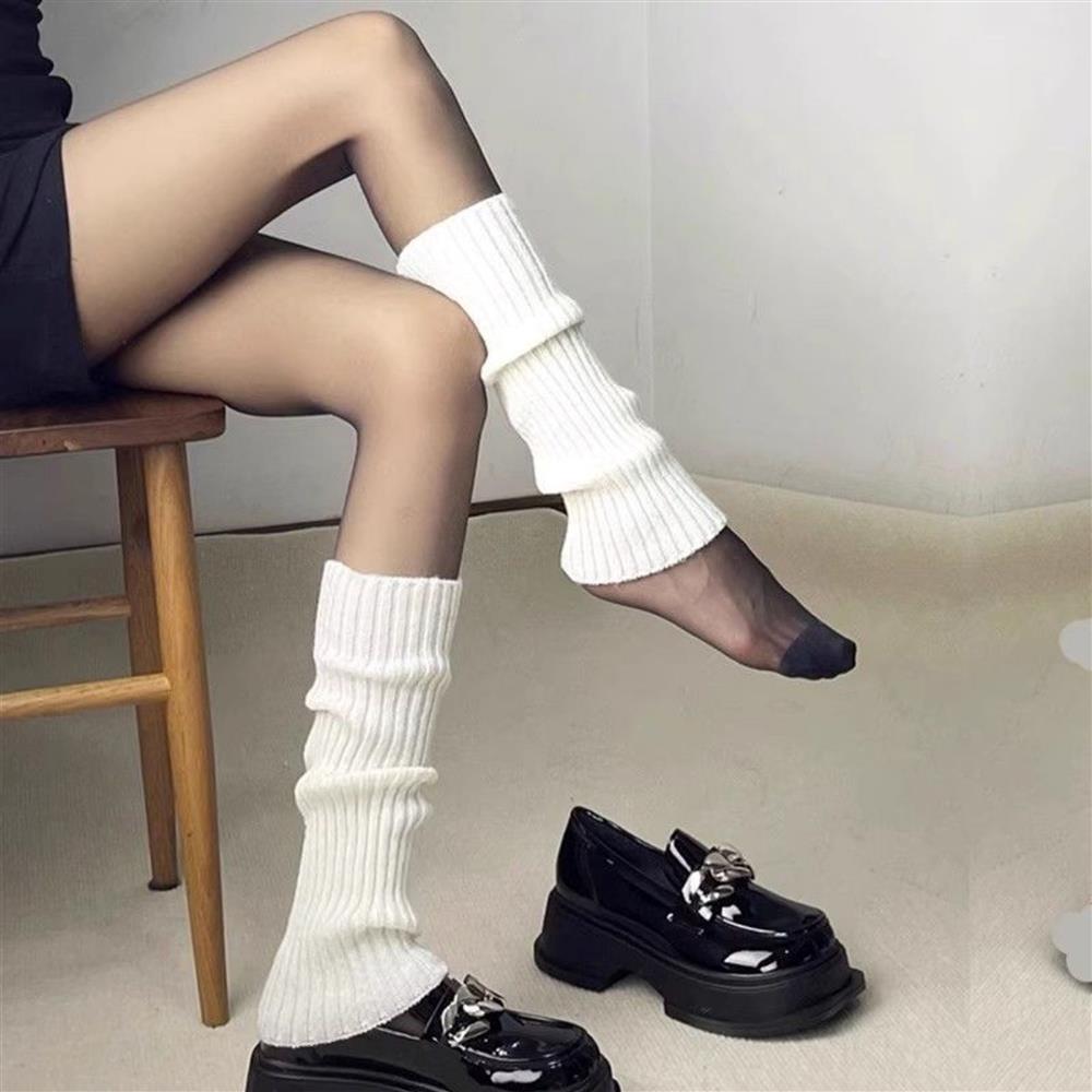 白色堆堆襪套日系女針織襪子小腿襪少女百搭穿搭腿套保暖中筒襪