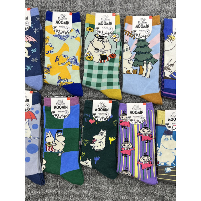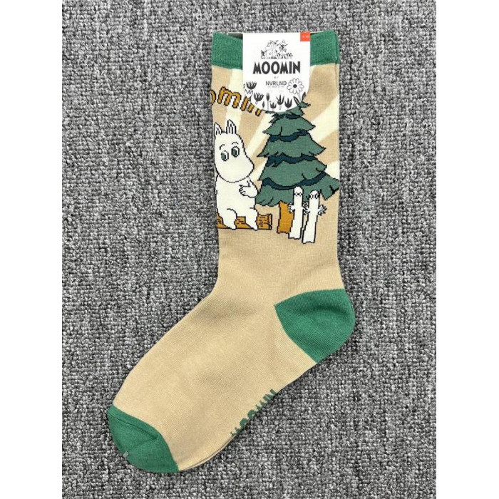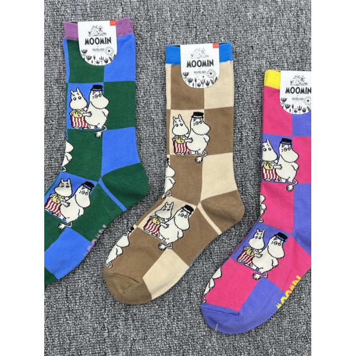 姆明亞美襪子新款女士純棉中筒襪卡通圖案森系文藝範甜美可愛潮襪