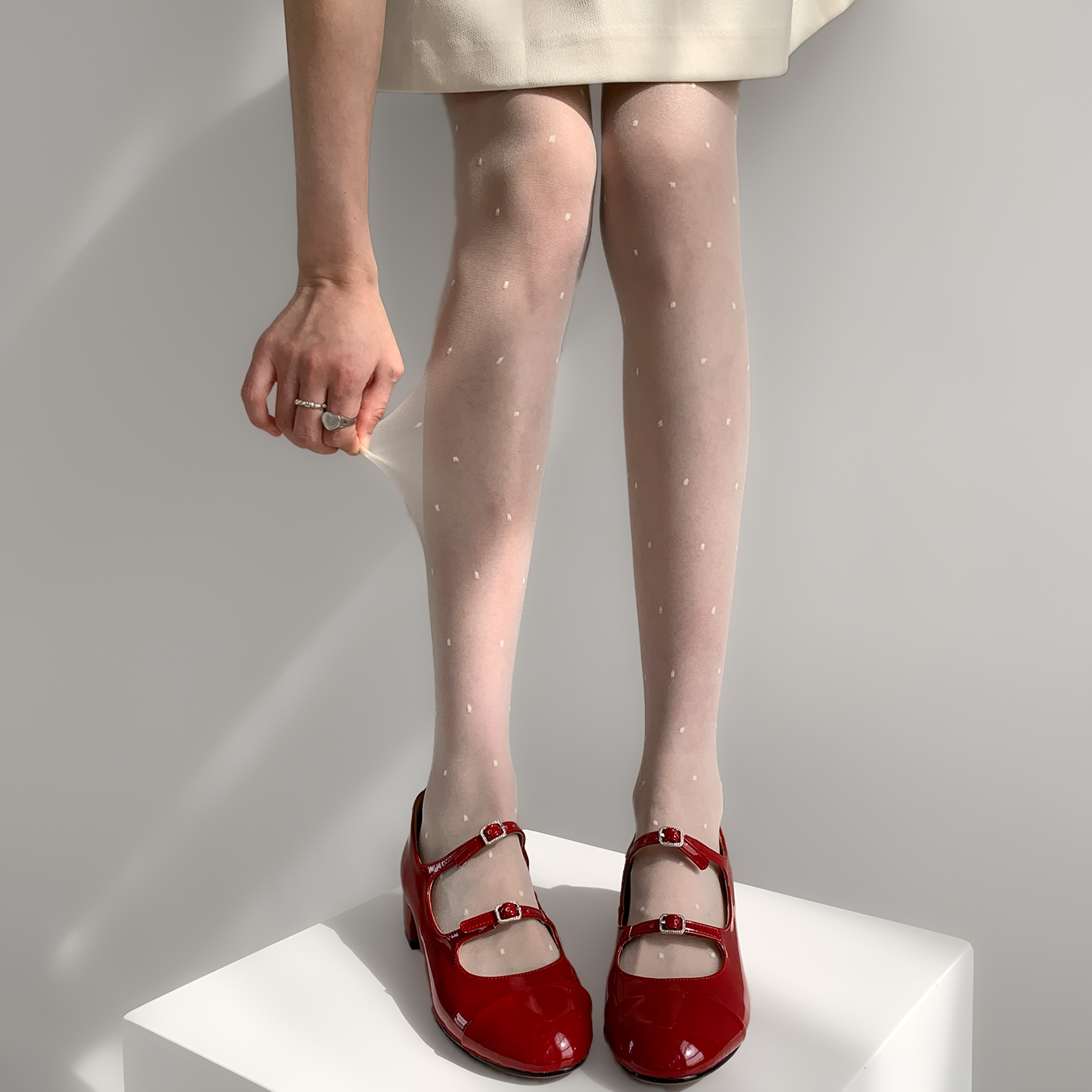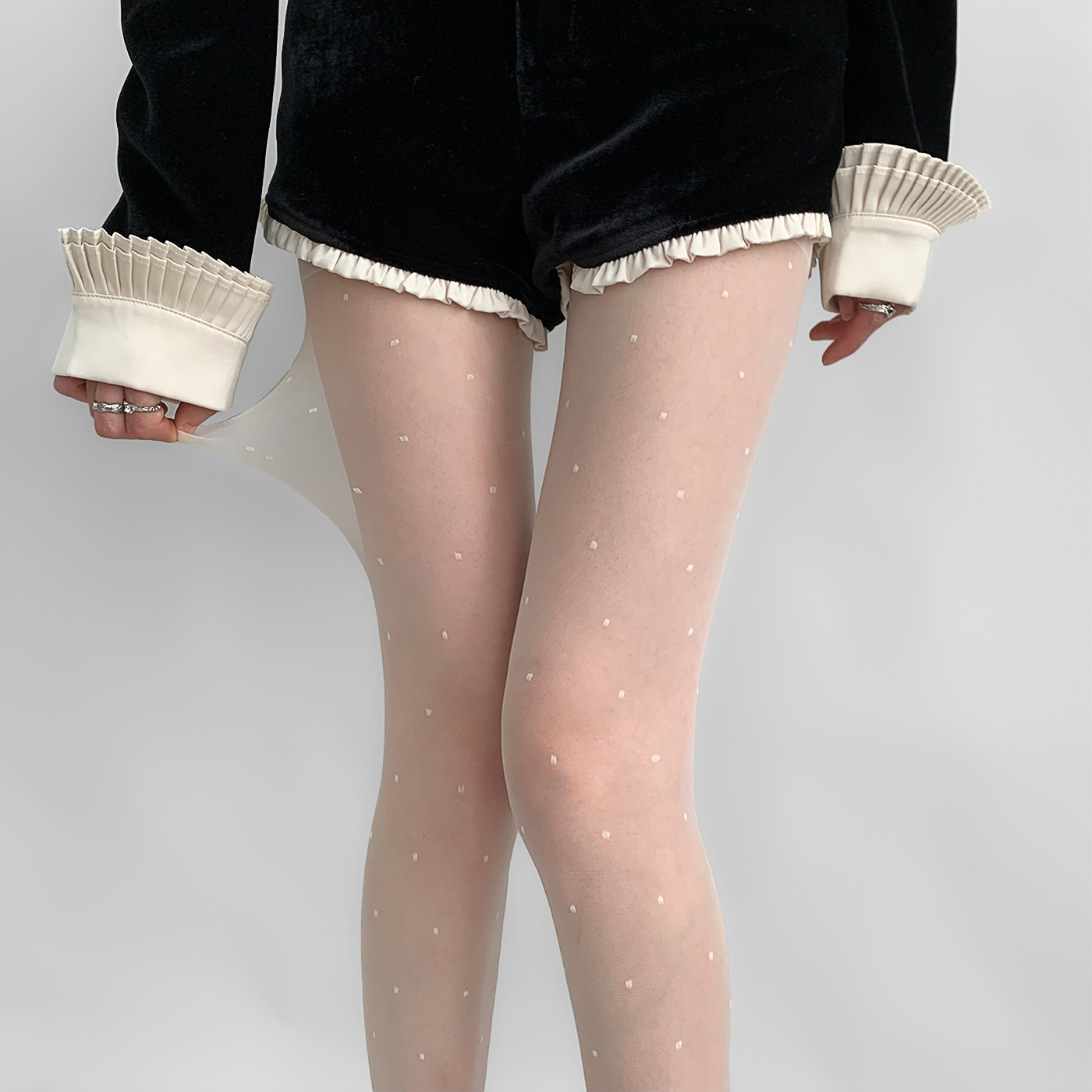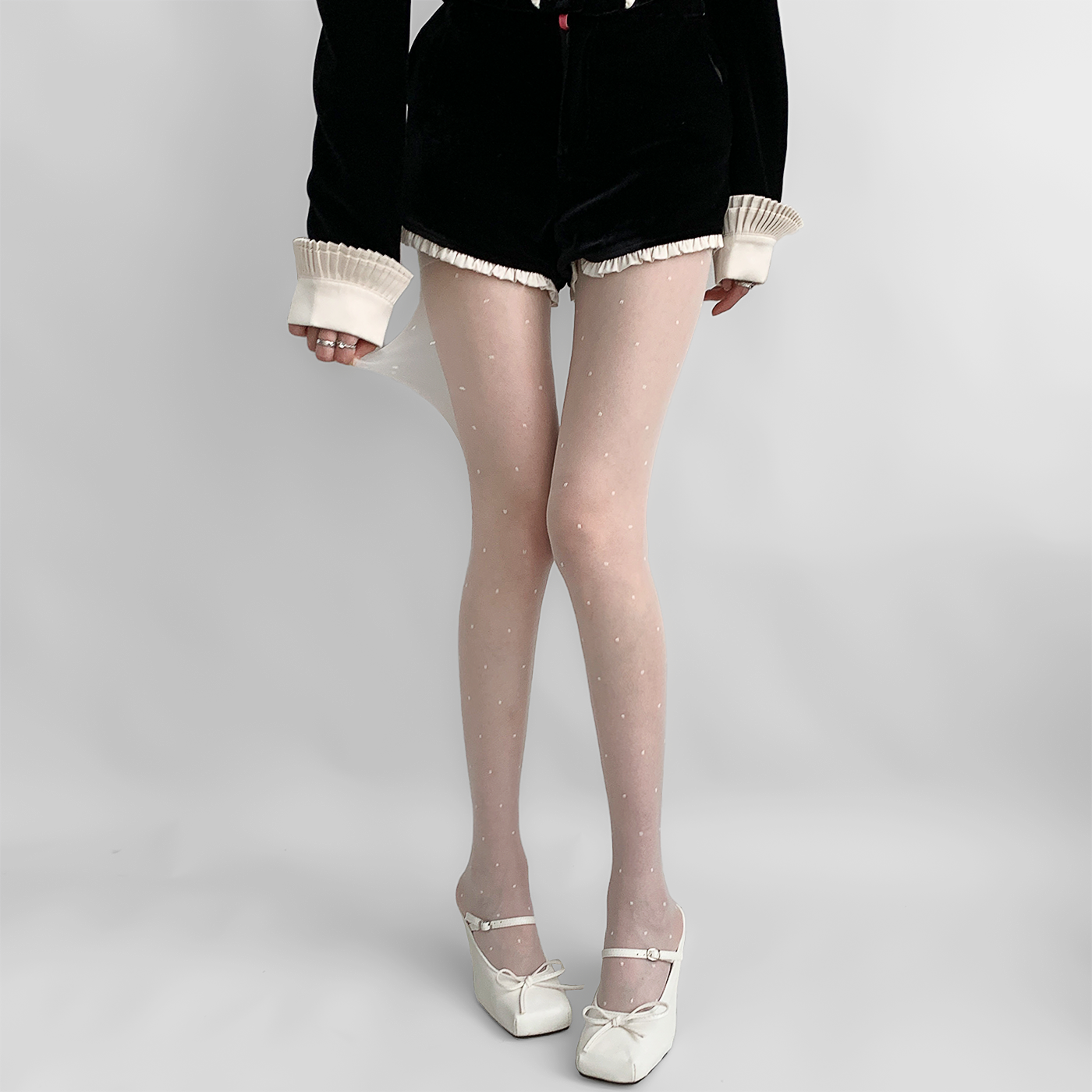 夜間教習室波點絲襪白色防勾絲連褲襪子女夏季薄款加長白絲純欲風