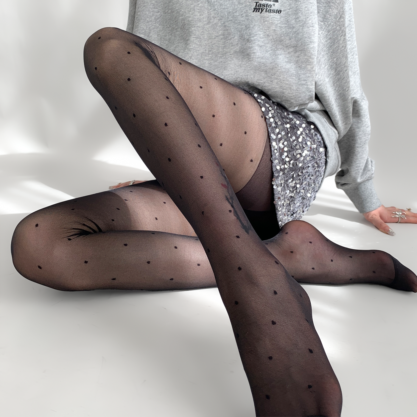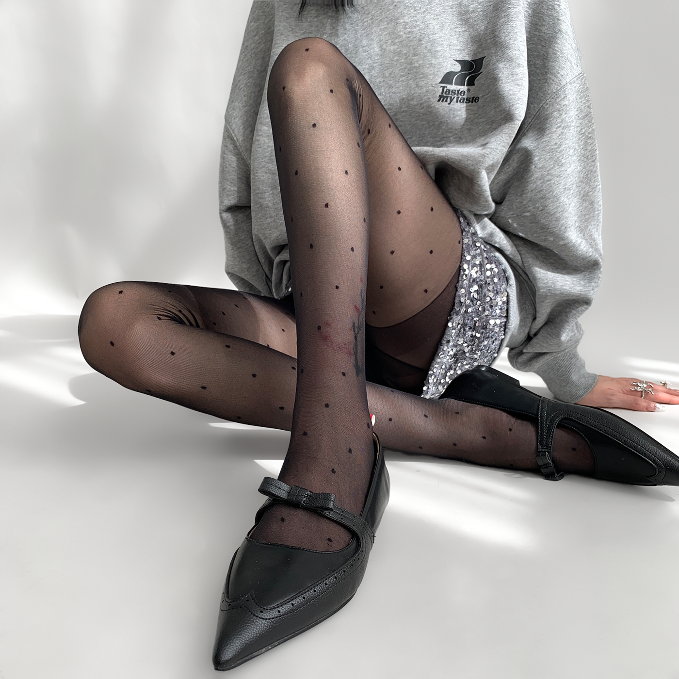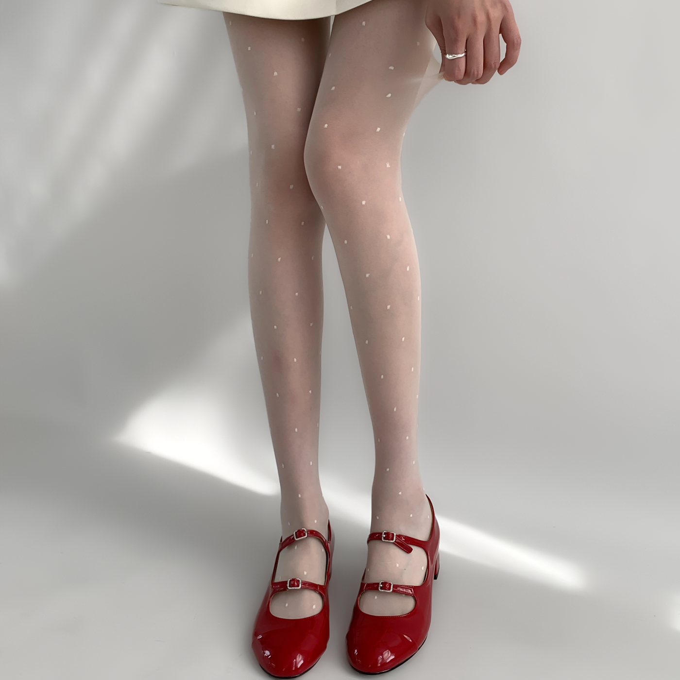 夜間教習室波點絲襪白色防勾絲連褲襪子女夏季薄款加長白絲純欲風