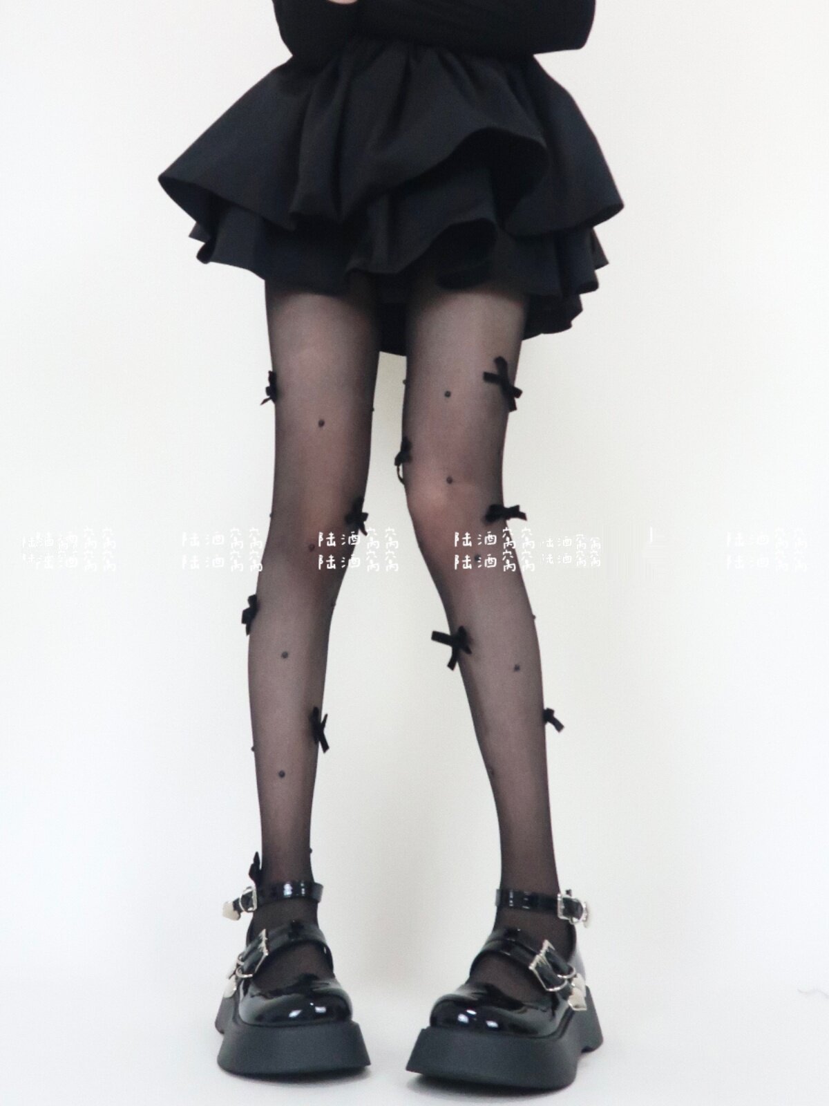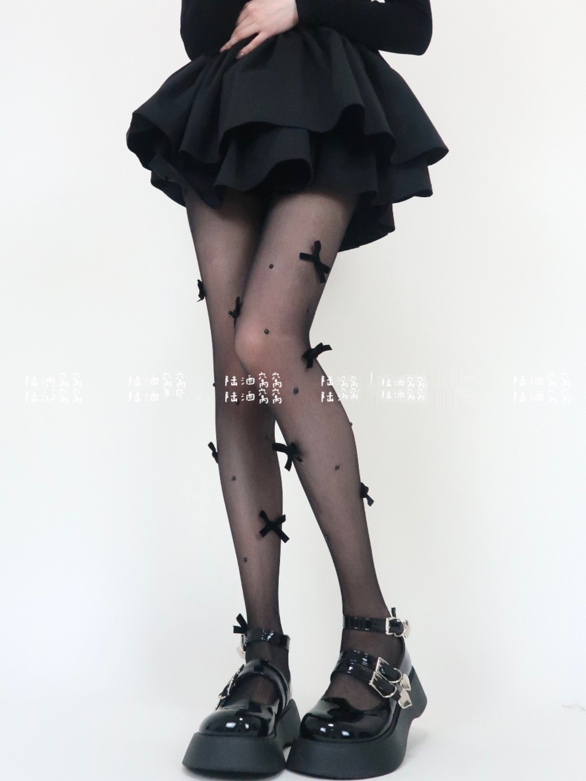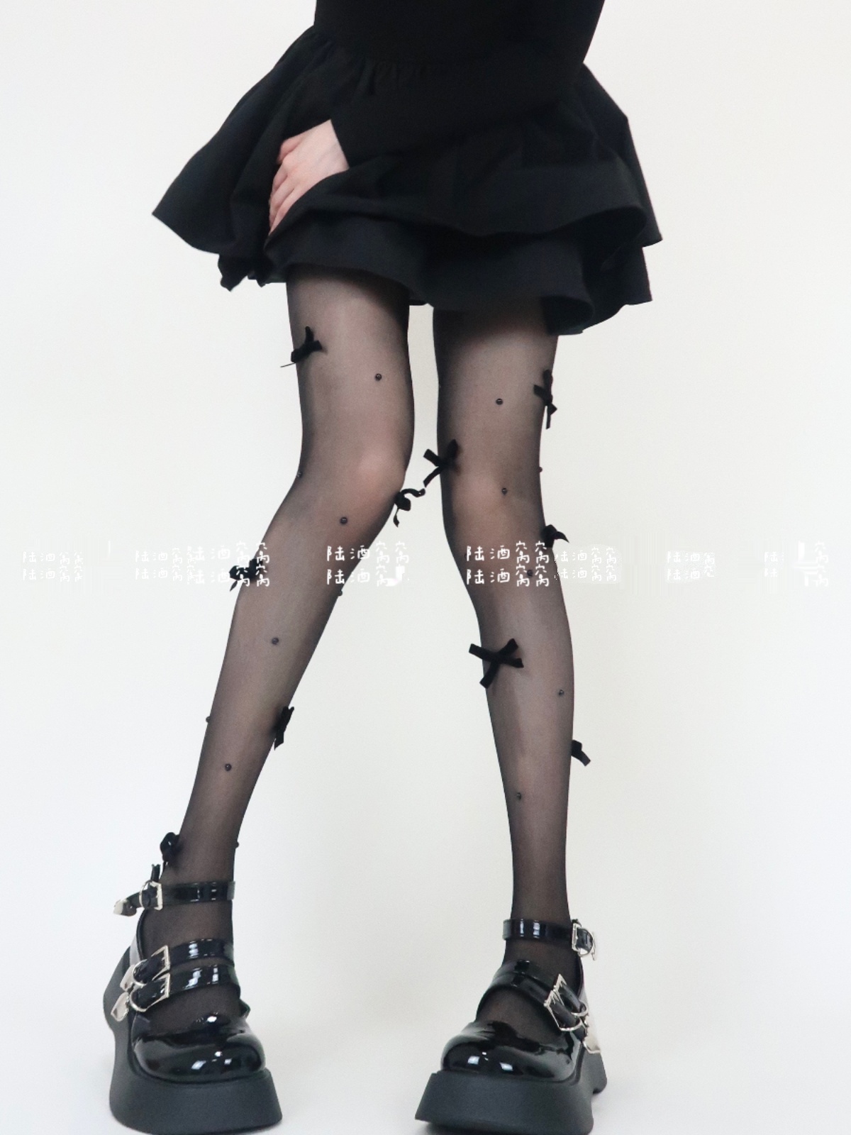 陸酒窩窩 春夏新品黑絲少女心絲絨蝴蝶結珍珠任意剪連體襪女