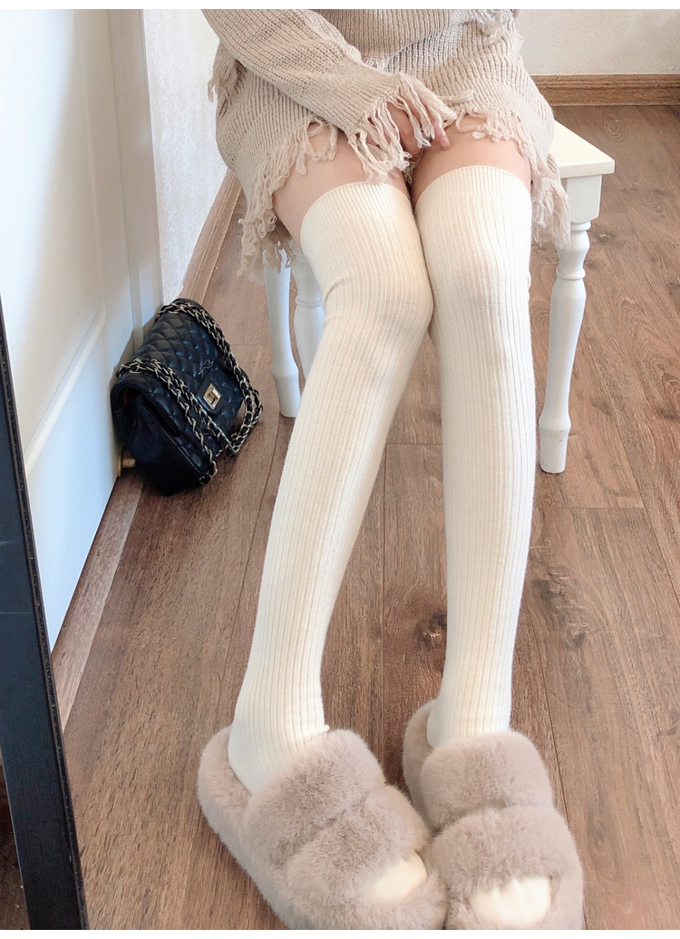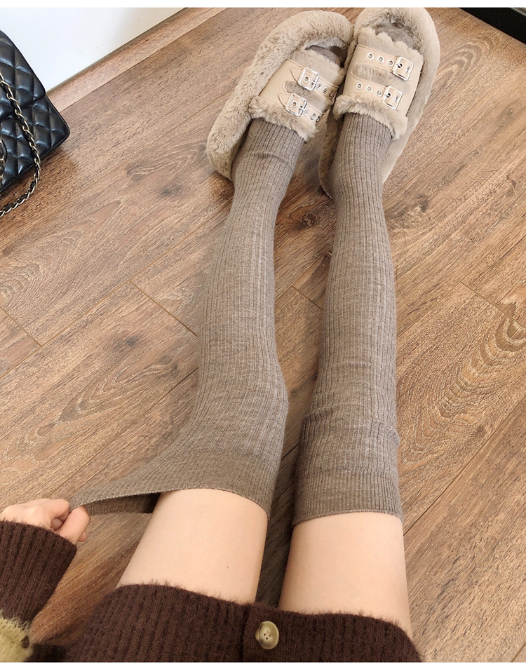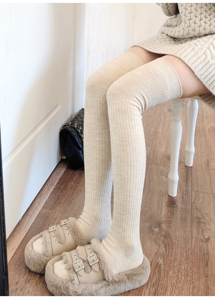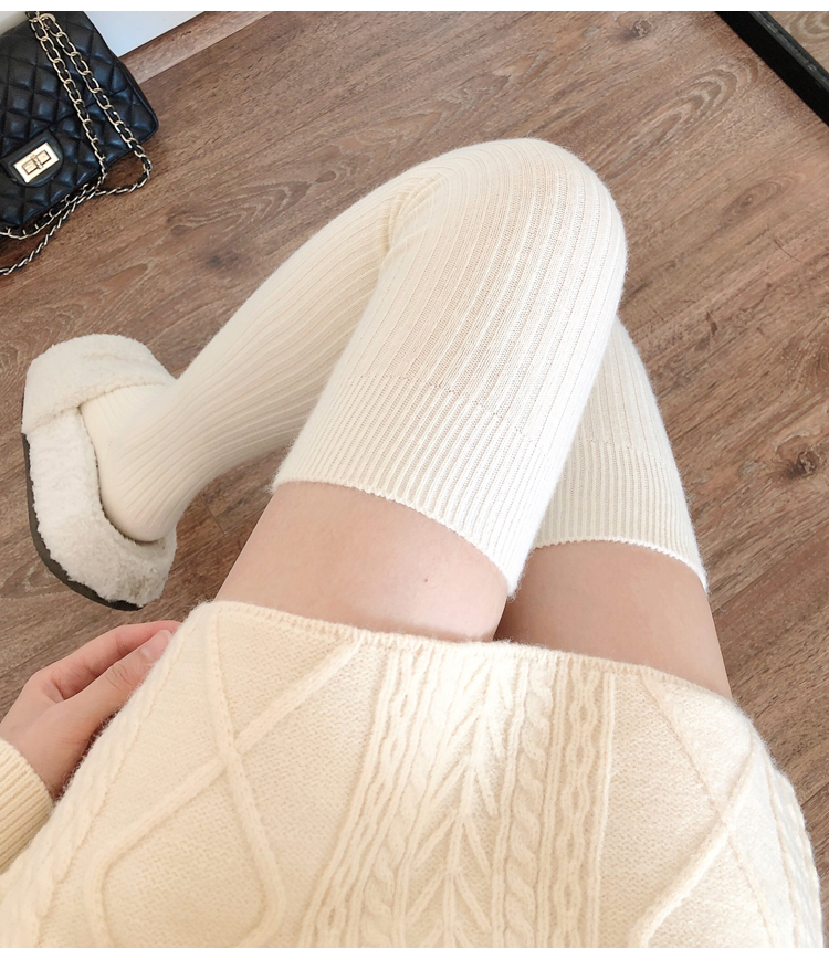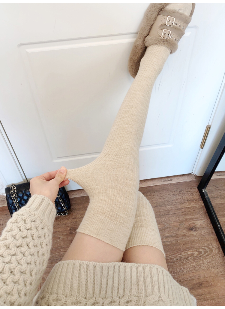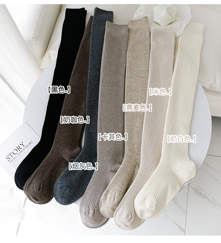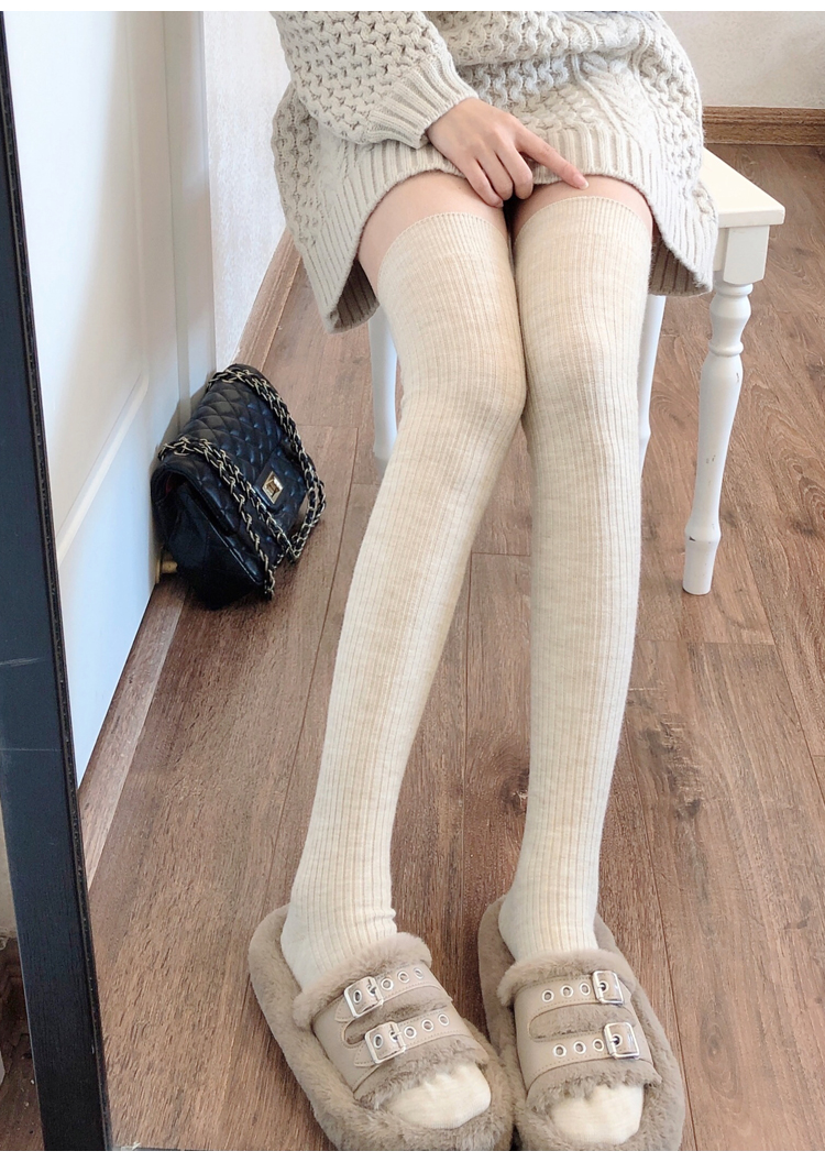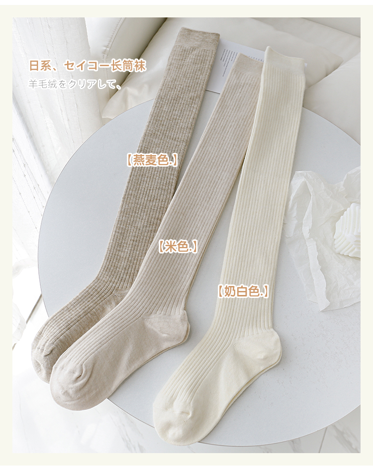 秋冬加絨米白色過膝襪女加厚保暖燕麥色羊毛大腿襪子咖色長筒靴襪