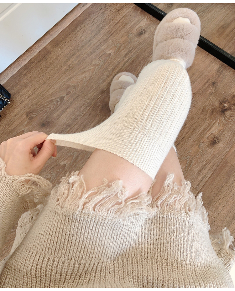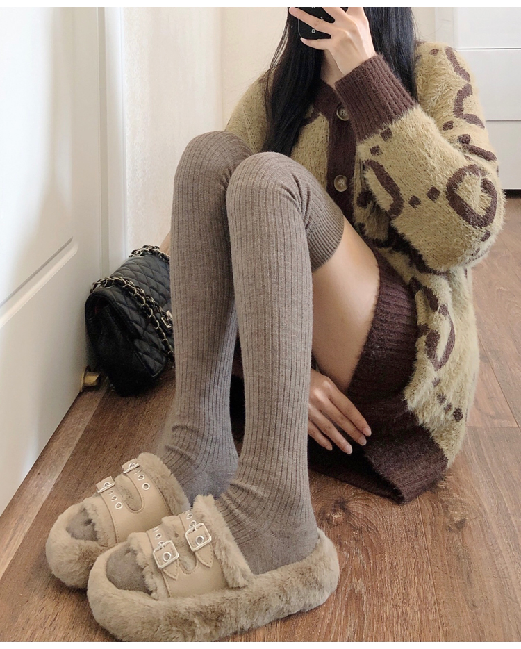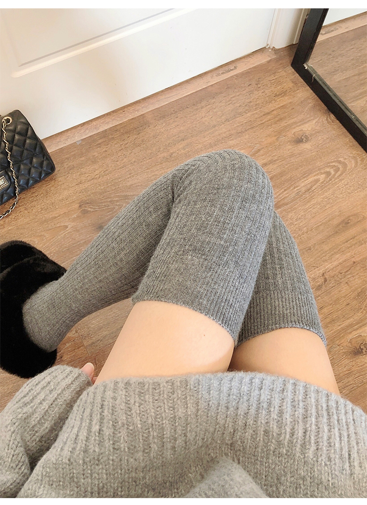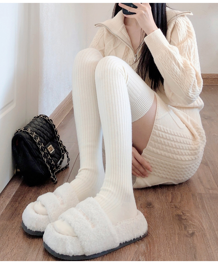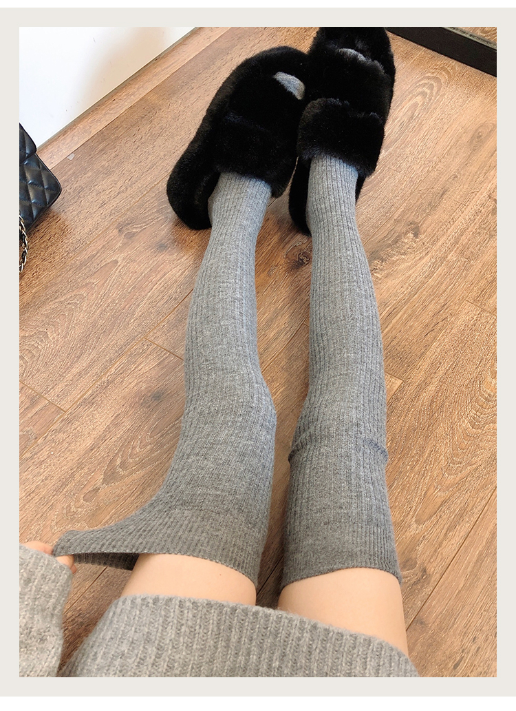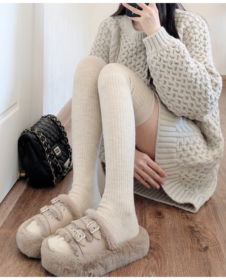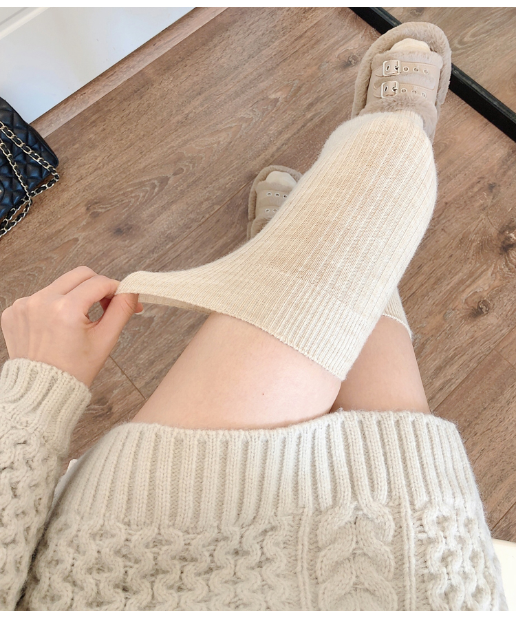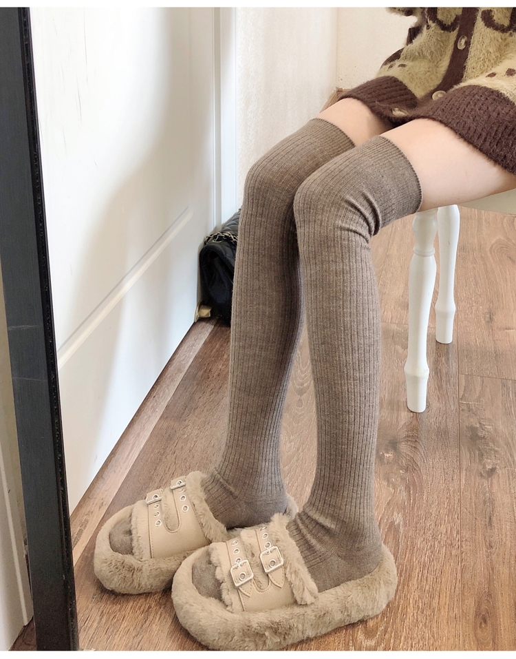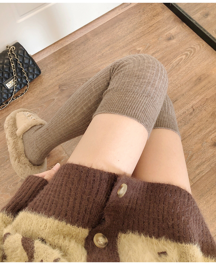 秋冬加絨米白色過膝襪女加厚保暖燕麥色羊毛大腿襪子咖色長筒靴襪