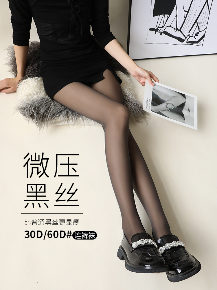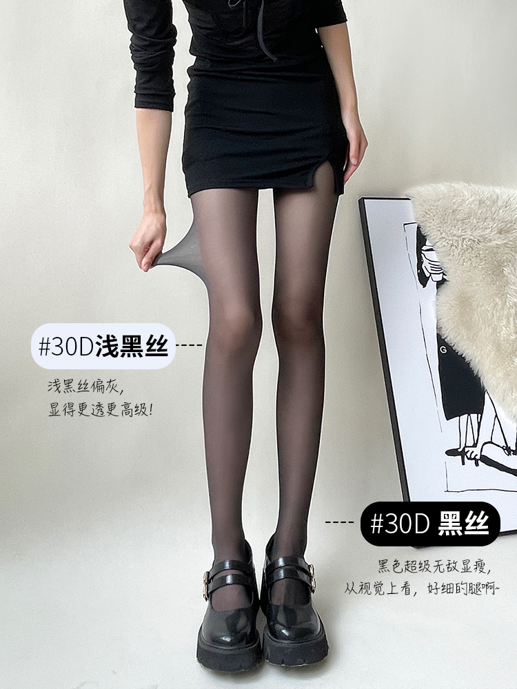 黑絲微壓力顯瘦腿黑絲襪女性感透肉薄款打底褲JK春秋季30D連褲襪