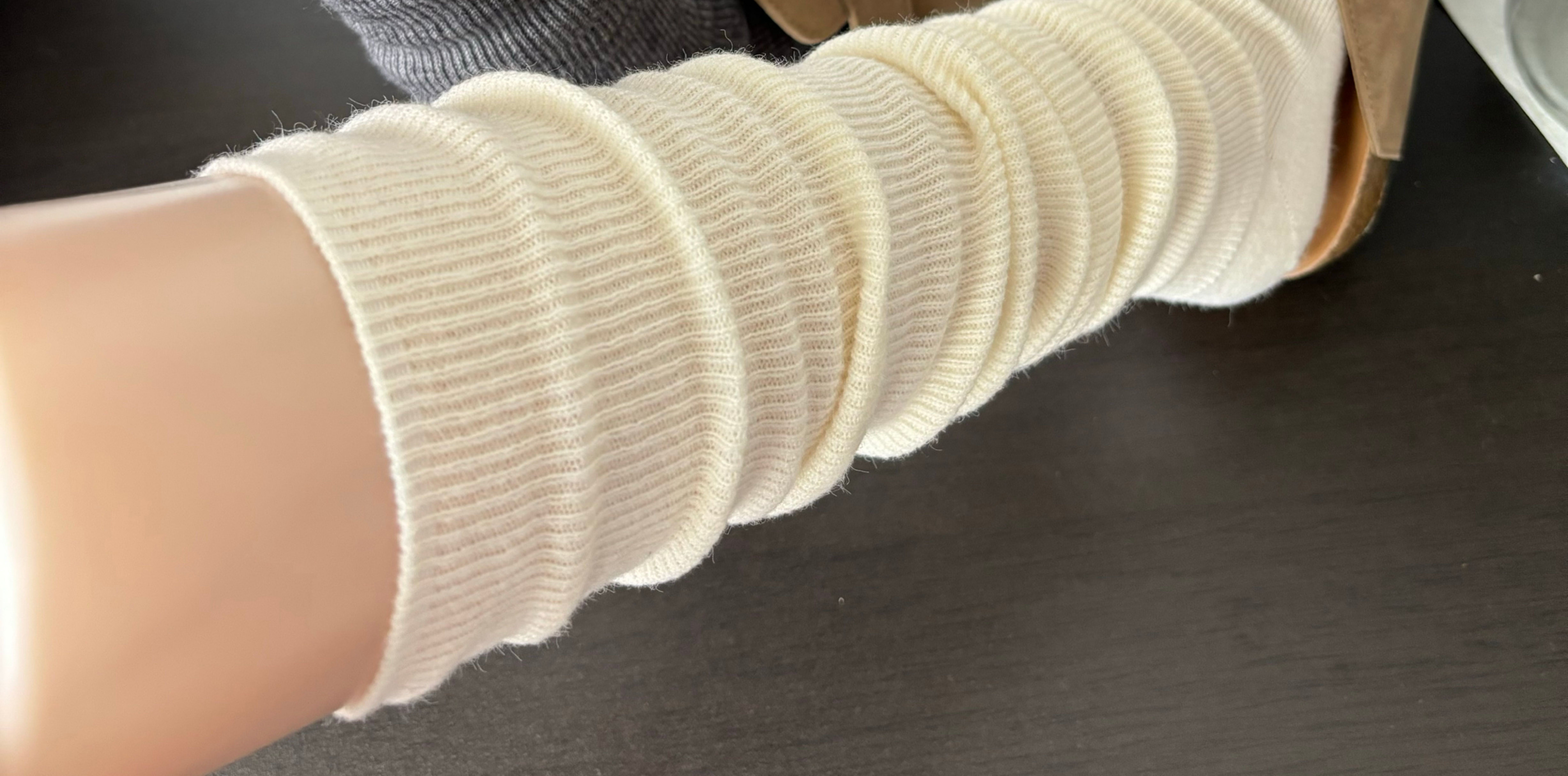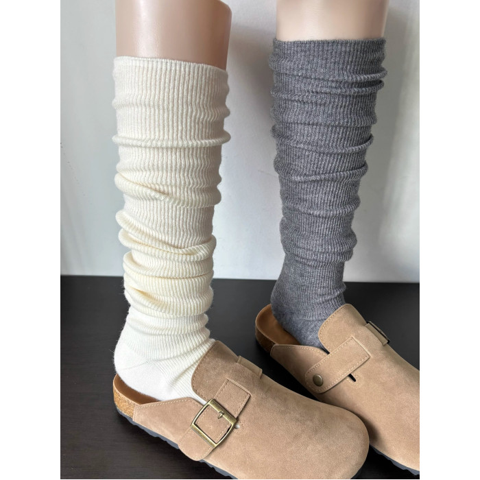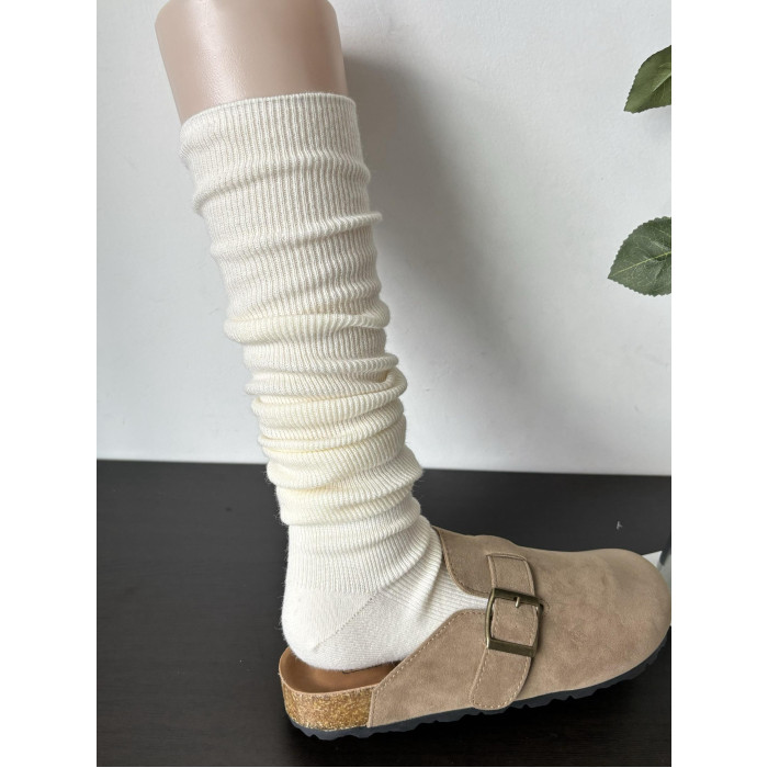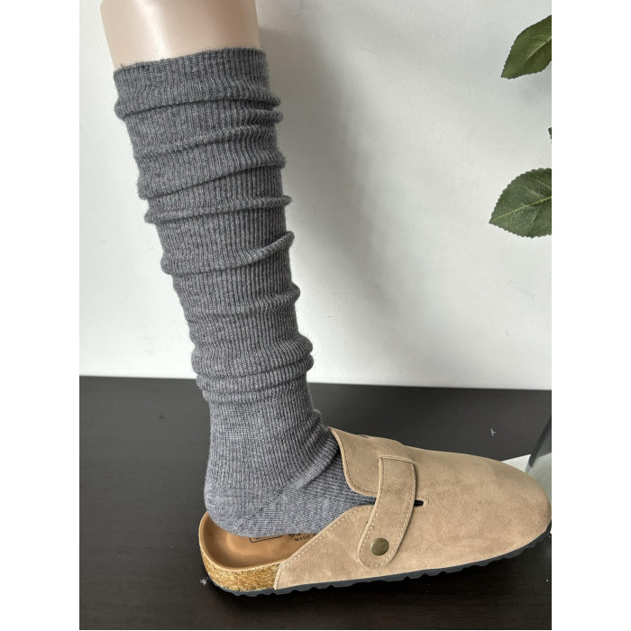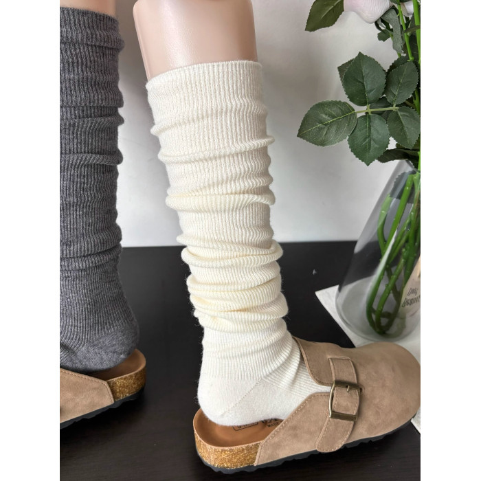 復古奶白色羊毛過膝長筒襪女秋冬季質感百搭菸灰色竪紋堆曡小腿襪