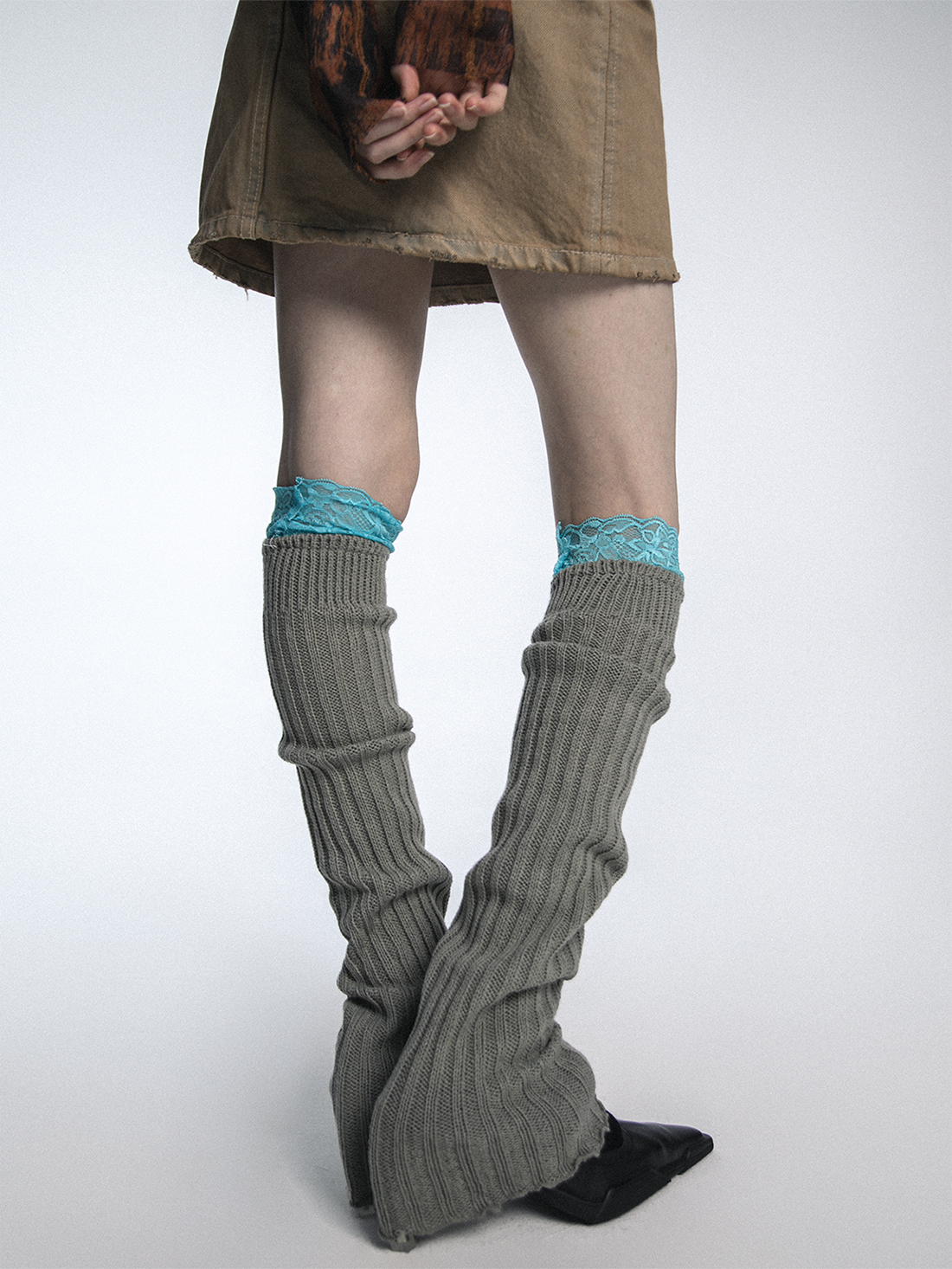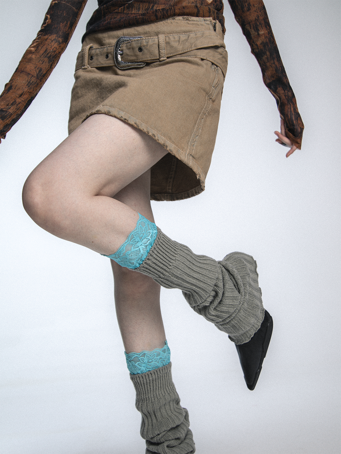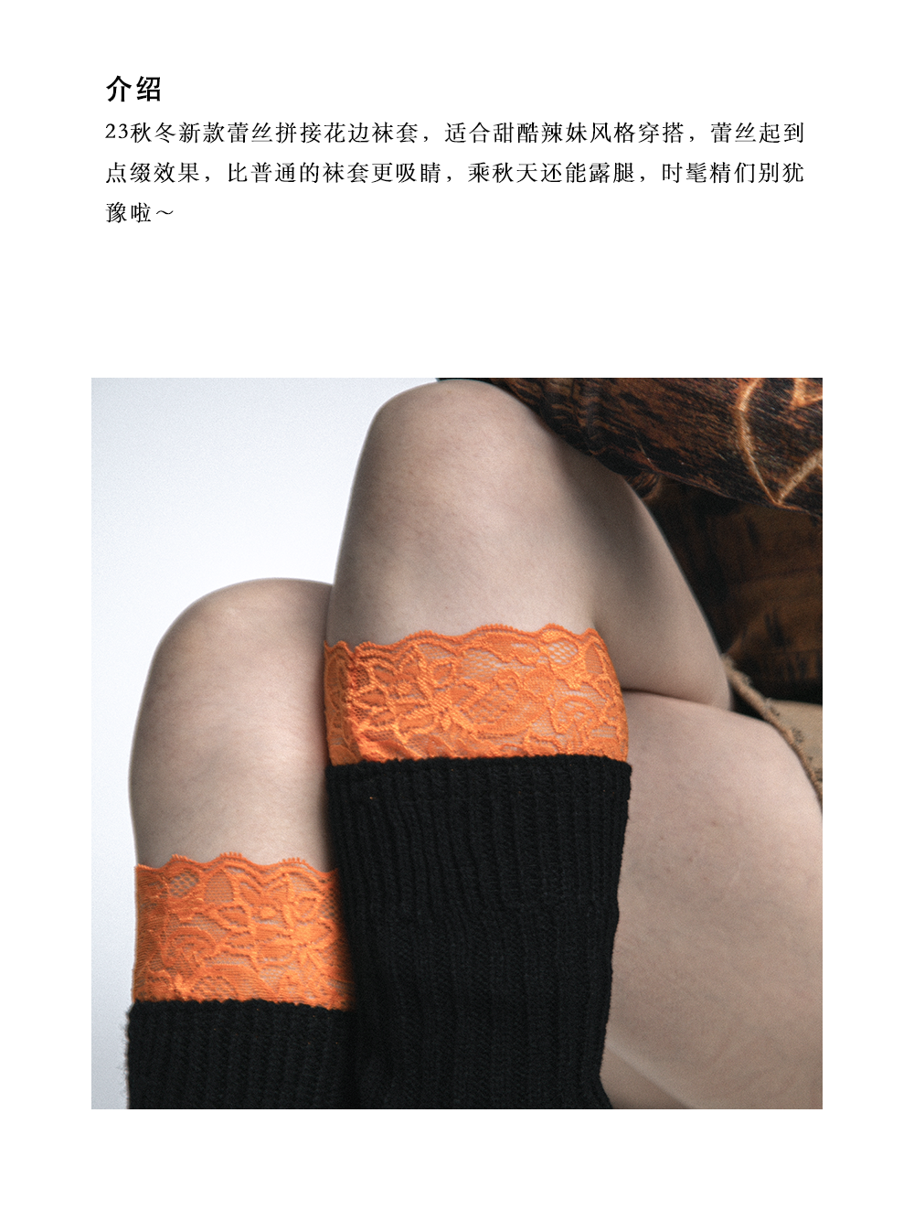 SS2L秋冬甜酷辣妹蕾絲花邊拼接針織木耳邊襪套腿套女堆堆襪ins潮