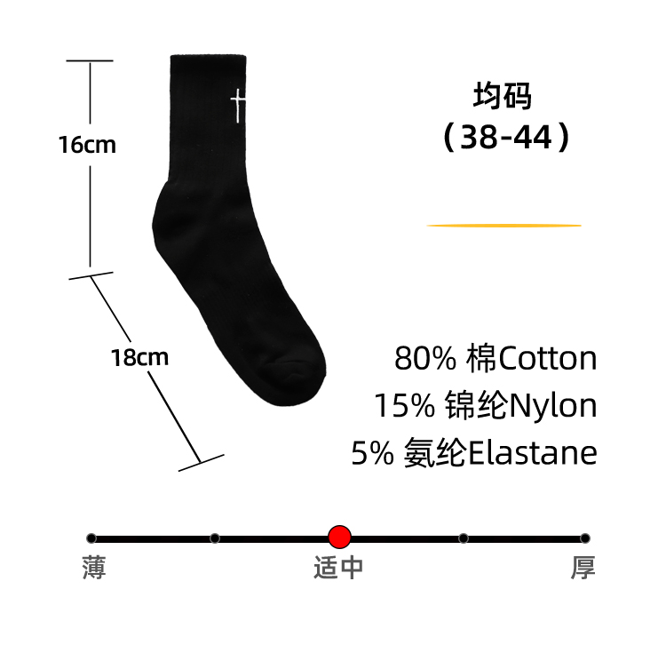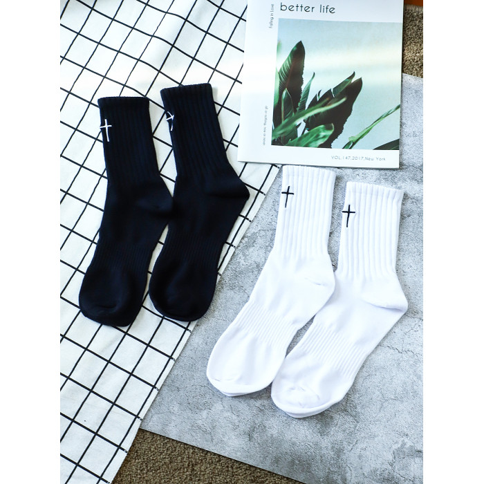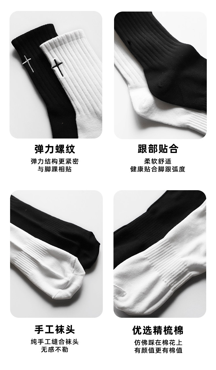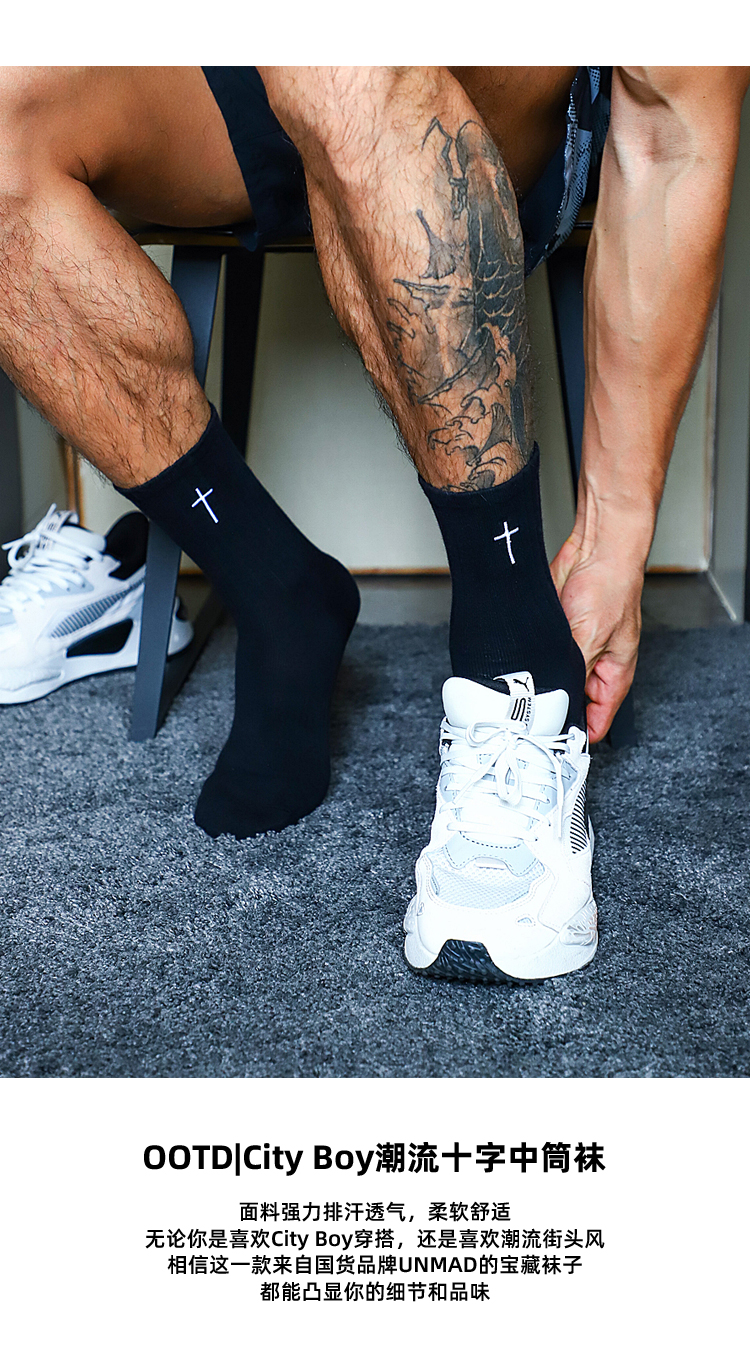 3雙裝巖也男士純棉十字中筒襪子男長襪嘻哈街頭夏季吸汗透氣UNMAD