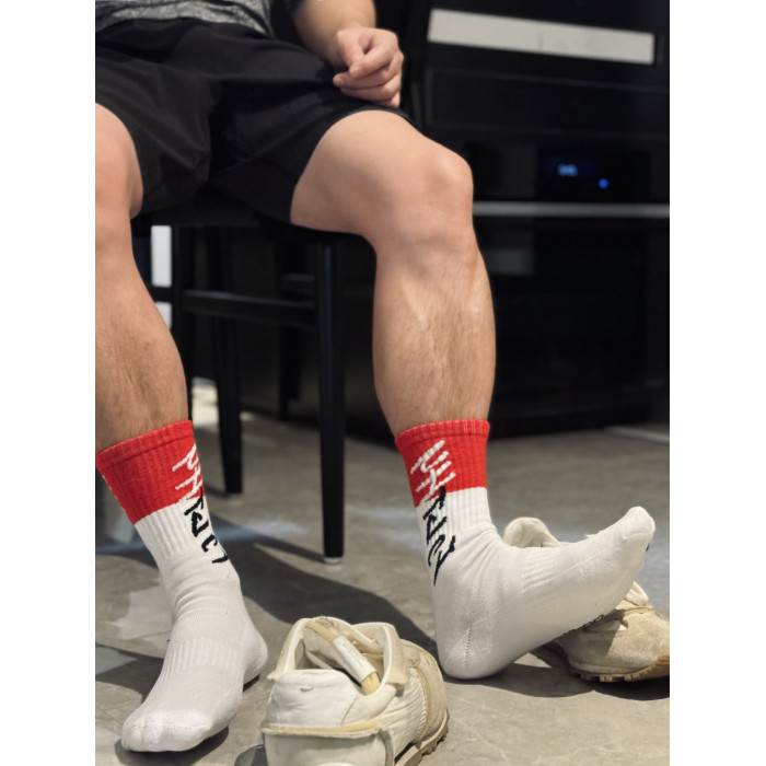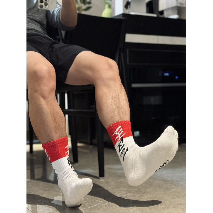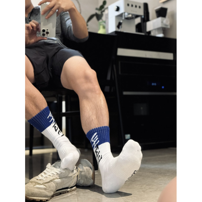 D.M男士襪子 字母運動籃球襪毛圈加厚吸汗白襪拼色中筒襪街拍