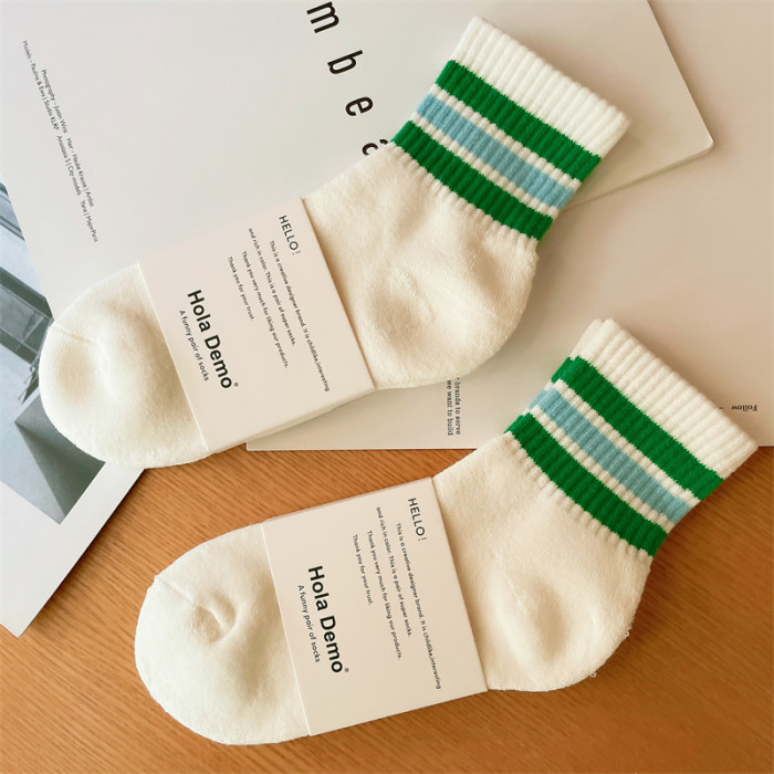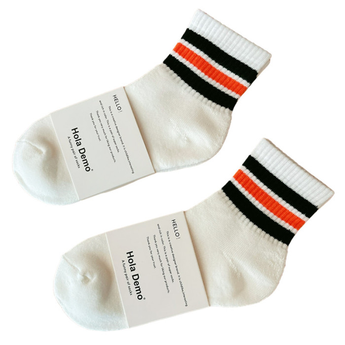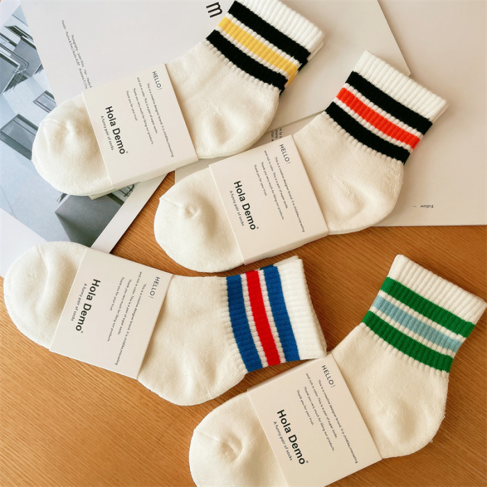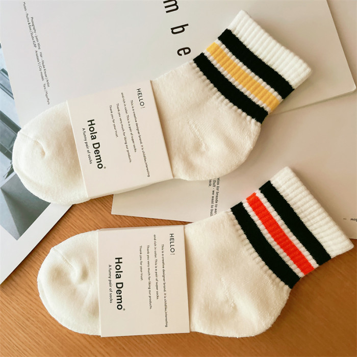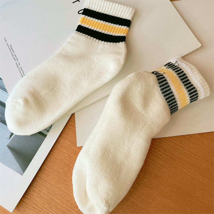 4雙 襪子男純棉男士中短筒襪潮ins條紋防臭毛巾底加厚白色運動襪
