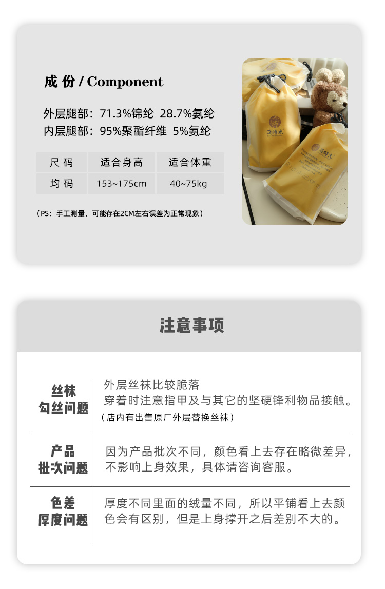 淡時光肉色光腿神器女春秋裸感雙層薄絨加厚連褲襪超自然踩腳絲襪