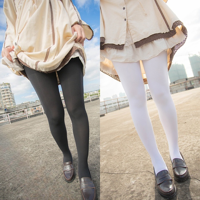 日系天鵞絨連褲襪白絲襪春秋冬300D中厚款打底褲襪黑色白色長襪