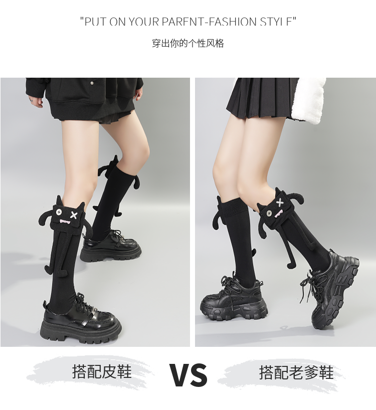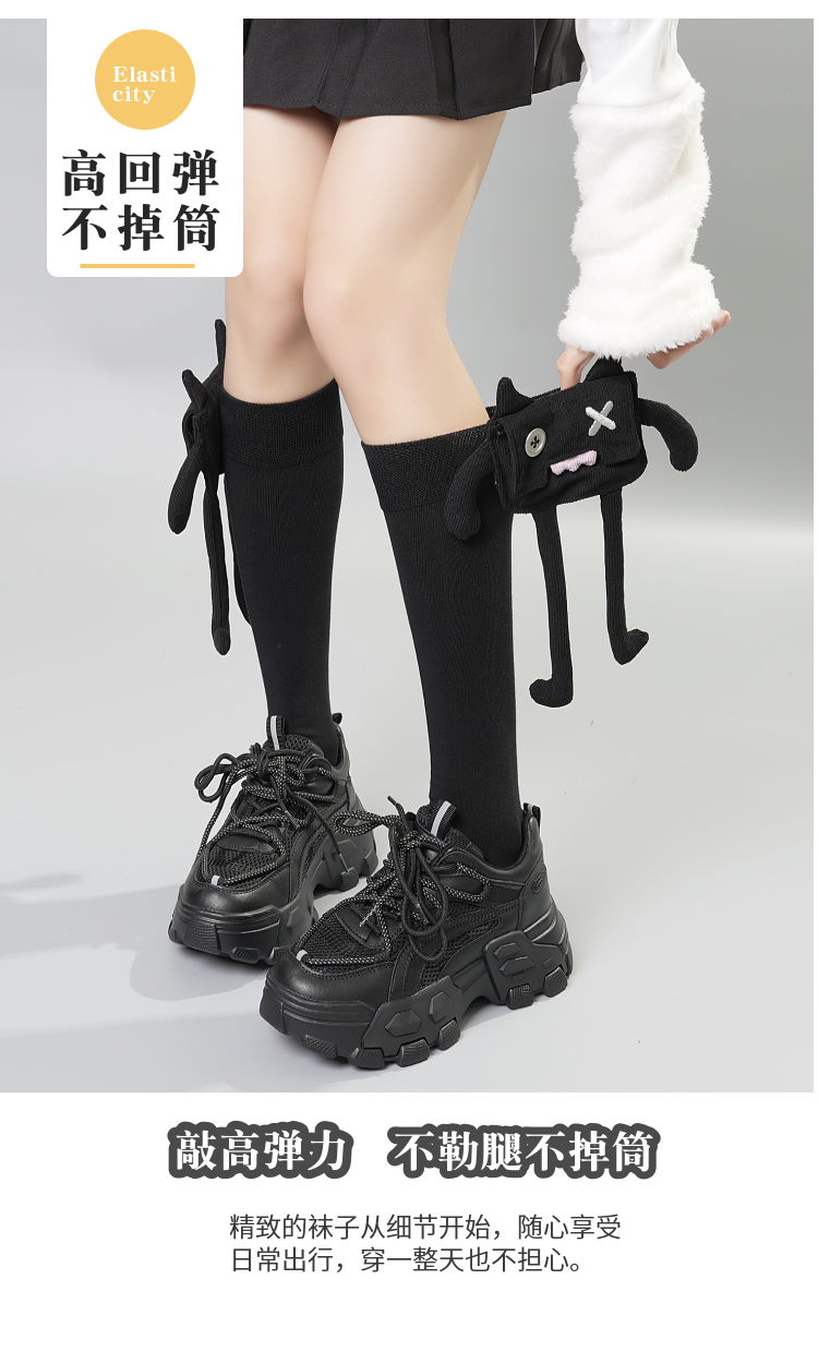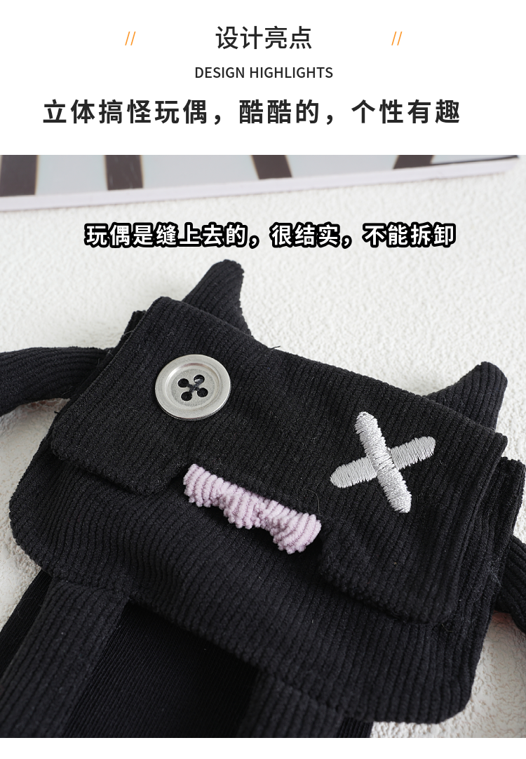 春季搞怪設計感立體玩偶個性小腿襪女中長筒純棉辣妹哥特颯酷JK襪
