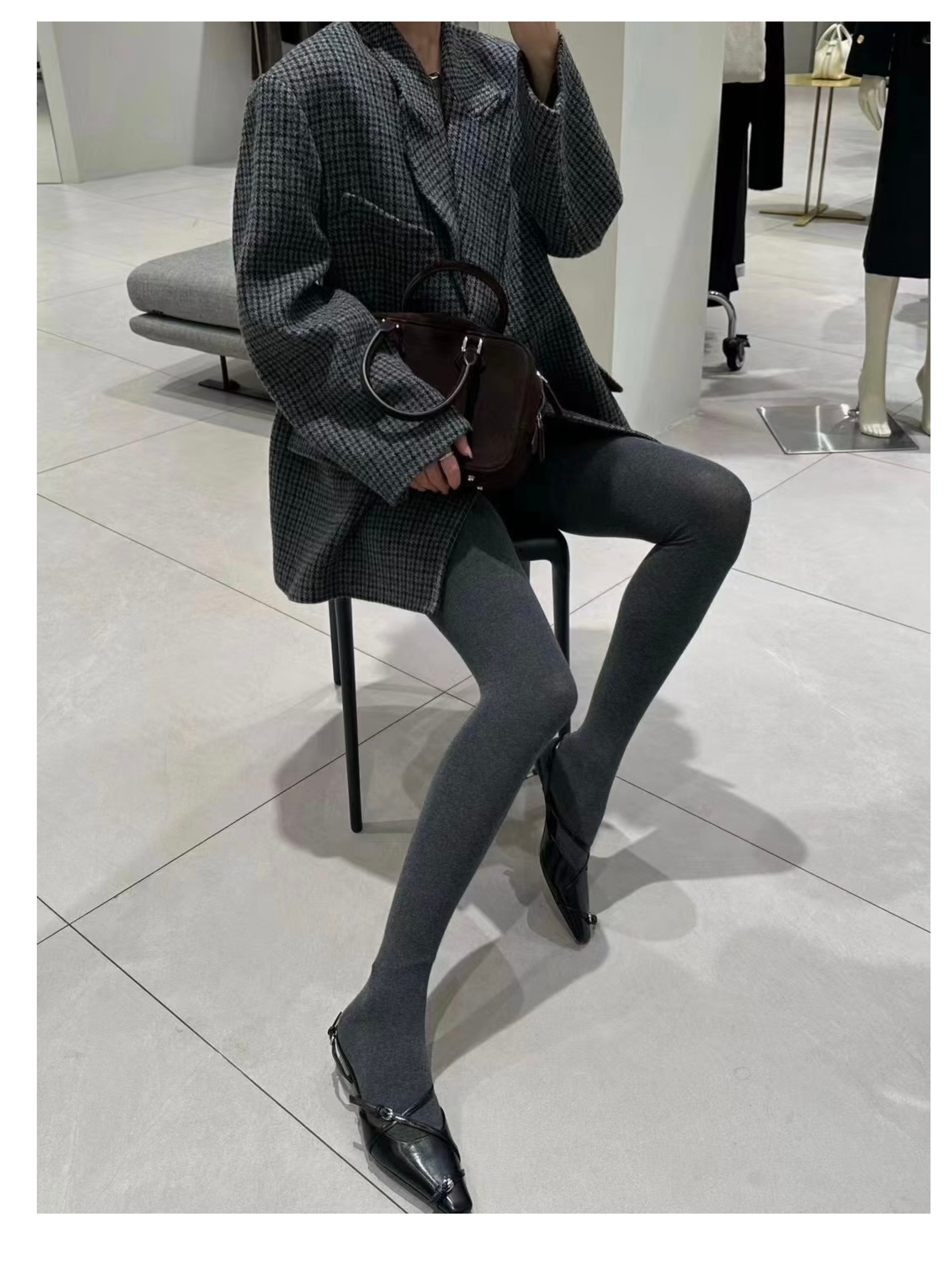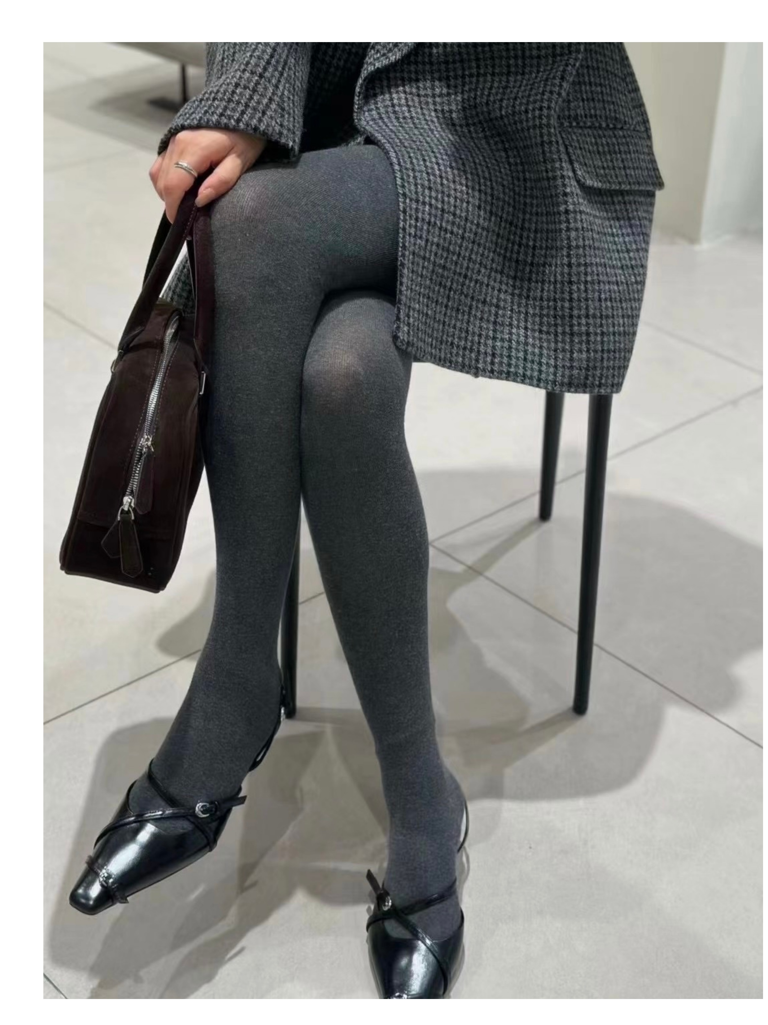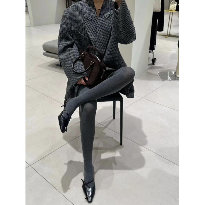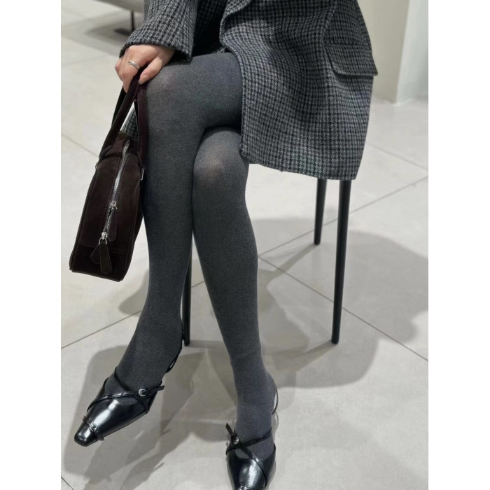 顯瘦高級深灰色~薄款不加絨 緊身款純棉日系竪條紋打底連褲襪春秋