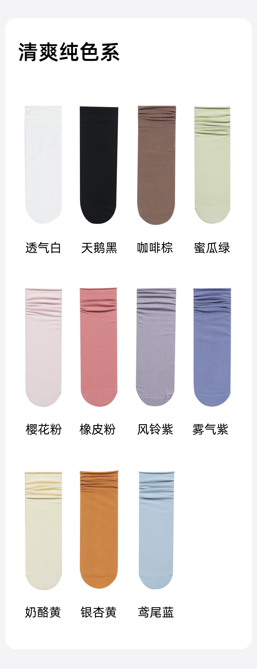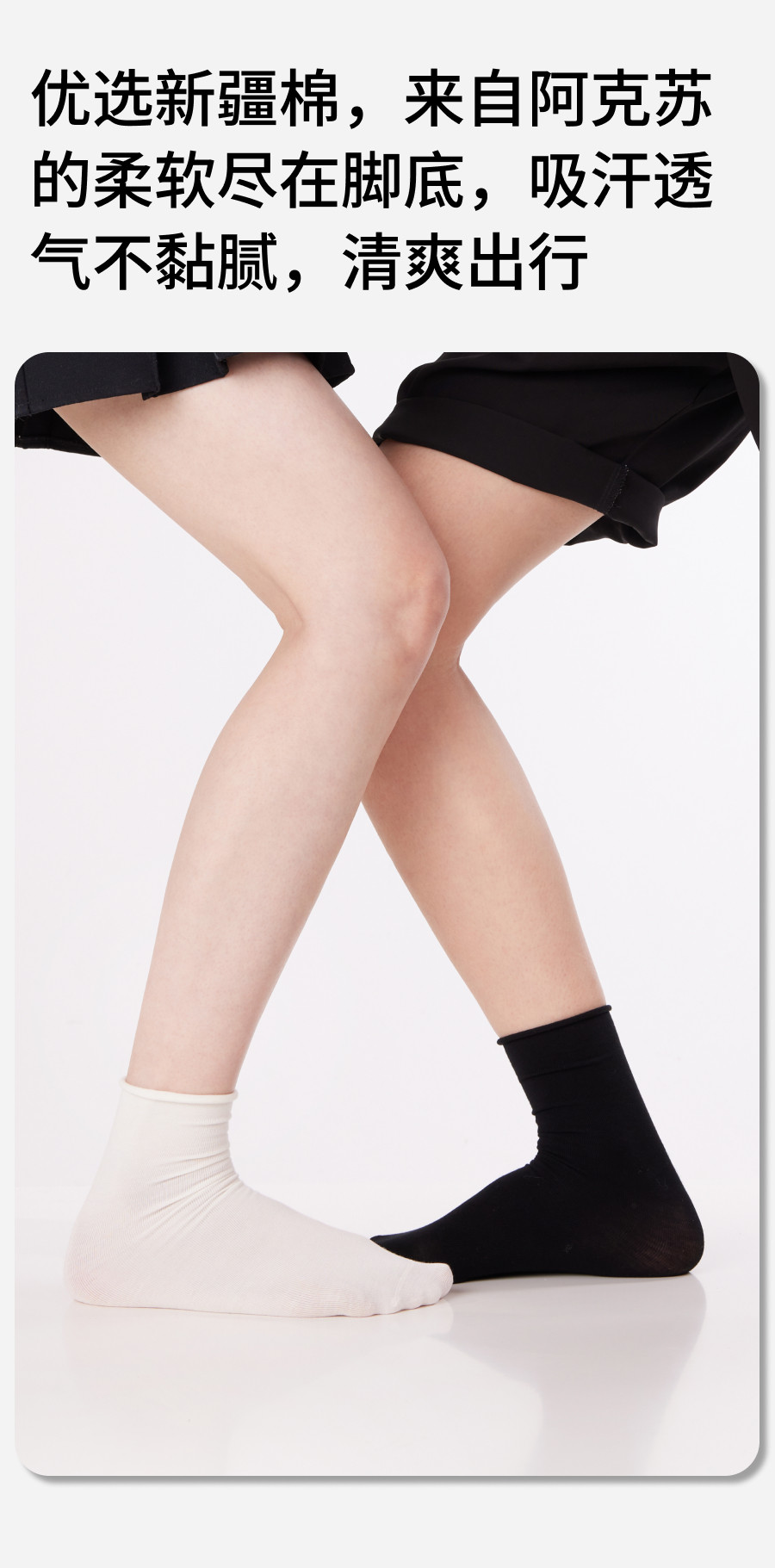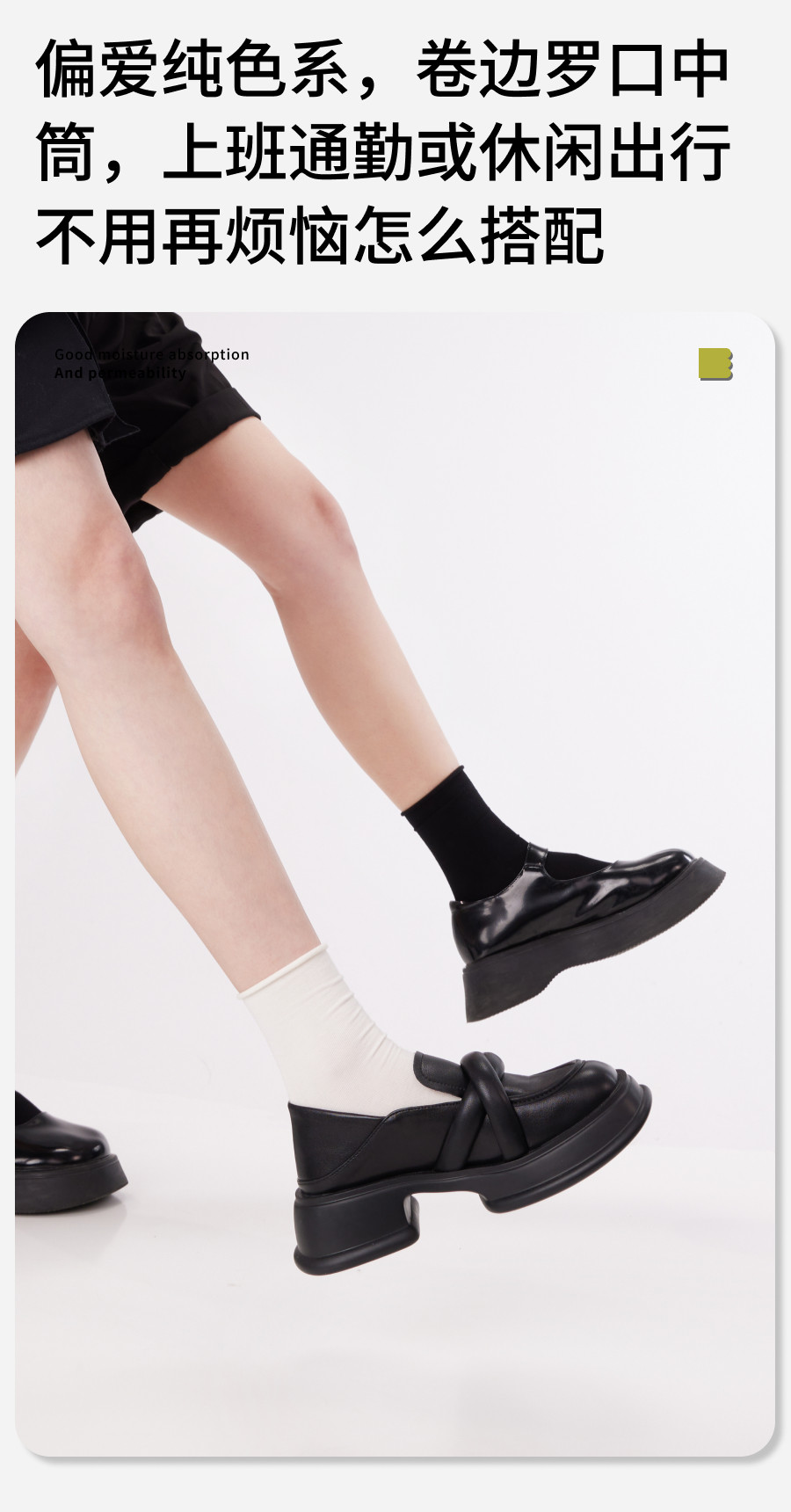 襪子女夏薄款中筒襪配小皮鞋無骨黑白色涼感竹纖維抗菌堆堆棉夏季