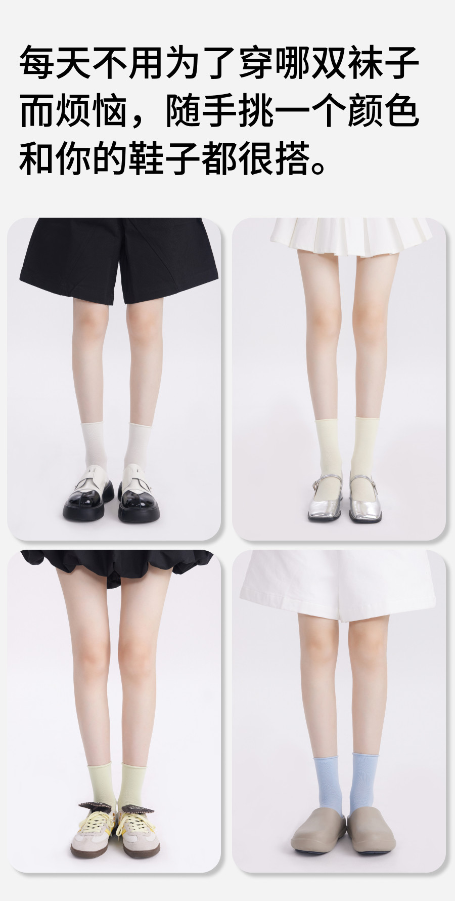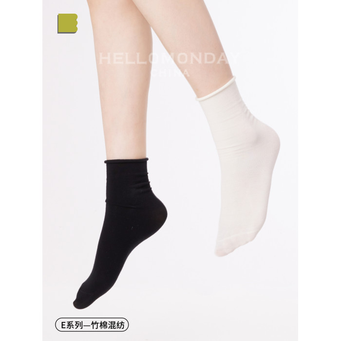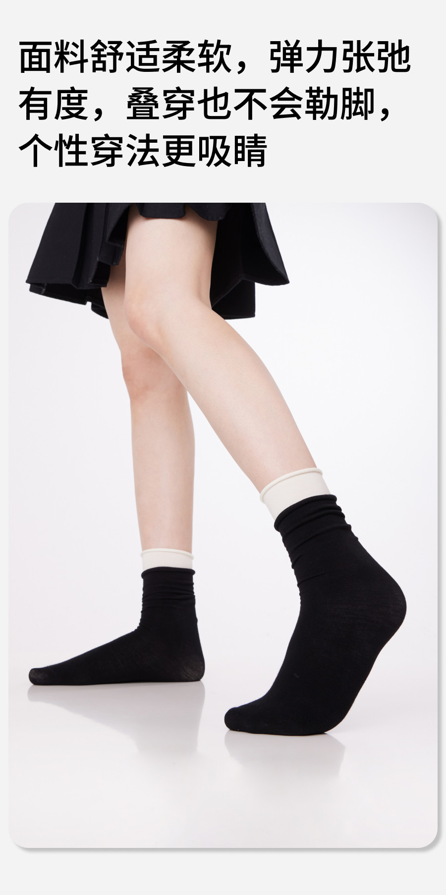 襪子女夏薄款中筒襪配小皮鞋無骨黑白色涼感竹纖維抗菌堆堆棉夏季
