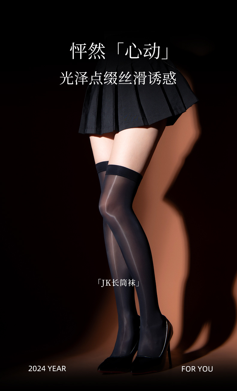jk絲襪長筒過膝襪油亮白絲性感超薄馬油透肉夏季穿搭黑絲高筒襪子