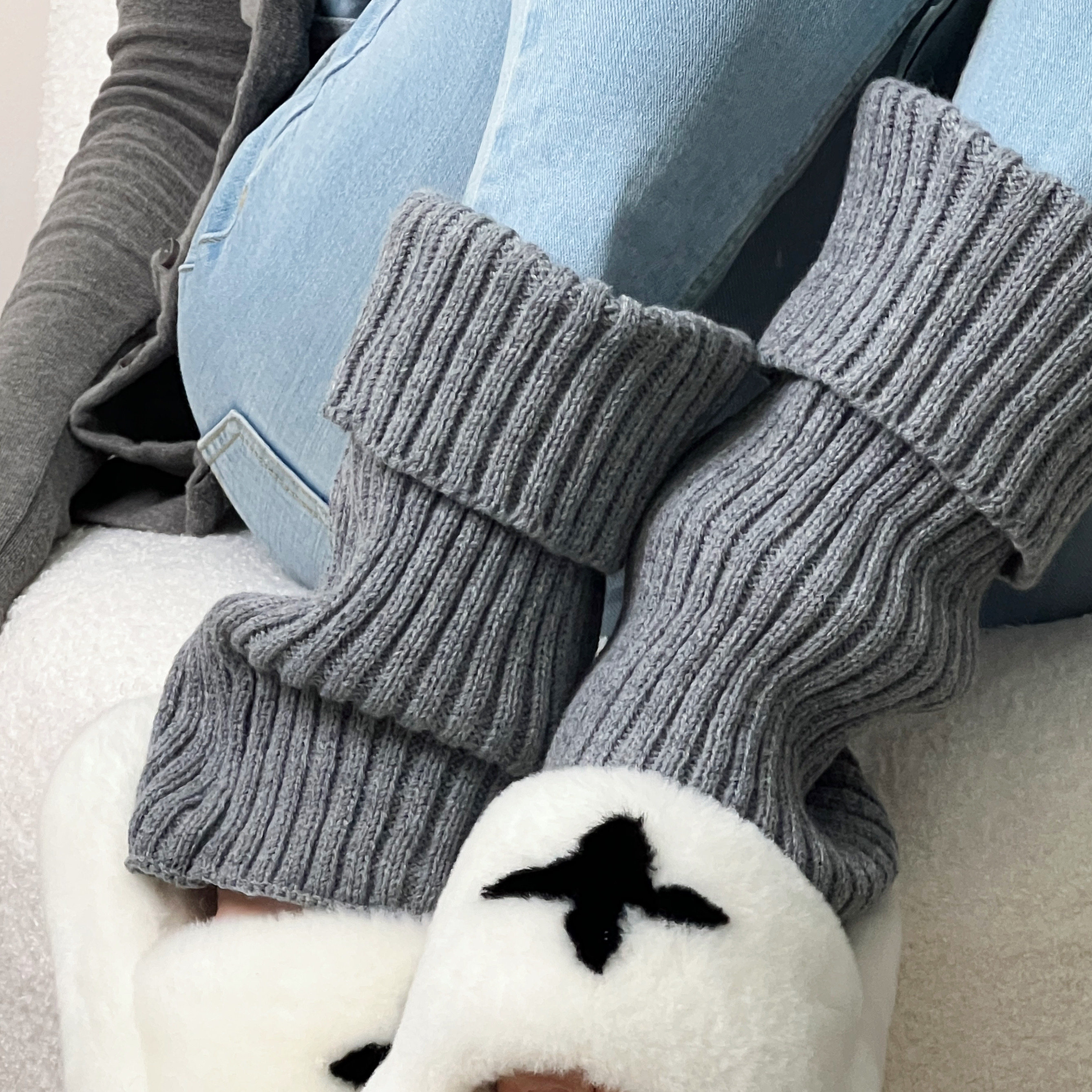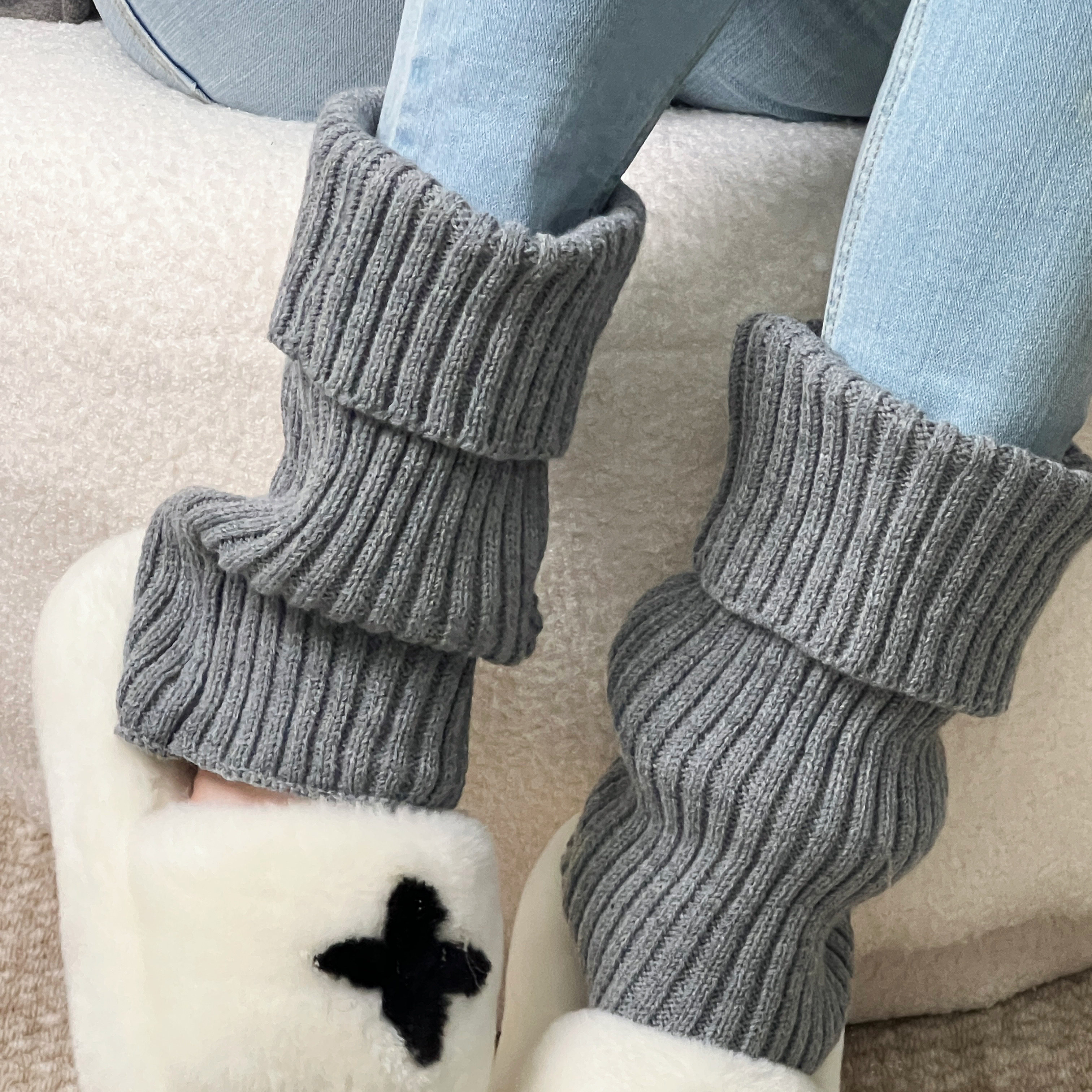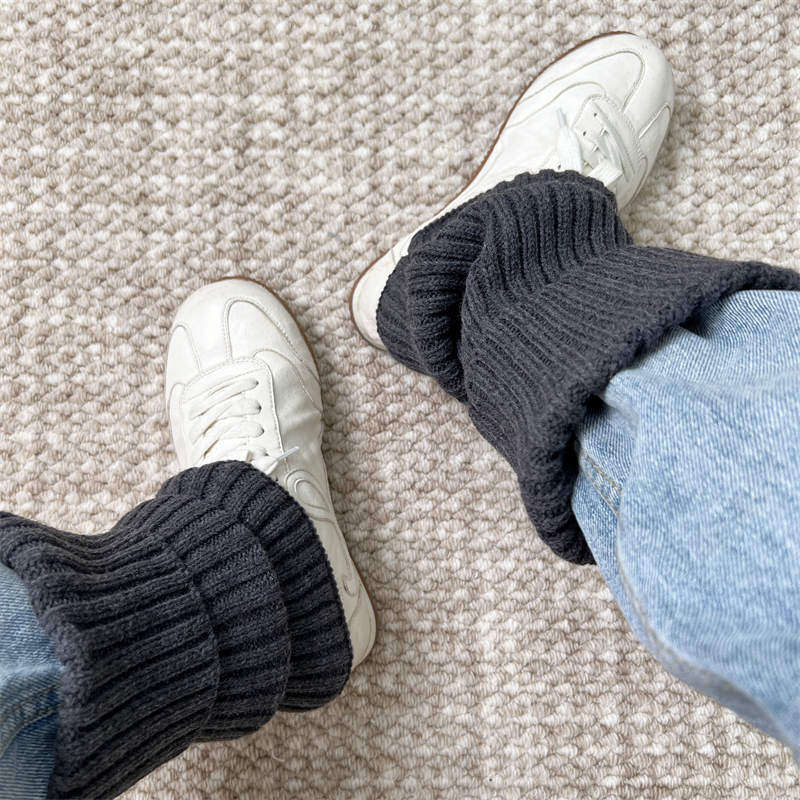BON 韓國東大門老板娘同款灰襪套辣妹寬松純色腿套日系少女堆堆襪