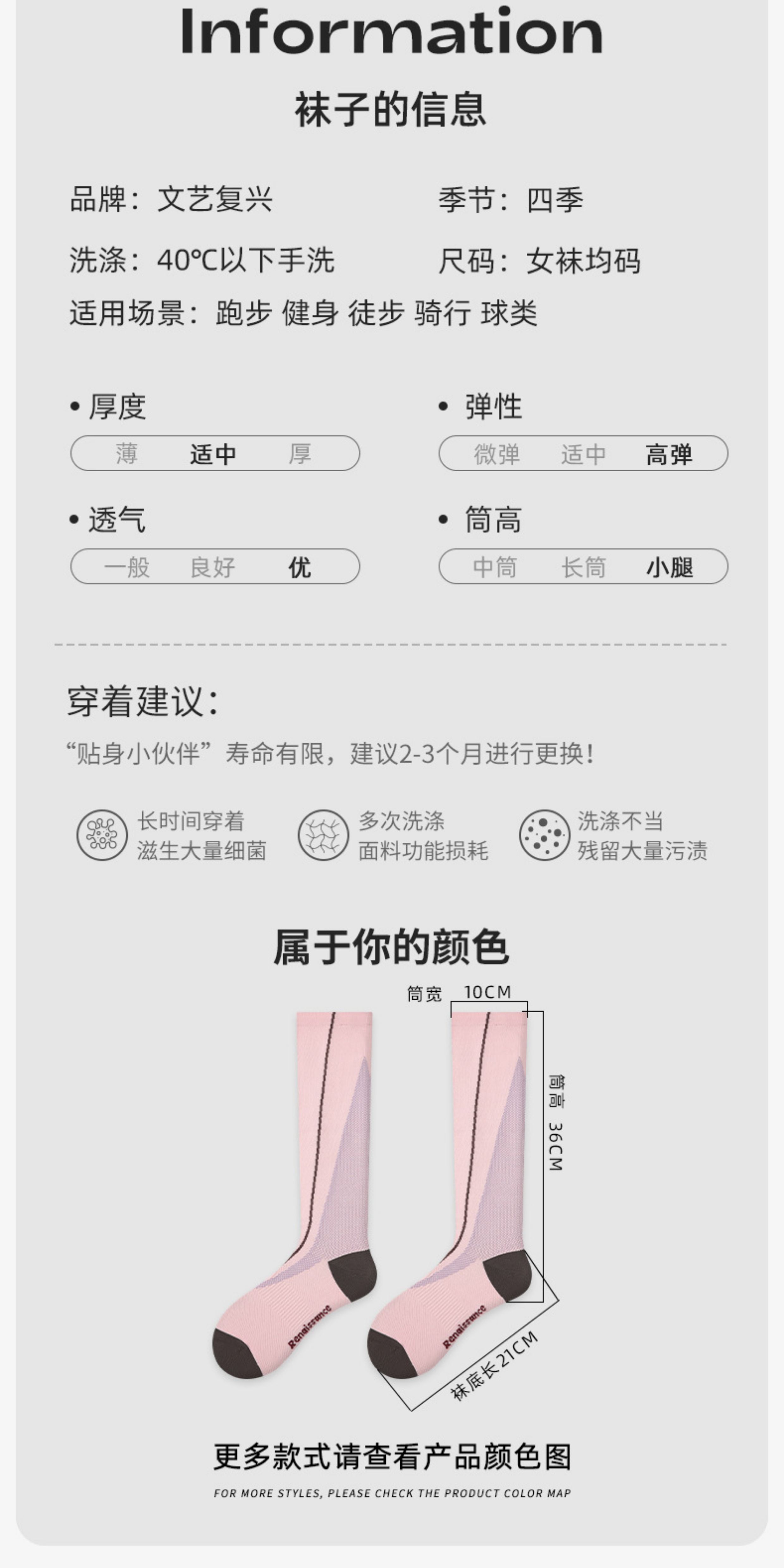 Renaissance壓力運動小腿襪子女春夏跑步透氣吸汗戶外健身徒步襪