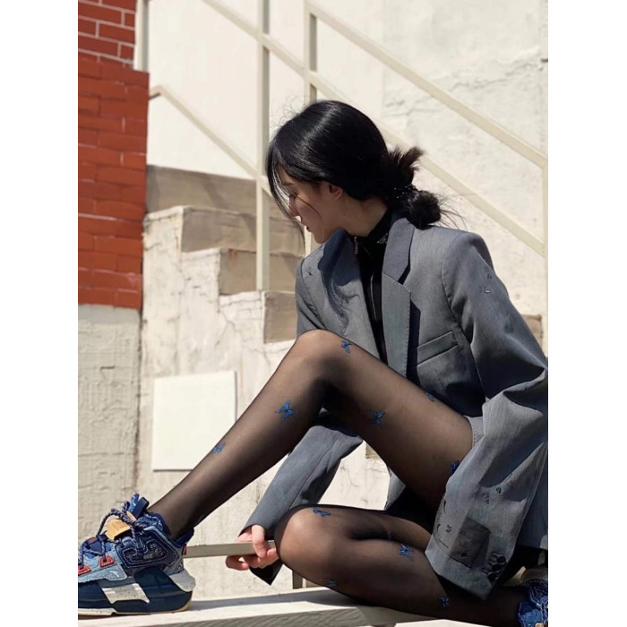 BON 少女藍蝴蝶絲襪偏偏起舞防勾絲菠蘿襪任意剪印花超薄連褲襪