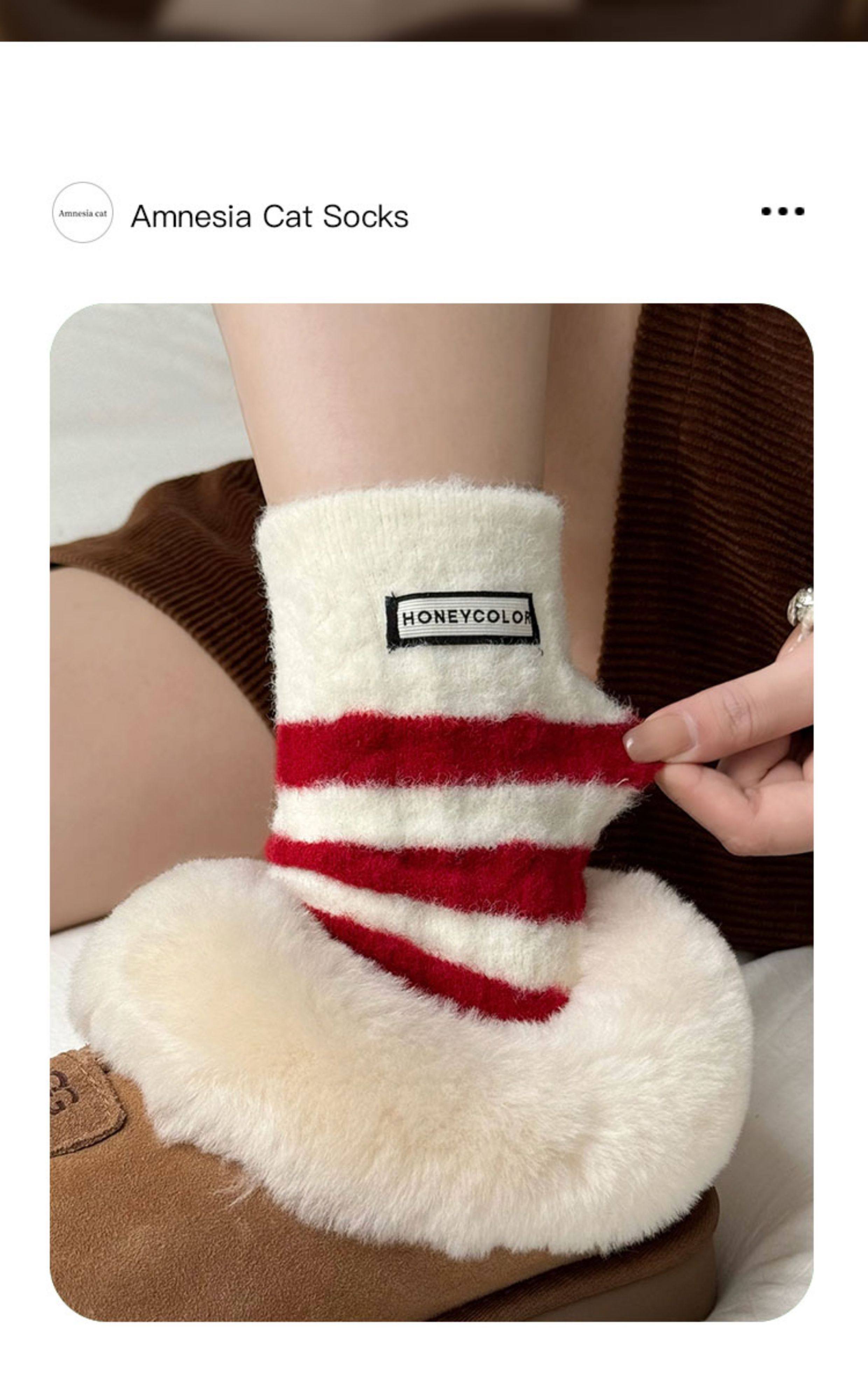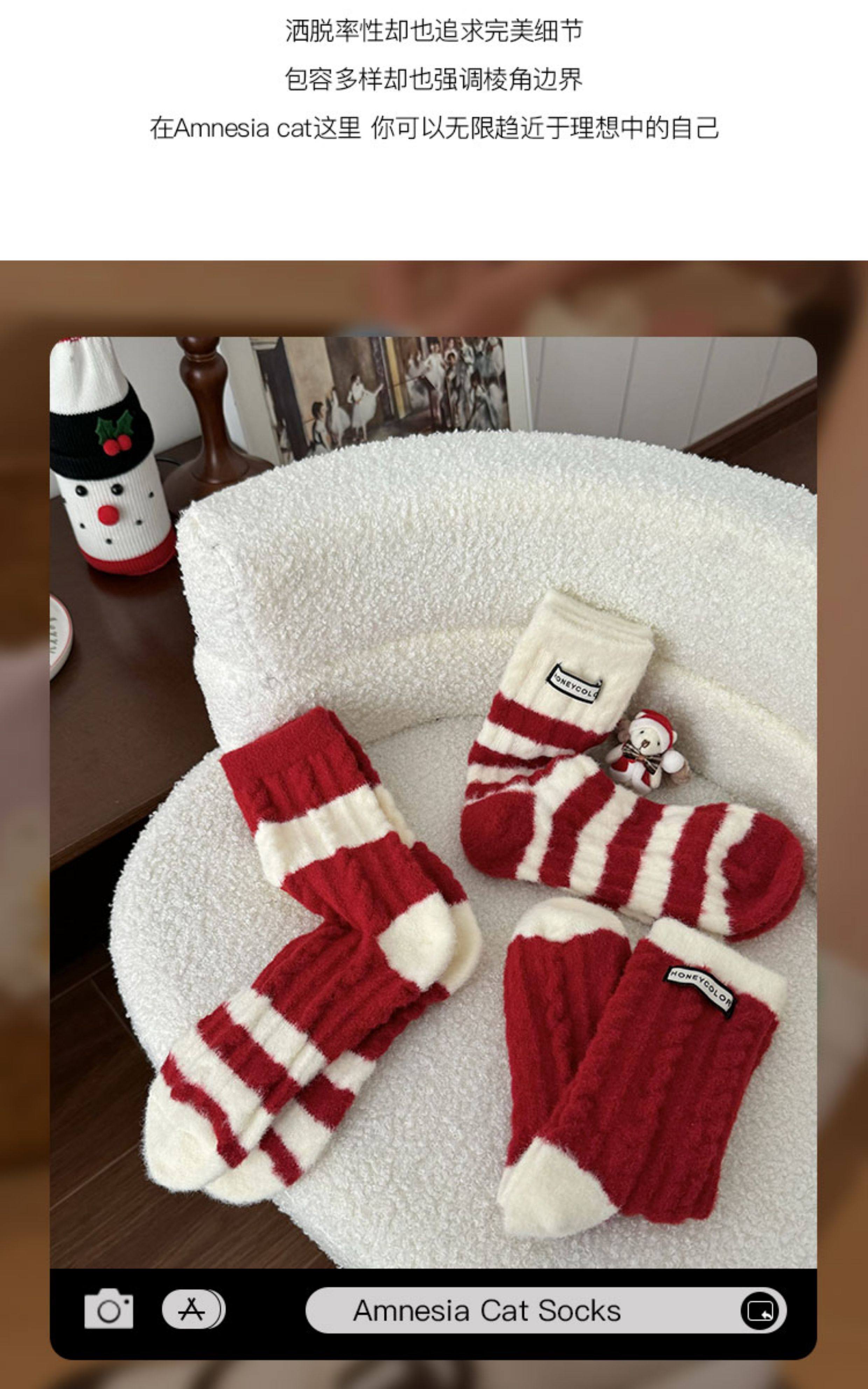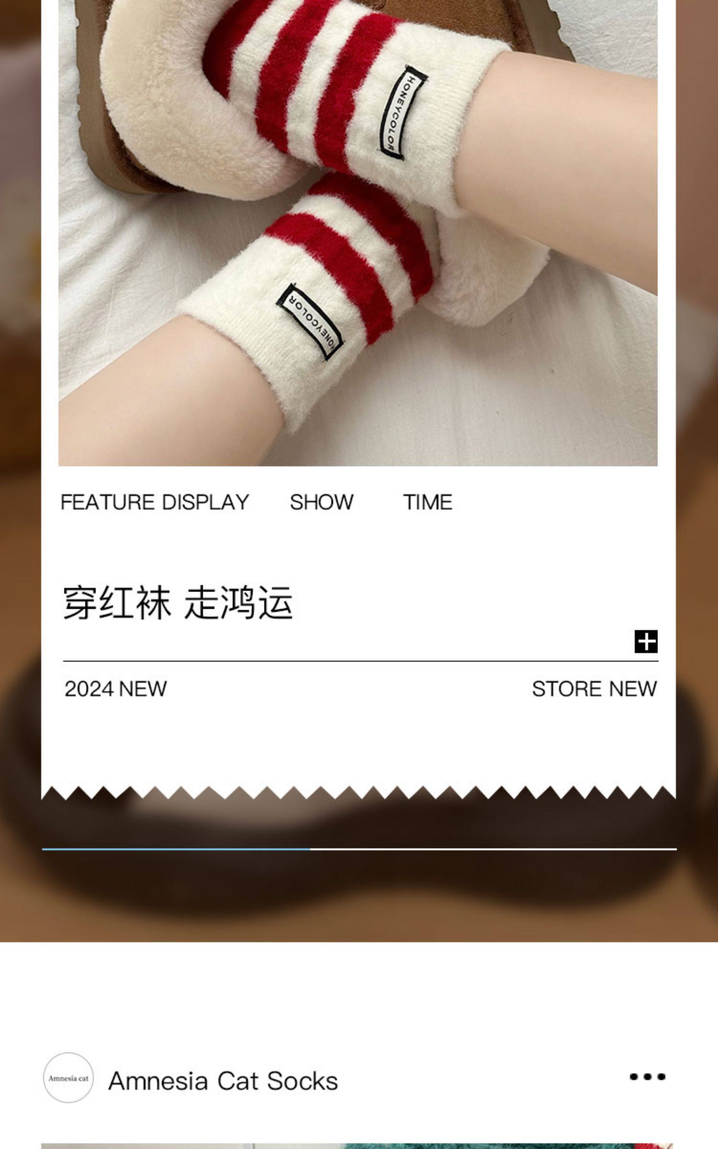 本命年紅色襪子女款秋冬季毛絨棉襪新年保暖加厚珊瑚絨冬天睡眠襪