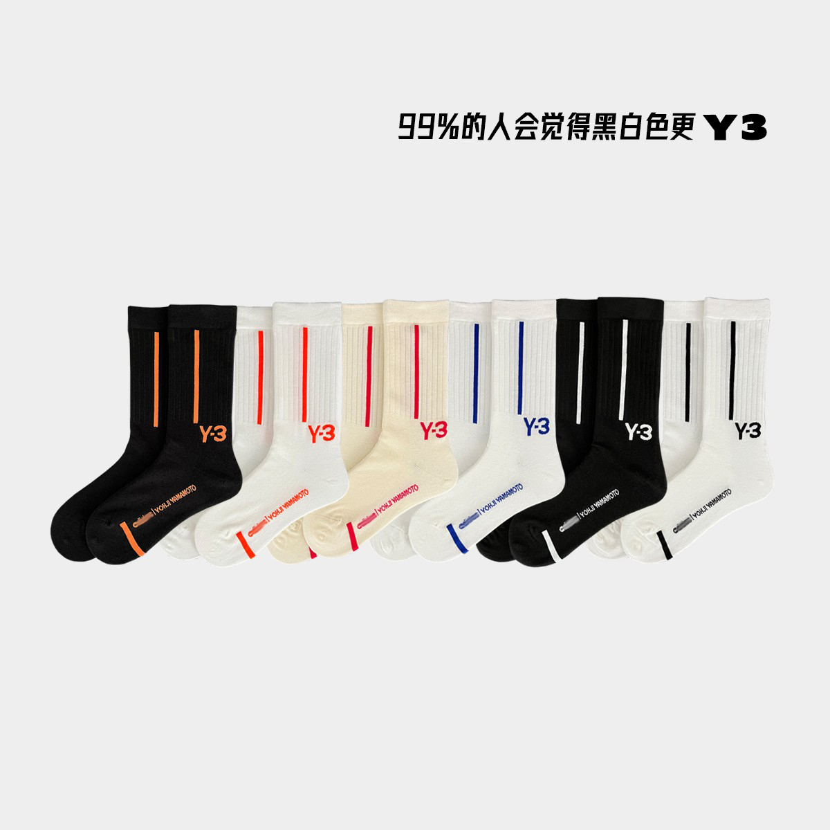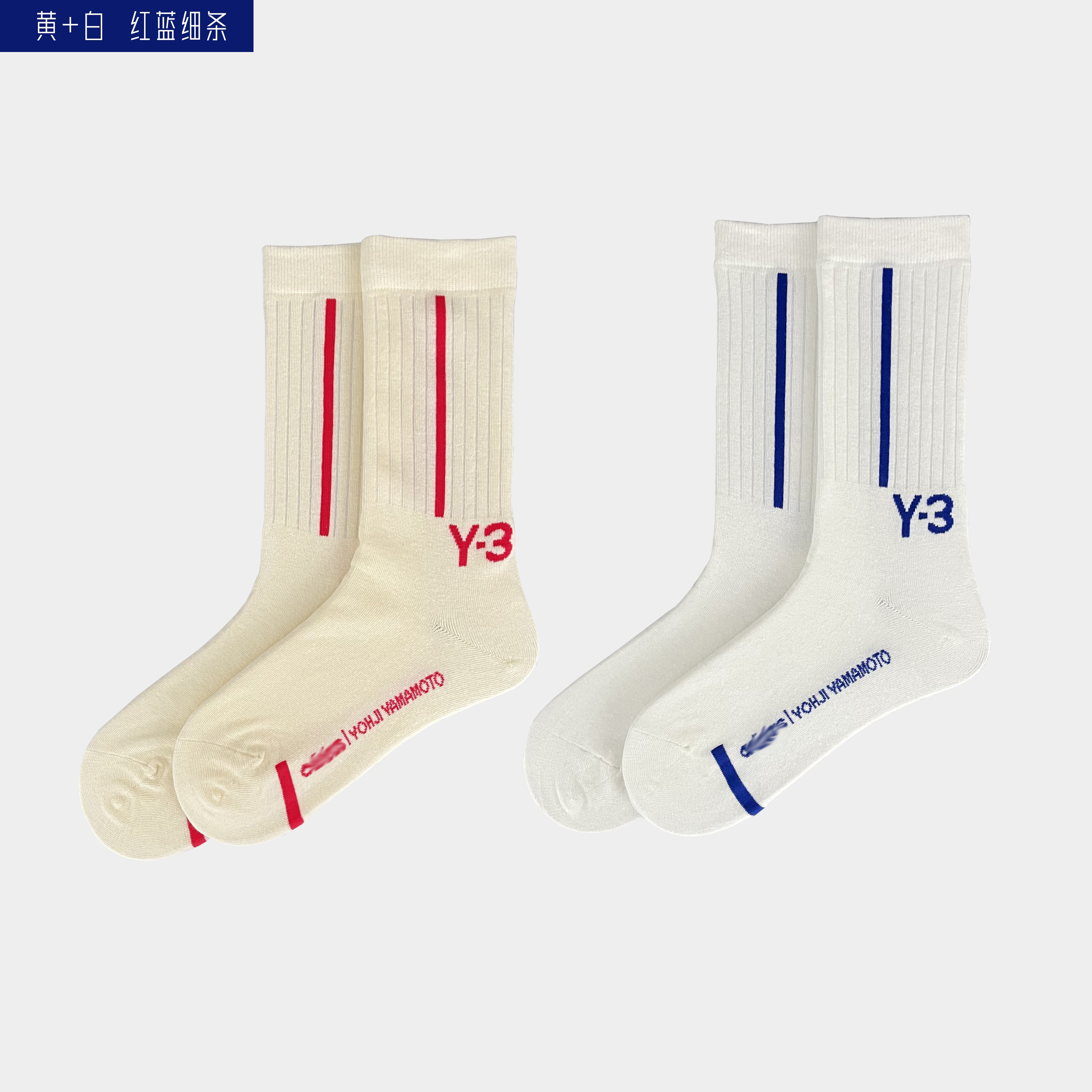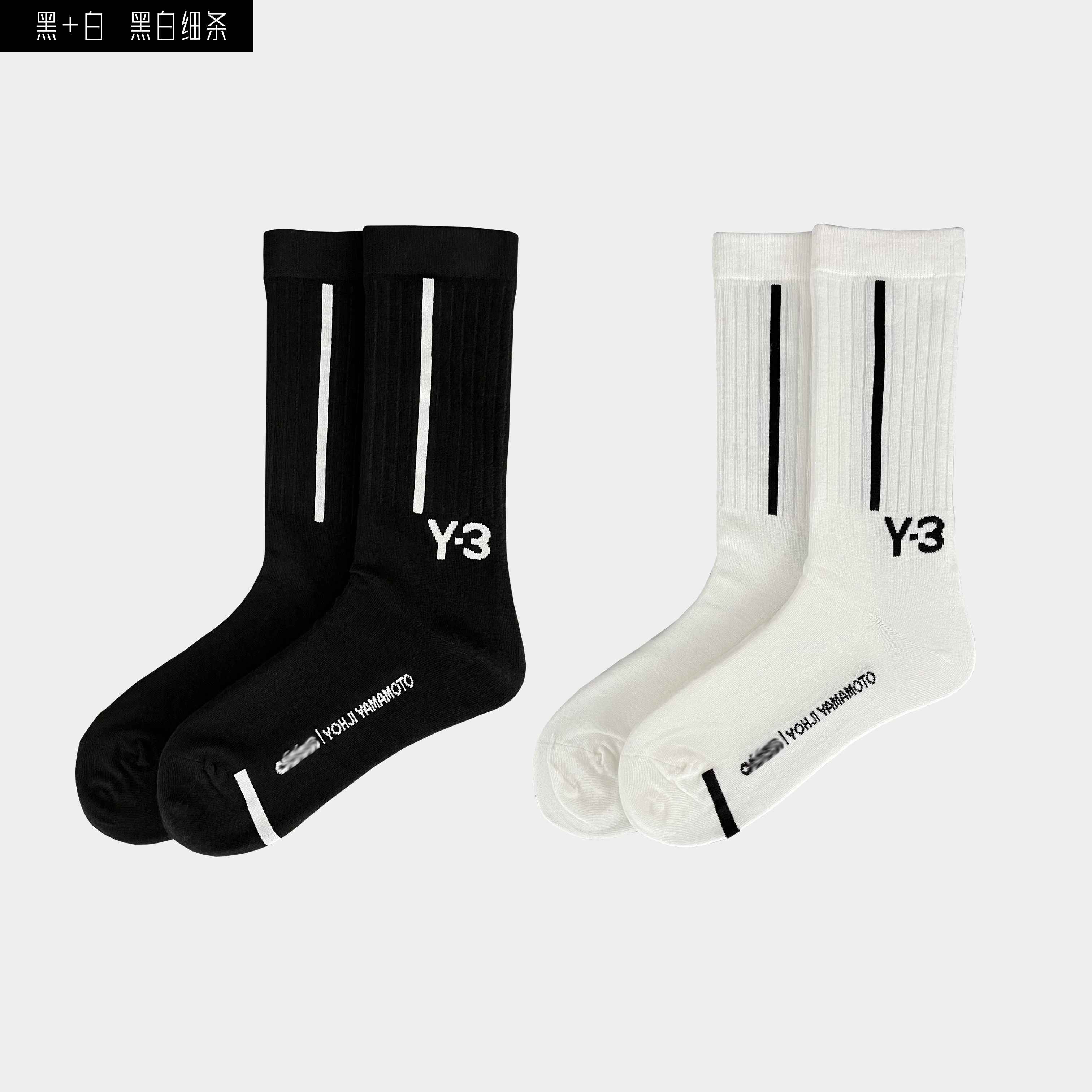 2雙裝日系潮牌Y-3聯名設計條紋襪子精梳棉運動襪耀司yohji yamamo