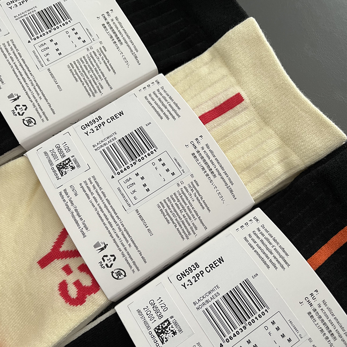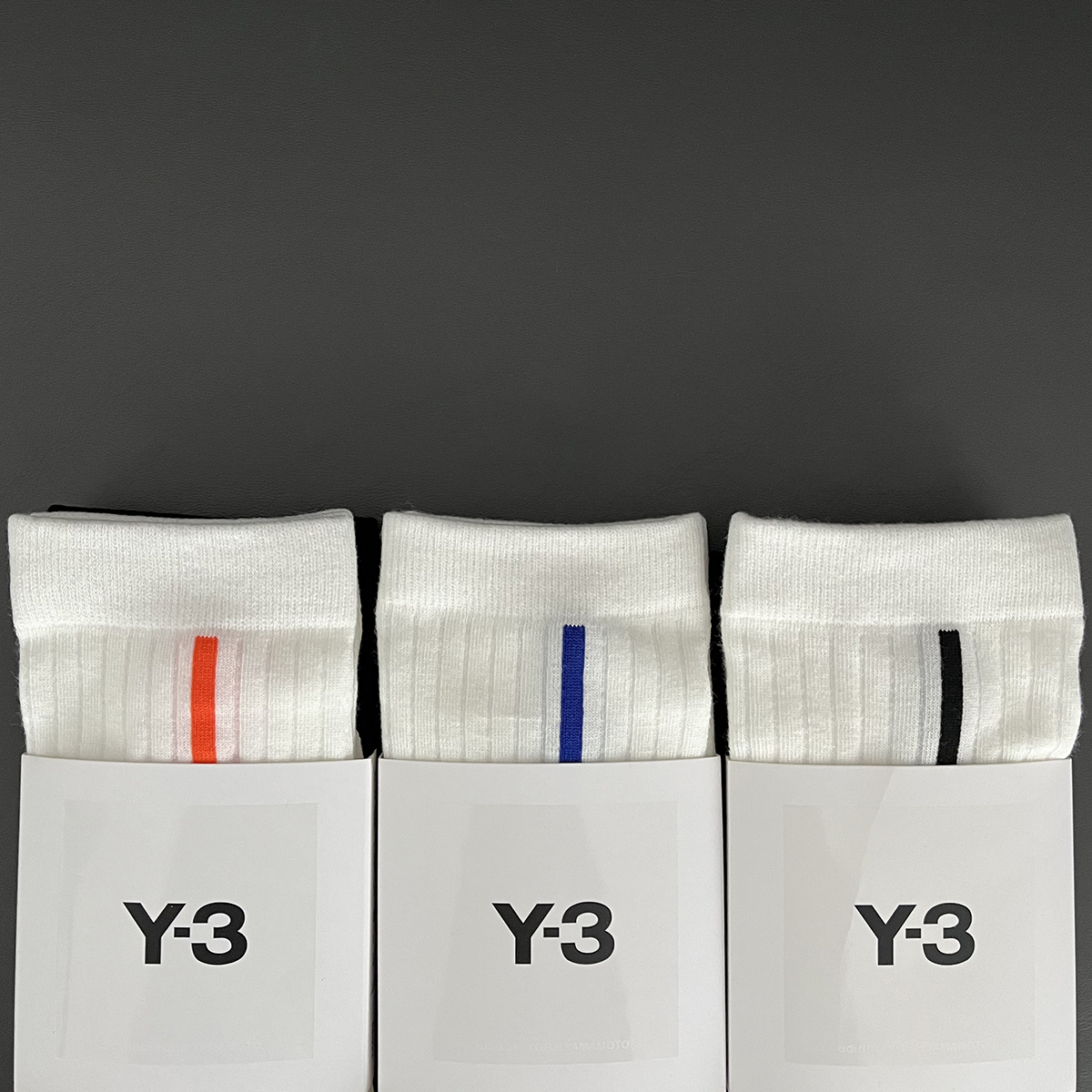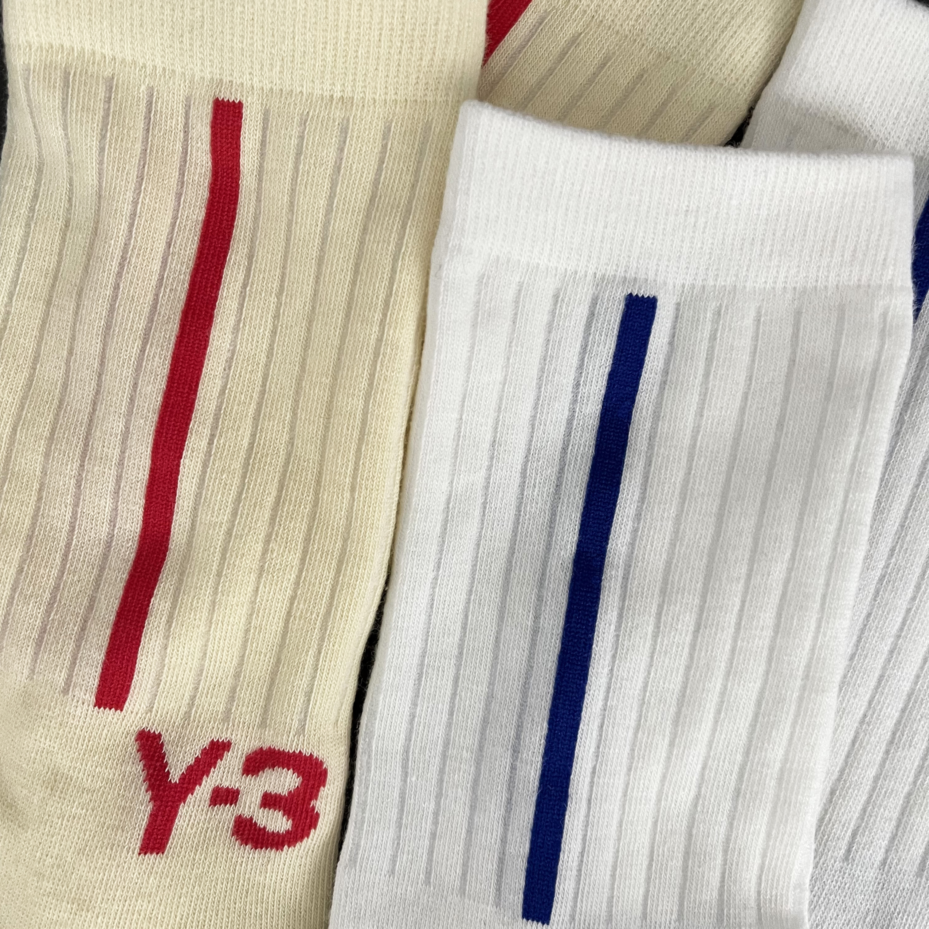 2雙裝日系潮牌Y-3聯名設計條紋襪子精梳棉運動襪耀司yohji yamamo