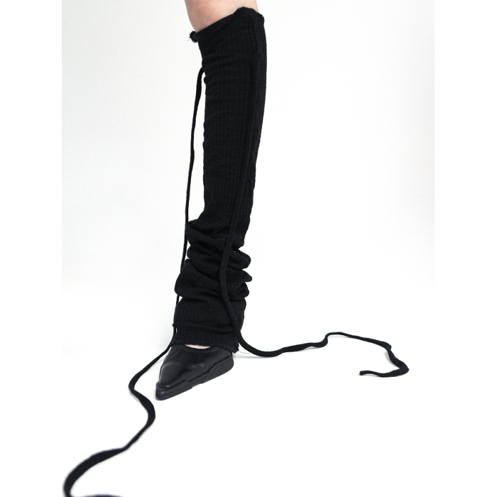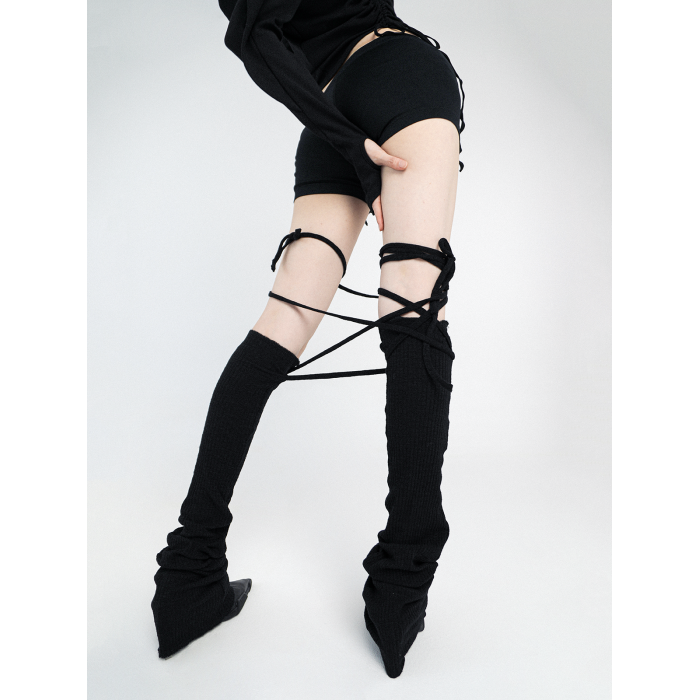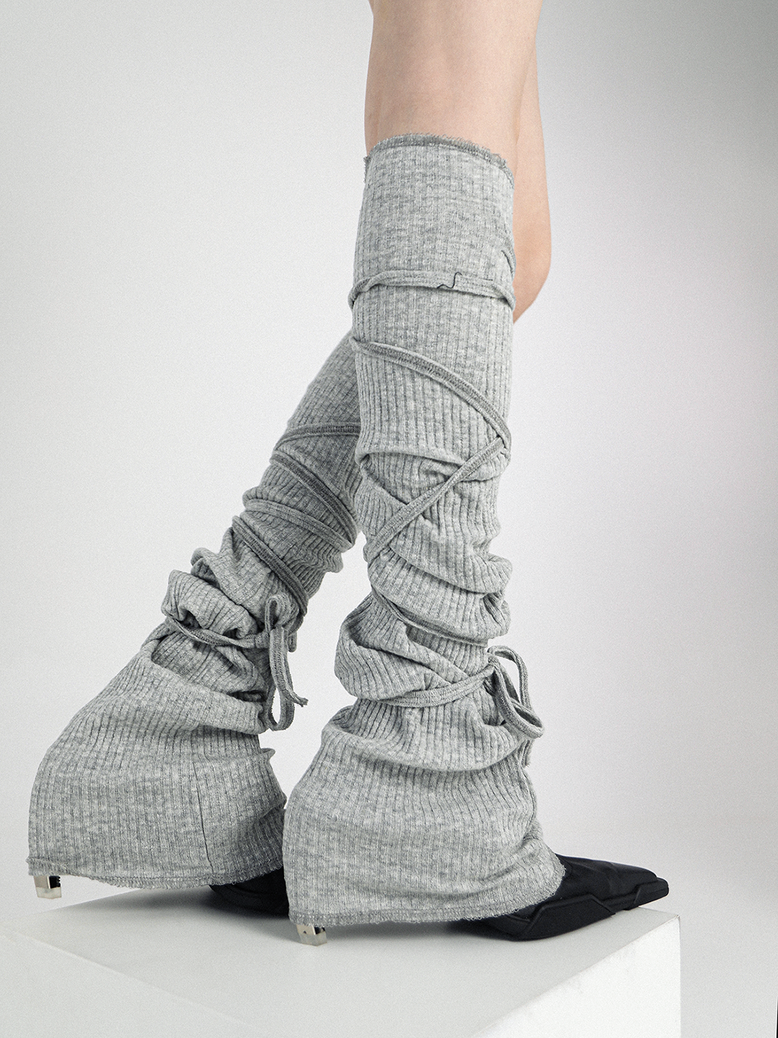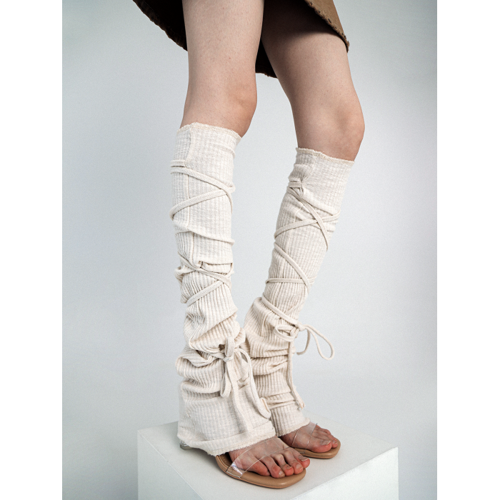 SS2L23秋冬時尚y2k千禧辣妹純色針織微喇綁帶襪套堆堆襪女ins潮