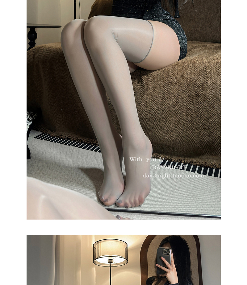 DAY2NIGHT 「緋」油亮油光絲襪半截過膝黑絲情調長筒襪白色大腿襪