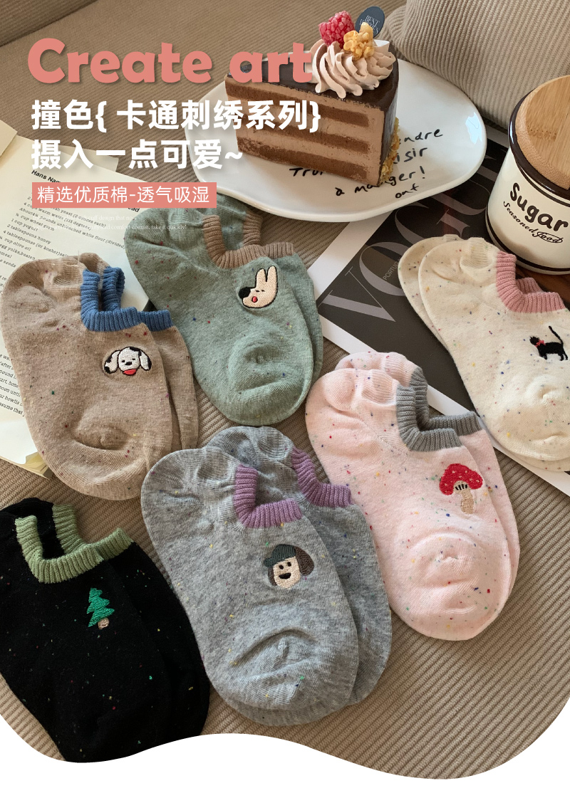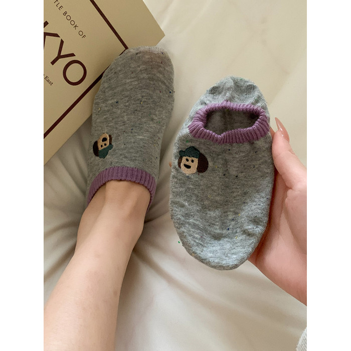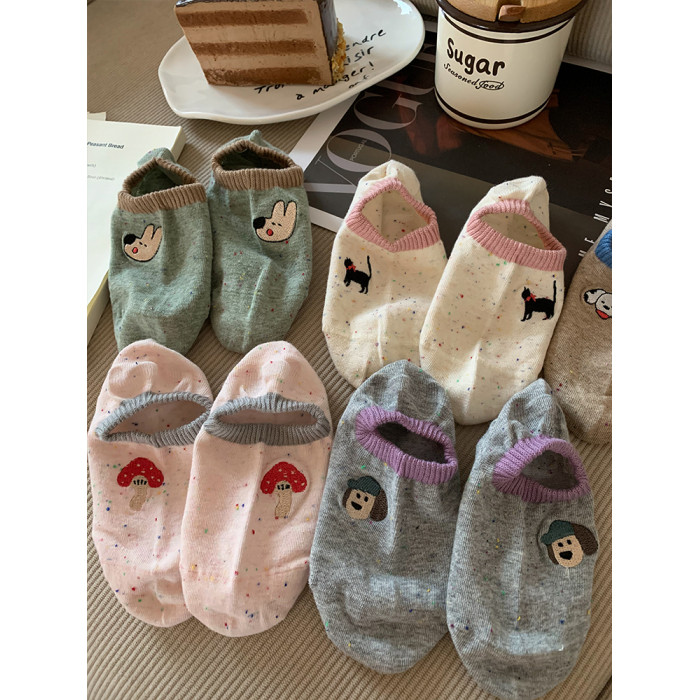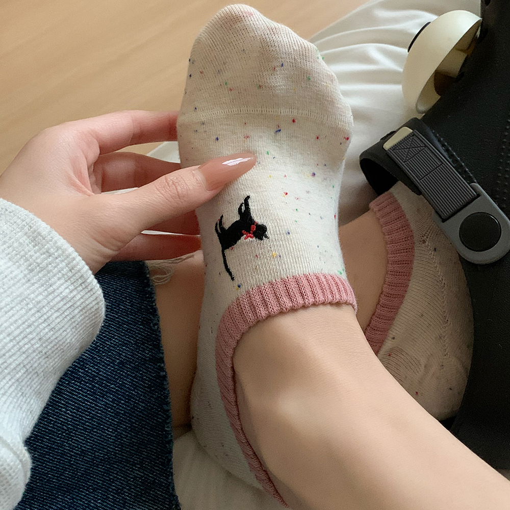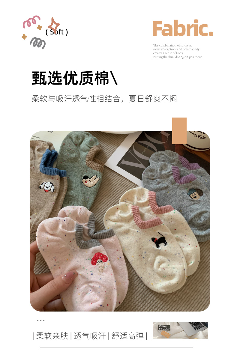 卡通點子紗船襪女夏季薄款棉襪矽膠防滑不掉跟可愛淺口夏天短筒襪
