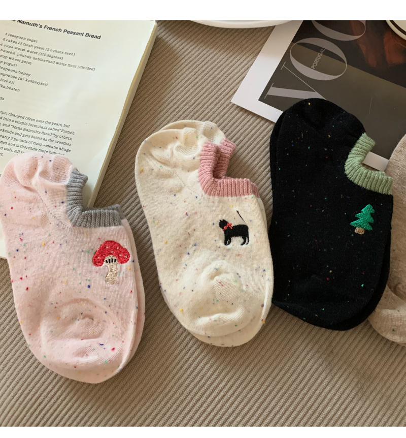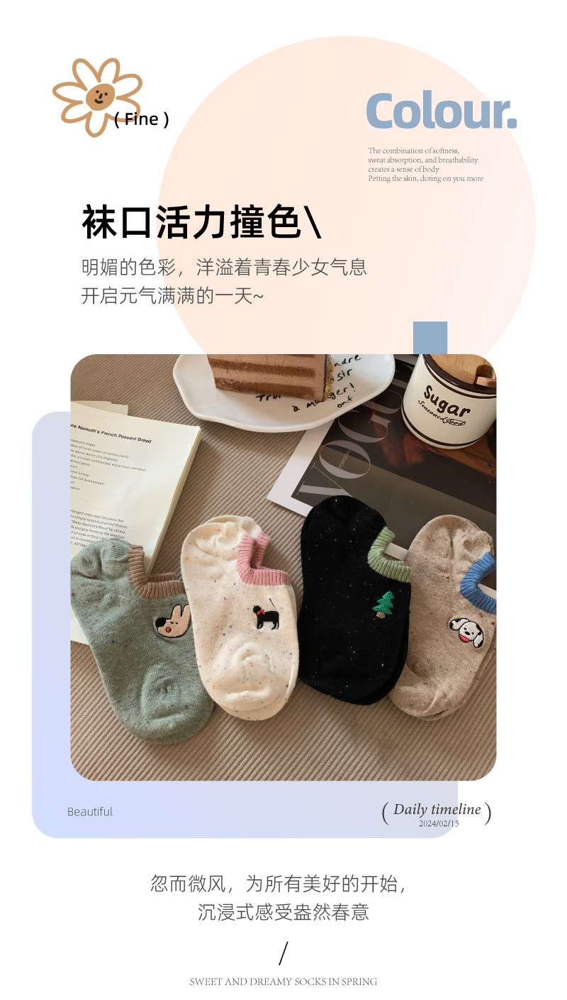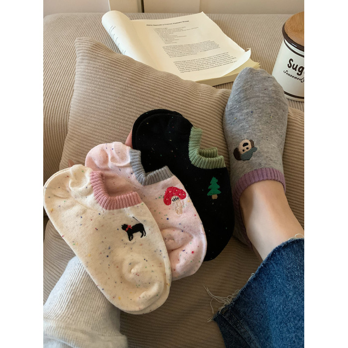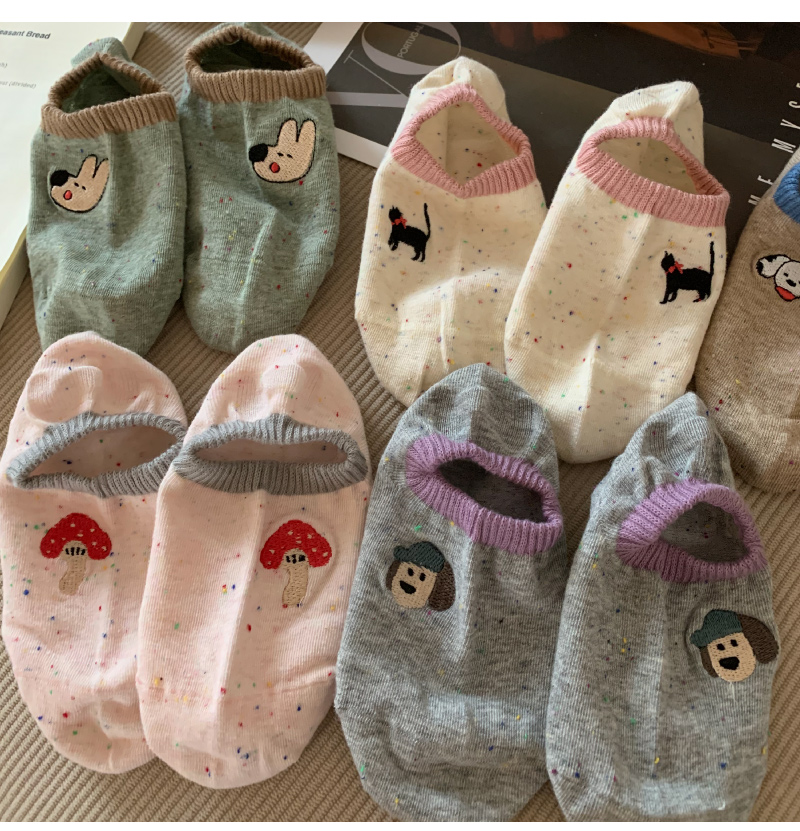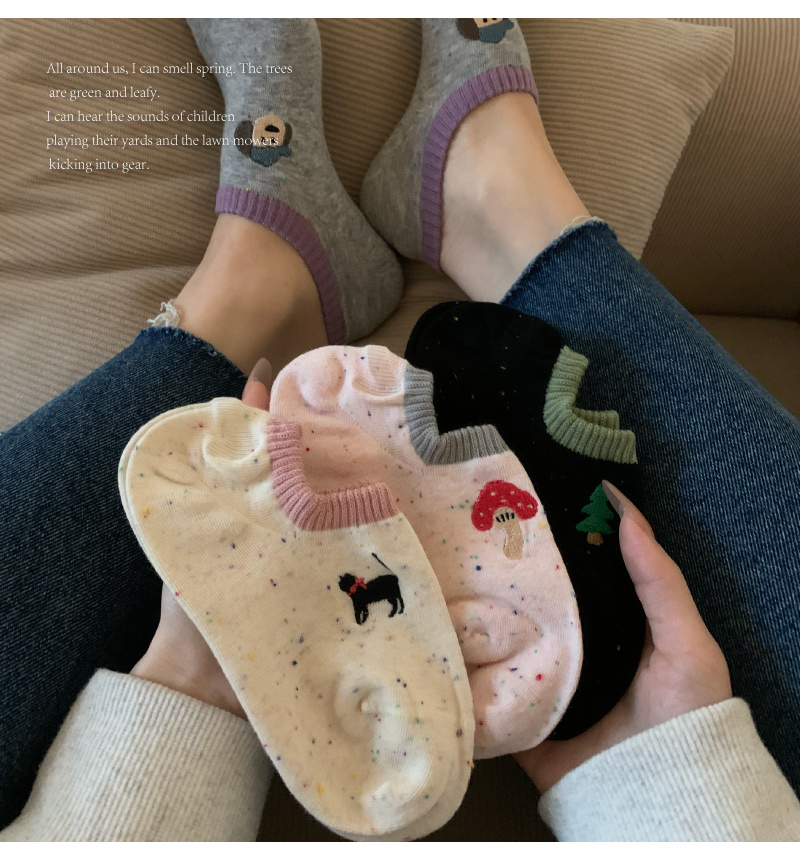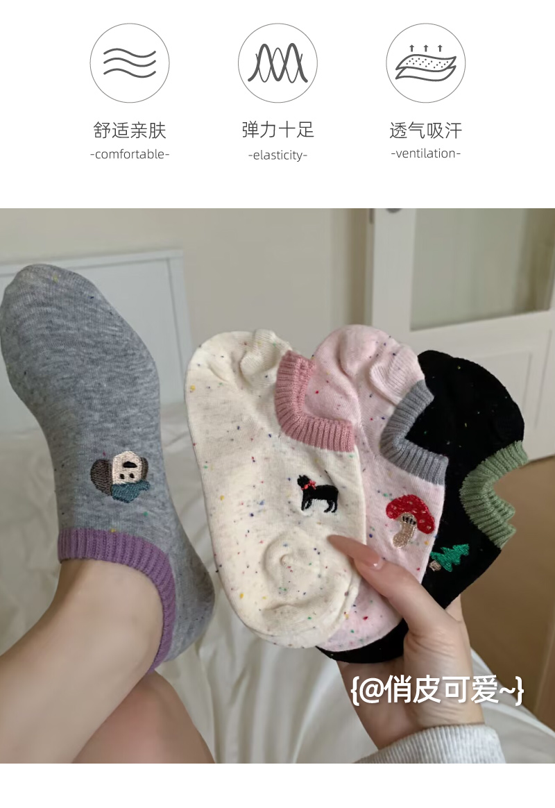 卡通點子紗船襪女夏季薄款棉襪矽膠防滑不掉跟可愛淺口夏天短筒襪